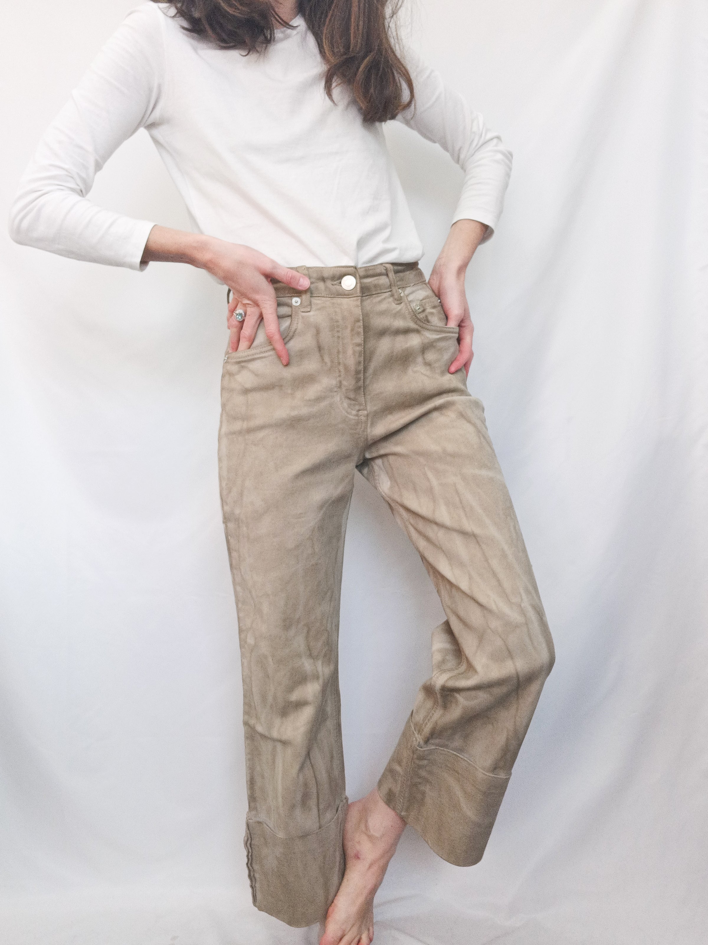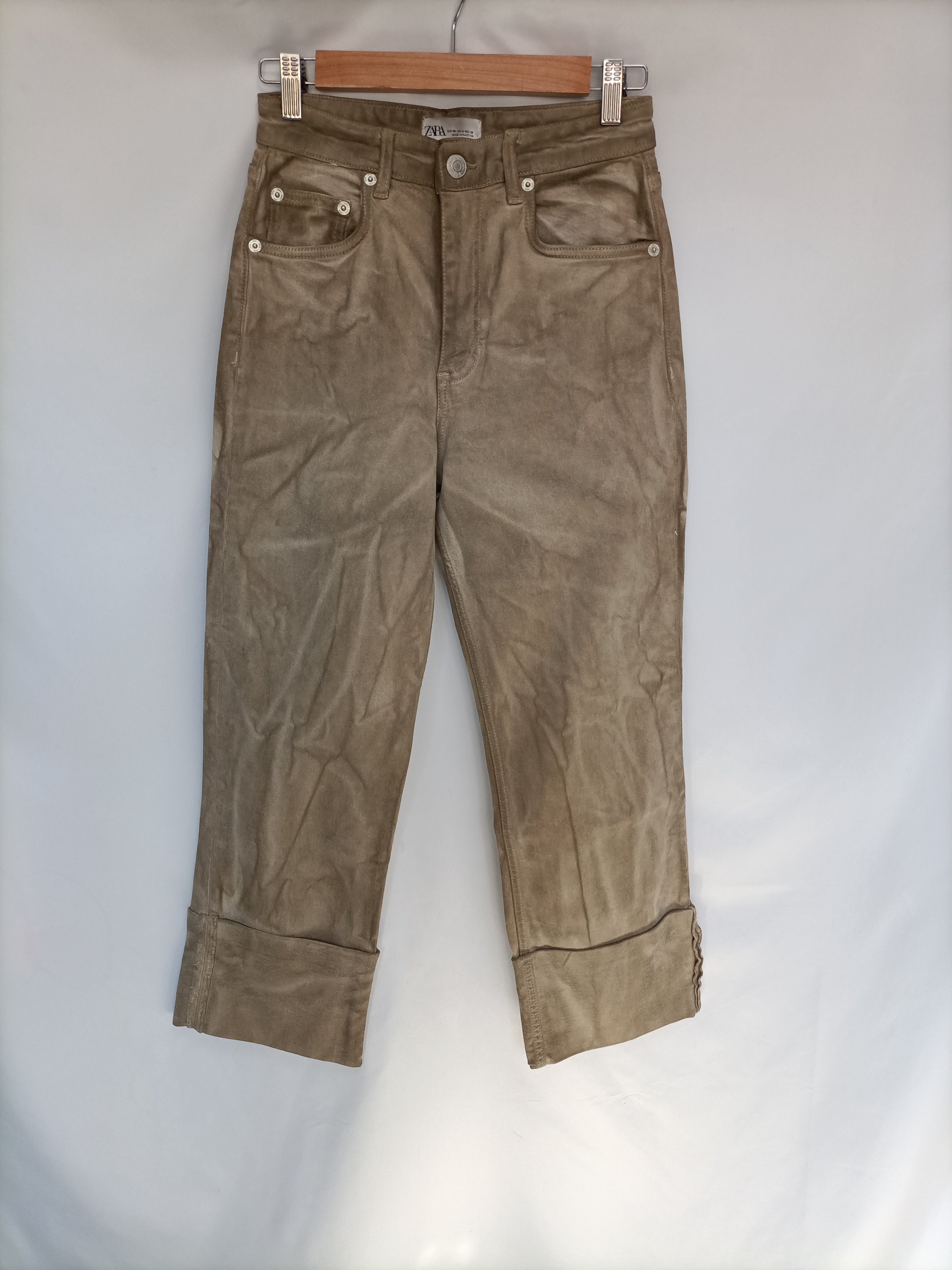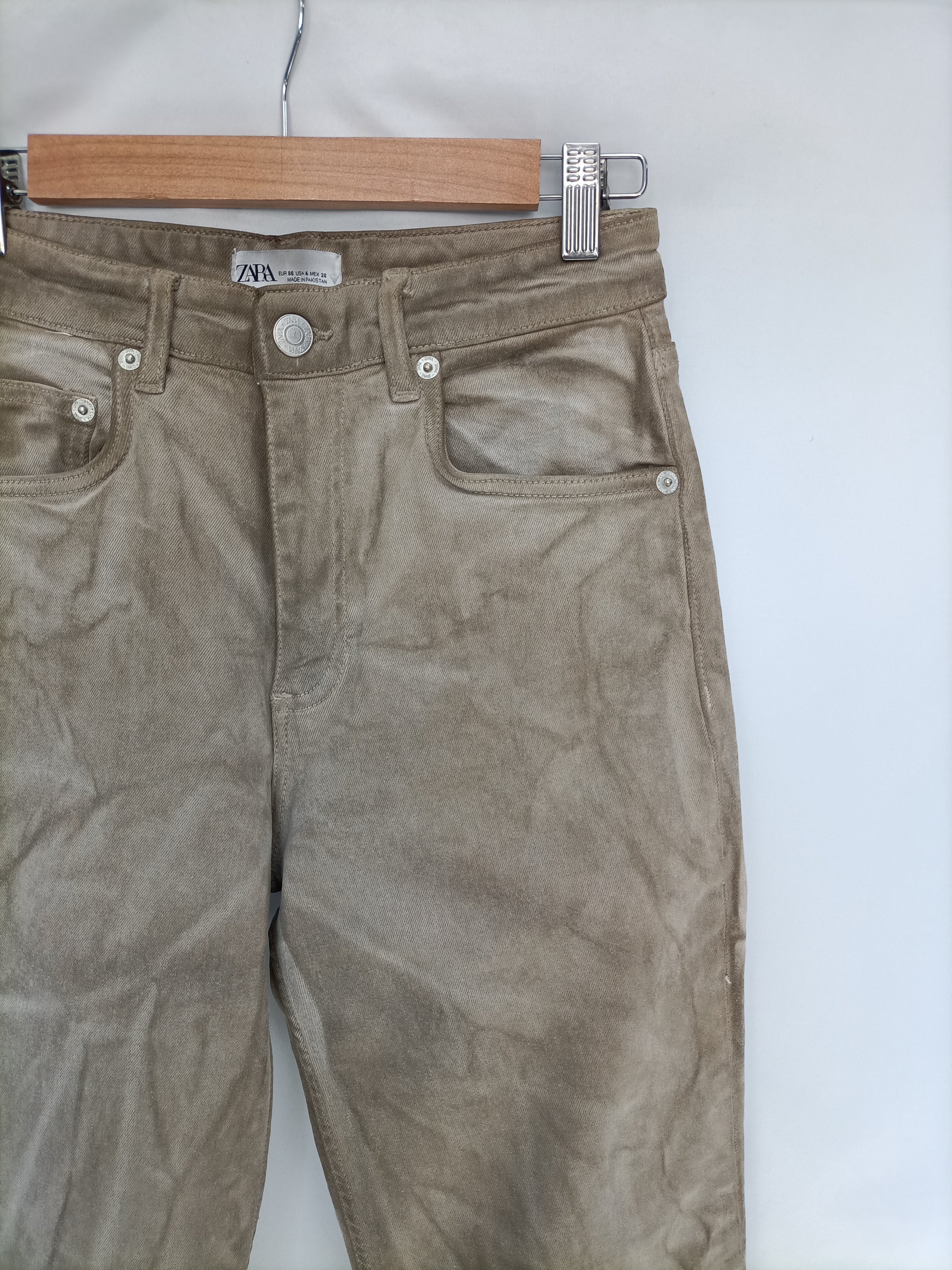 Pantalón efecto lavado en tono beige. No elastico. Cintura 36 cm largo 113 cm