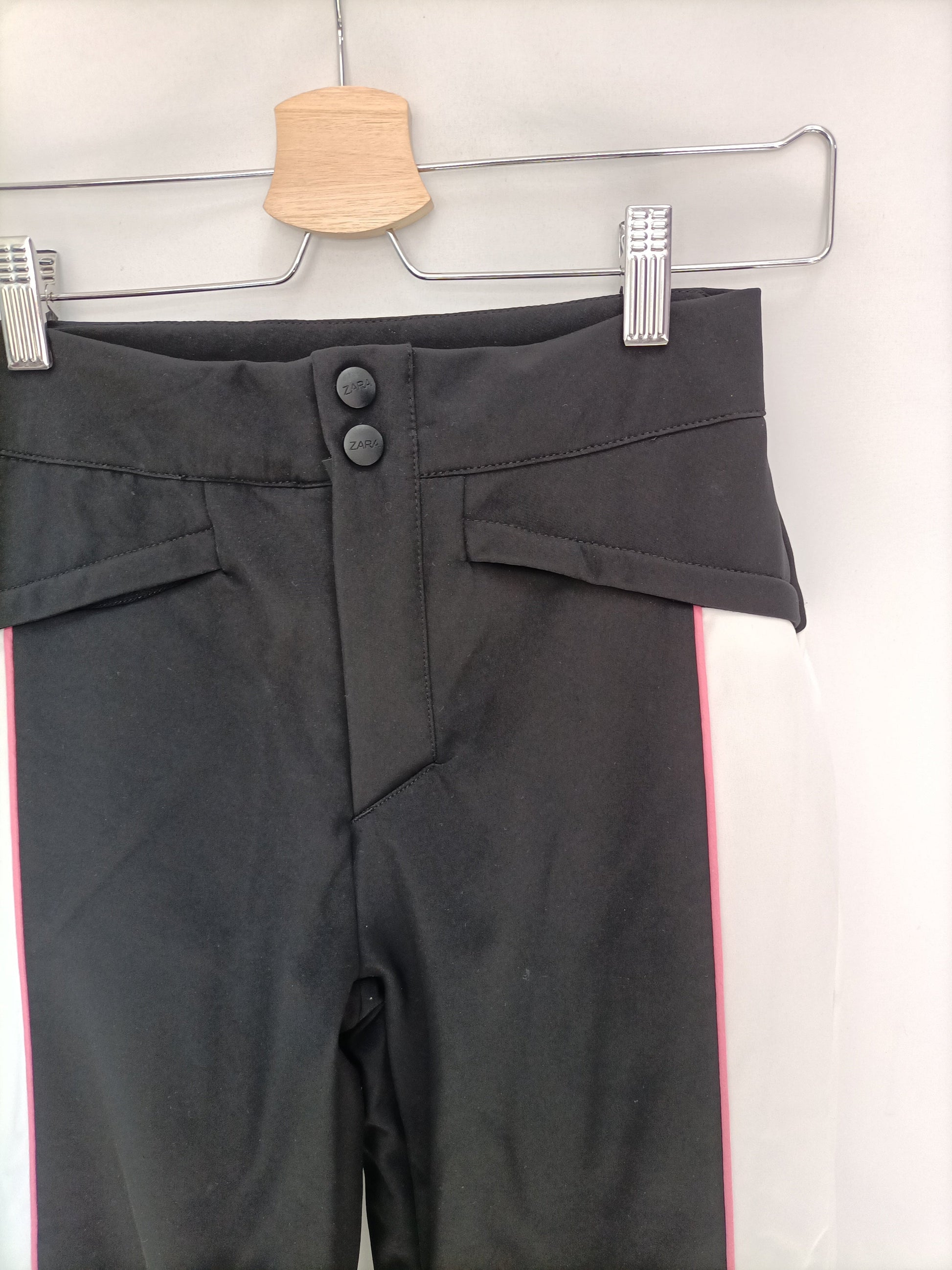 Pantalón negro con rayas laterales blancas. forro polar interior estilo de esquiar. Cremallera en los tobillos. No elástico. Cintura 34 cm largo 91 cm
