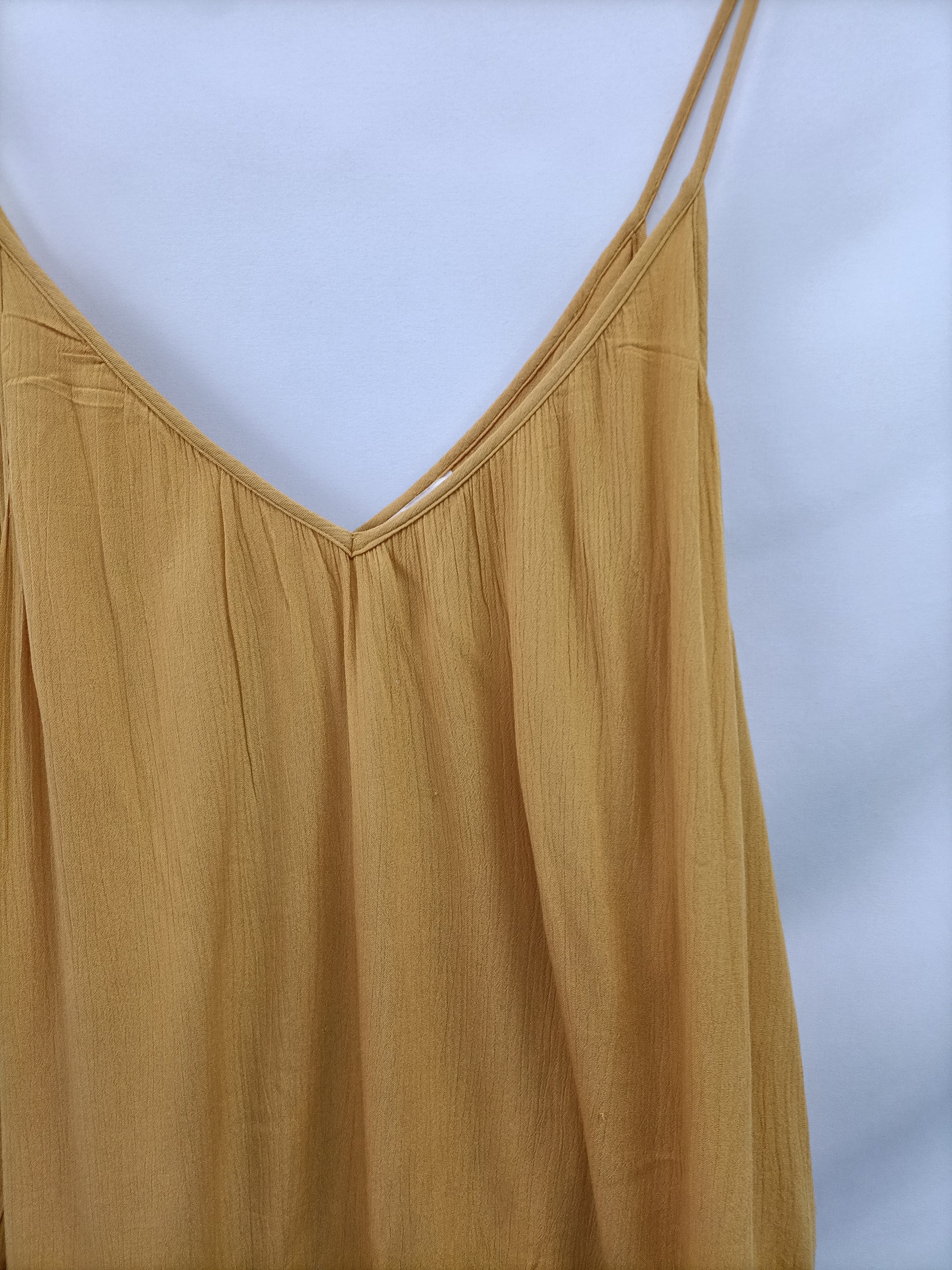 Mono mostaza con sobrecapa y detalles de encaje. De sisa a sisa 50 cm largo 89 cm