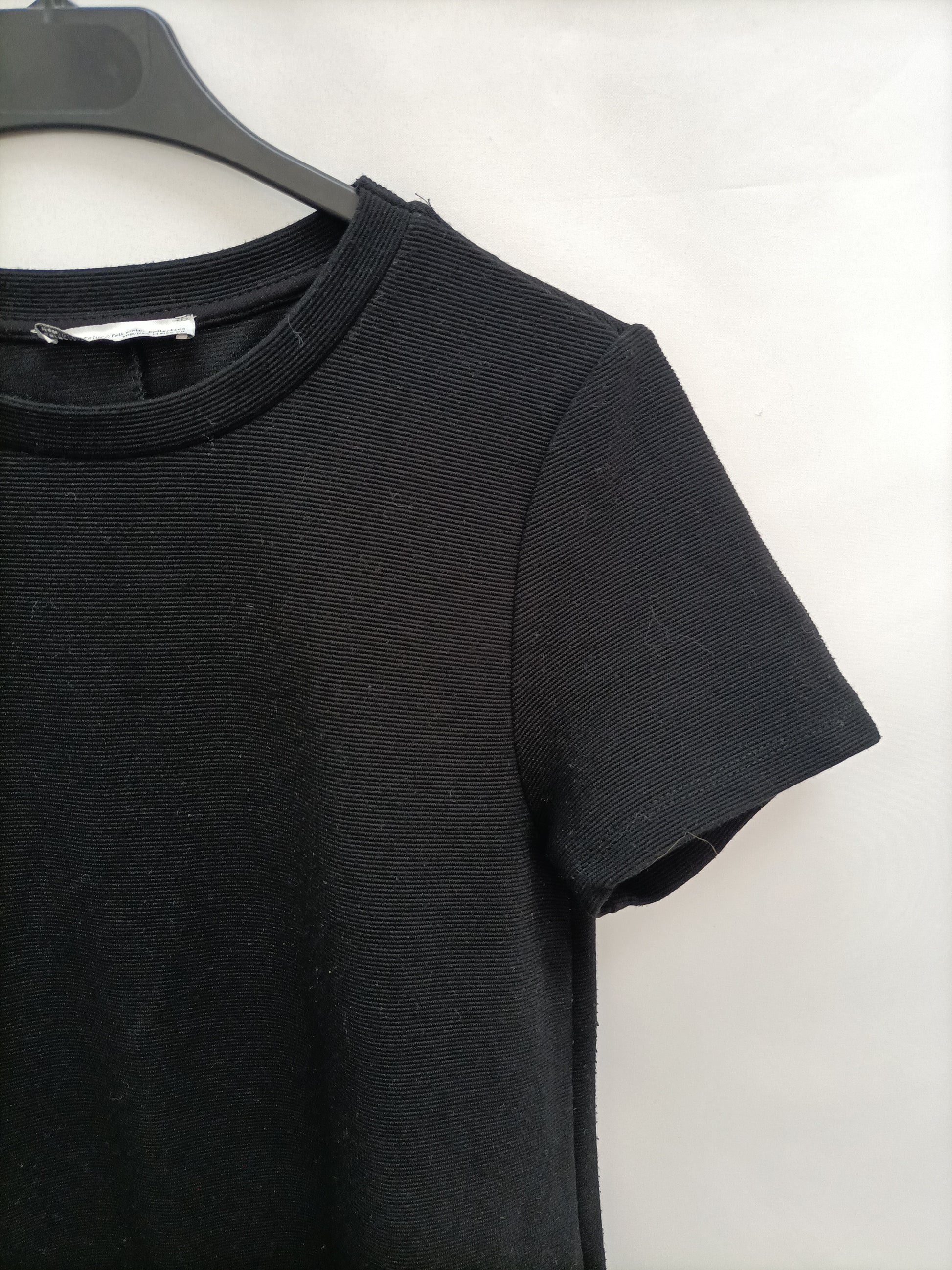 ZARA. Vestido negro canalé T.m