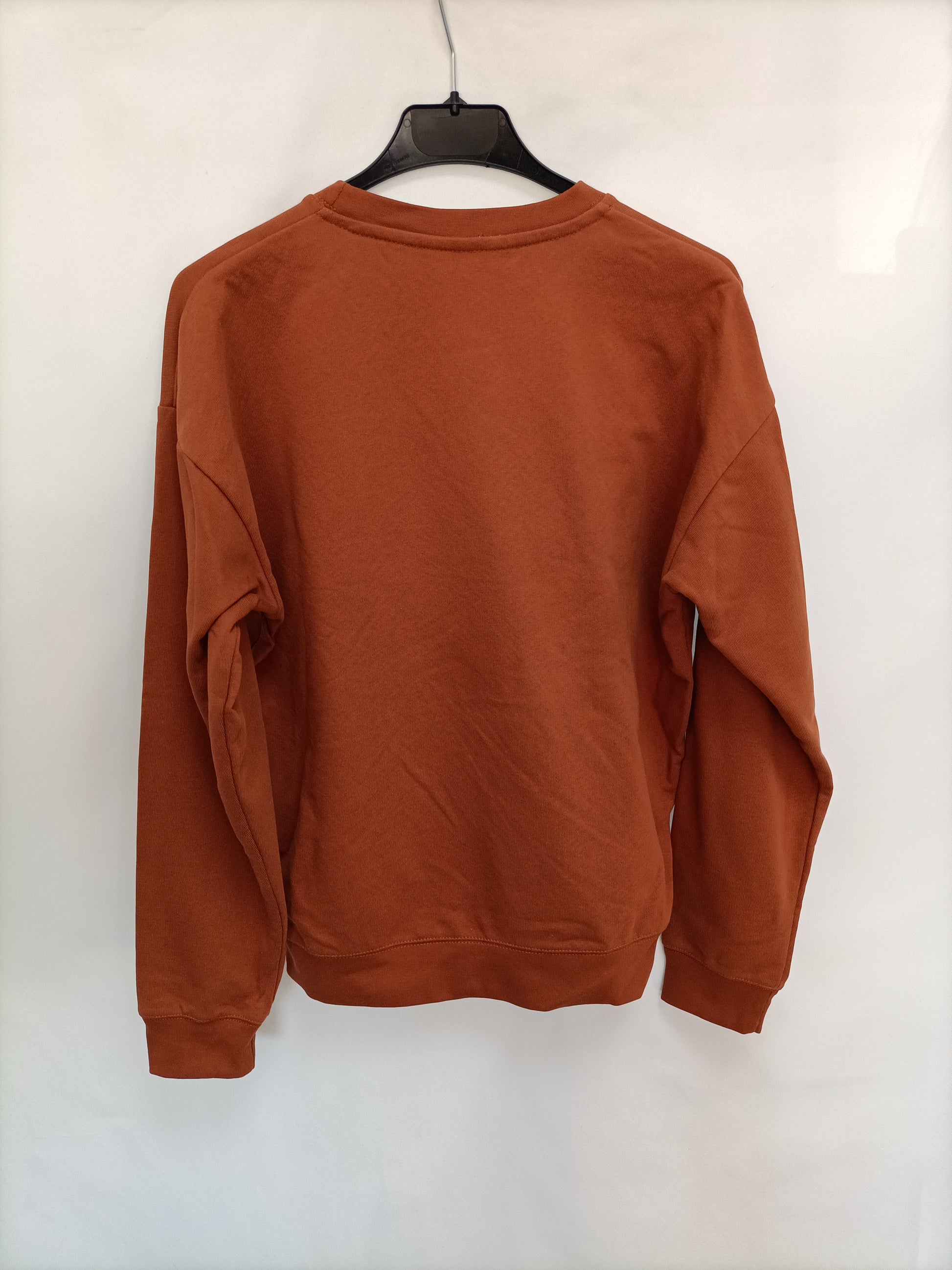 Sudadera color teja fluida. Detalle de letras. Elástica. Largo 59 cm