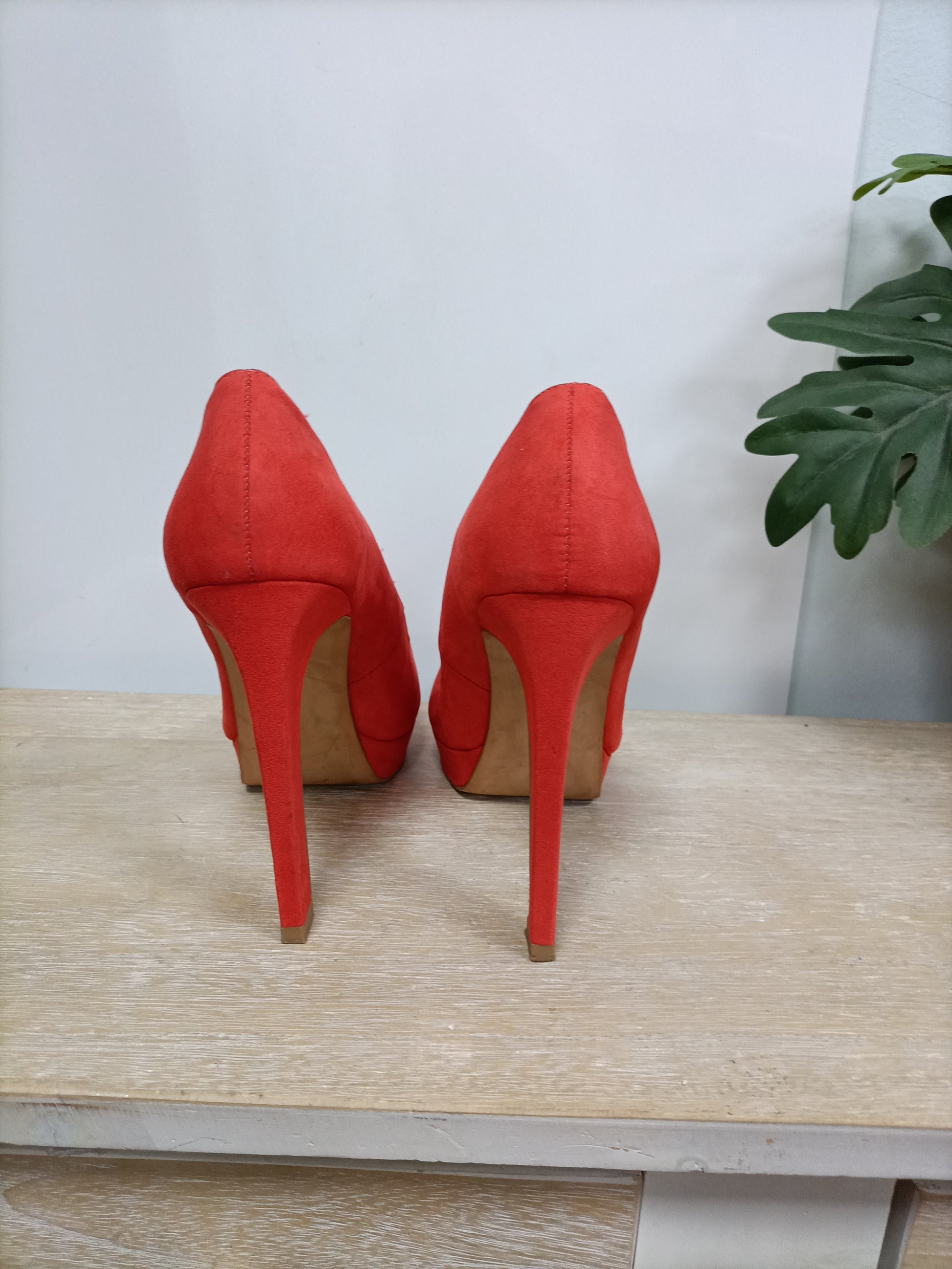 Zapatos de antelina coral estilo stilettos. Tacón 12,5 cm Plataforma 2 cm