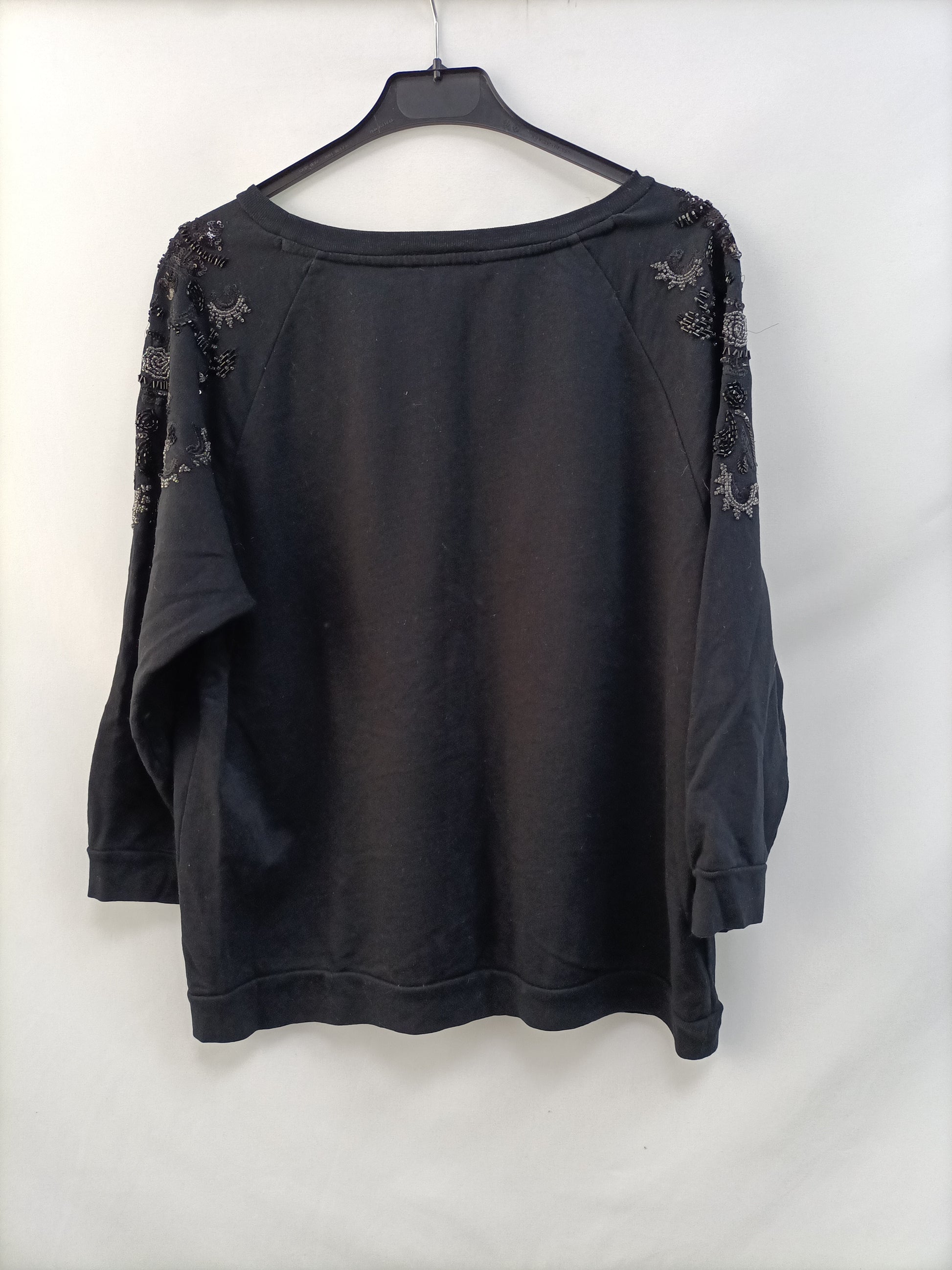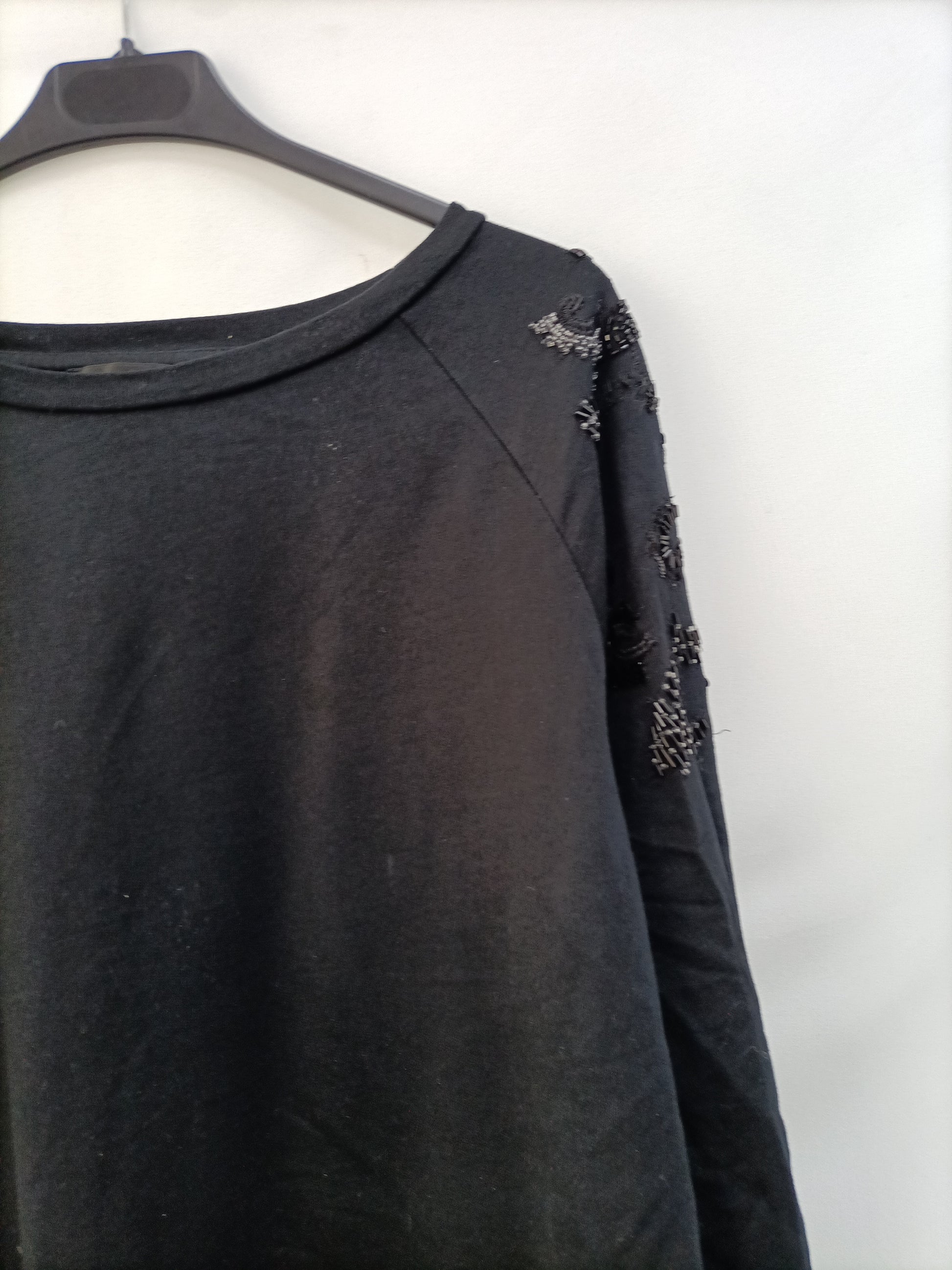 Jersey estilo sudadera con detalle de abalorios en las mangas. Largo 58 cm