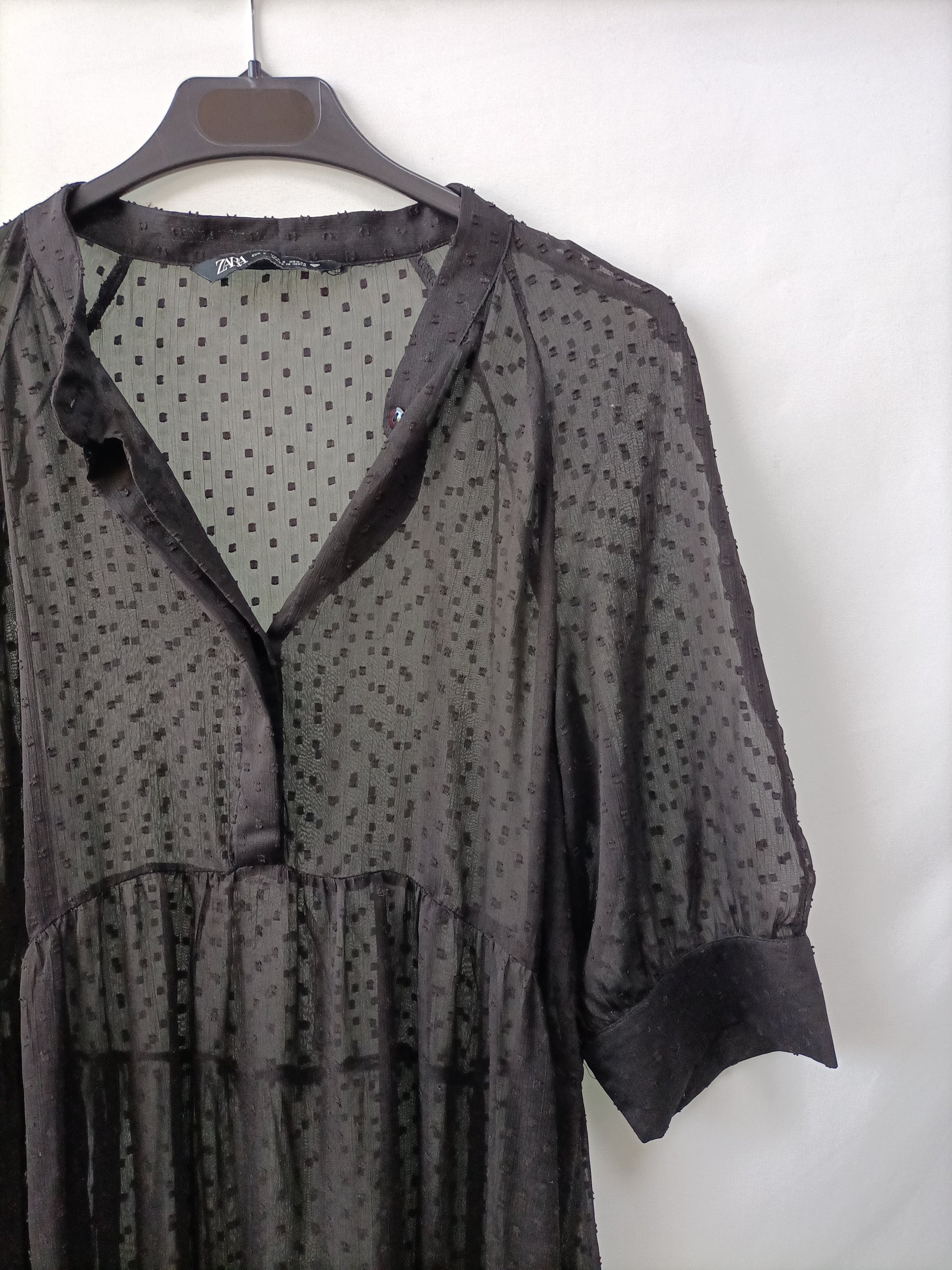 Vestido largo de plumeti semitranparente. De sisa a sisa 48 cm largo 132 cm