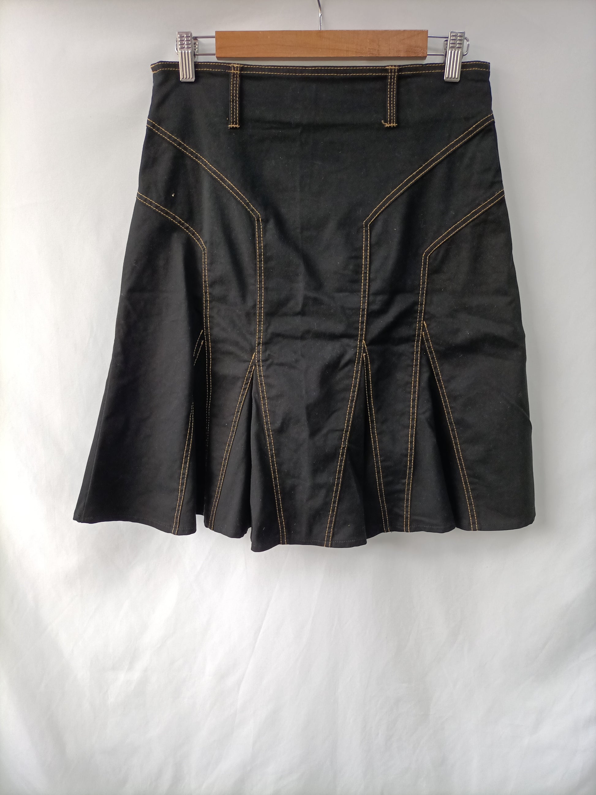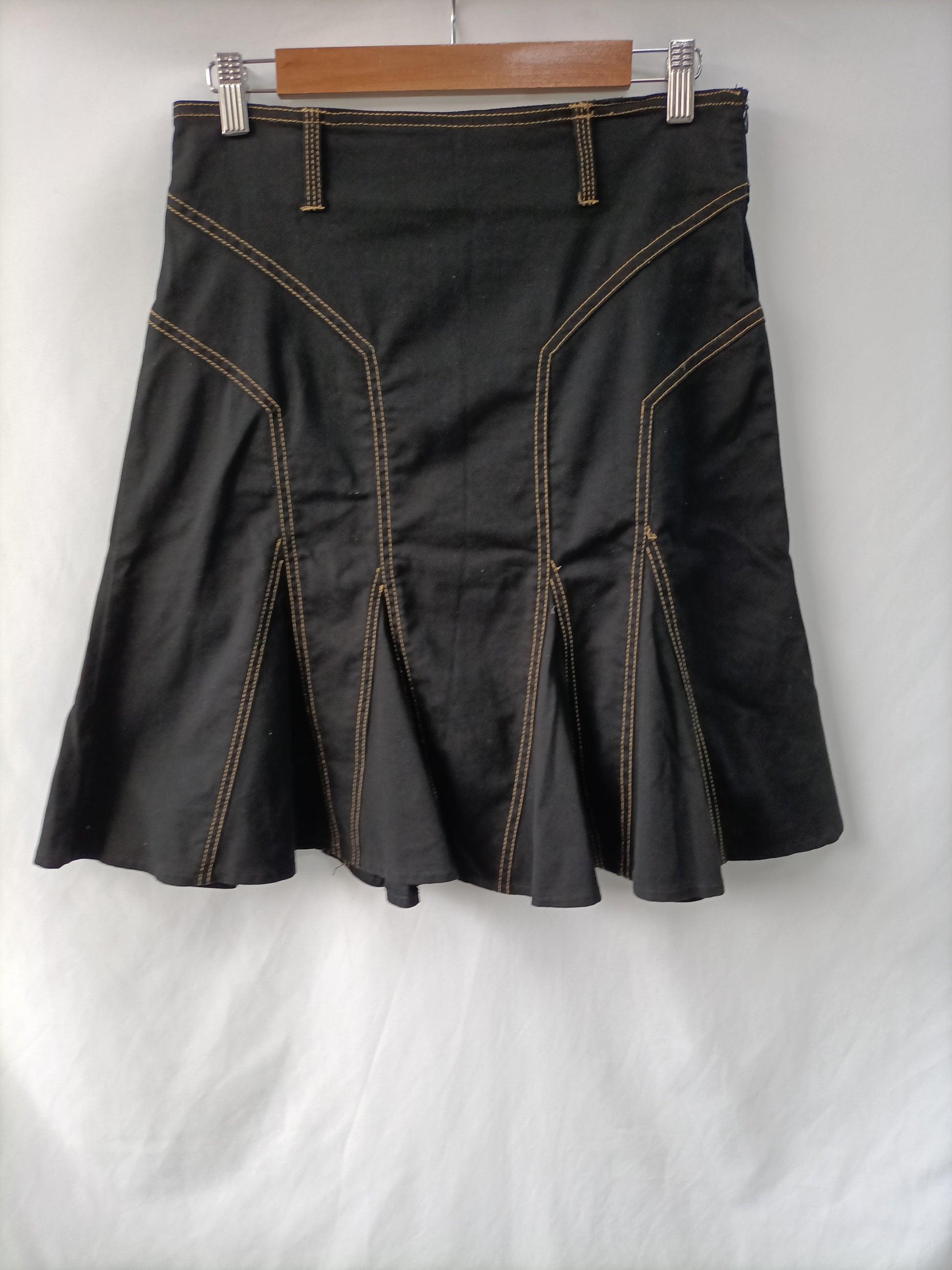 Falda negra de tejido denim con tablas y costuras en camel. No elástica. Cintura 37 cm Largo 54 cm