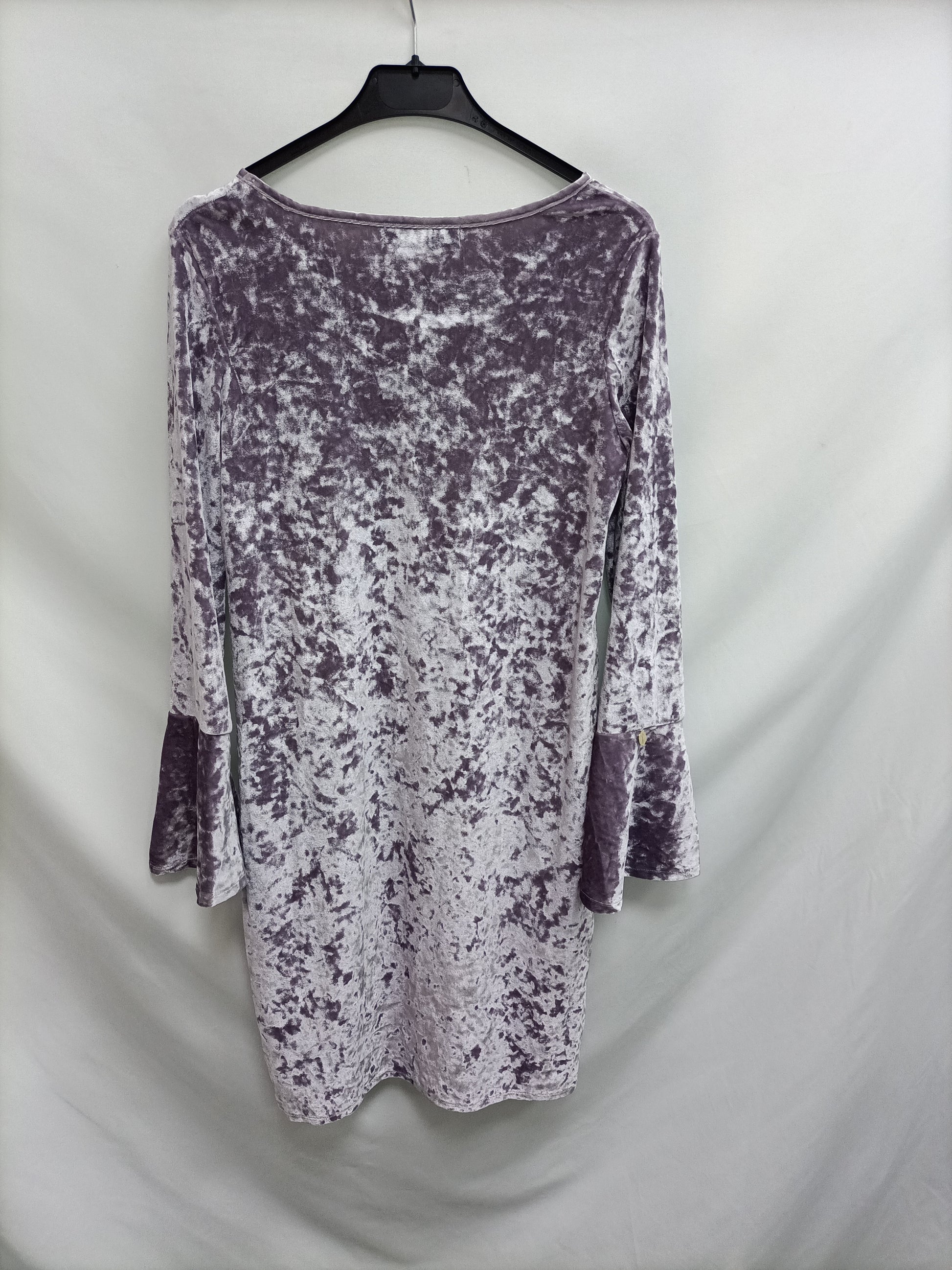 Vestido de terciopelo lila con las mangas Acampanadas. Elastico. largo 85 cm