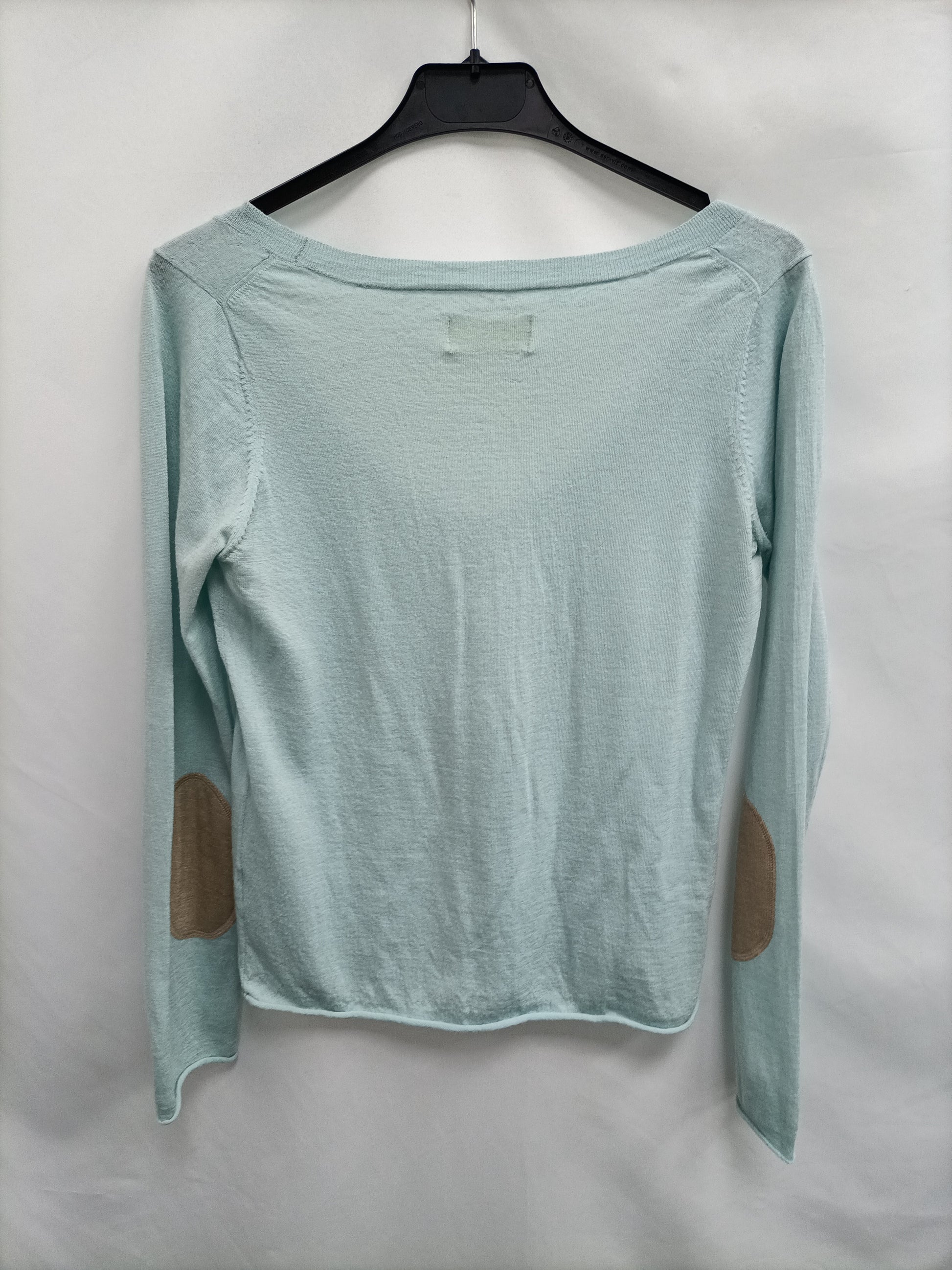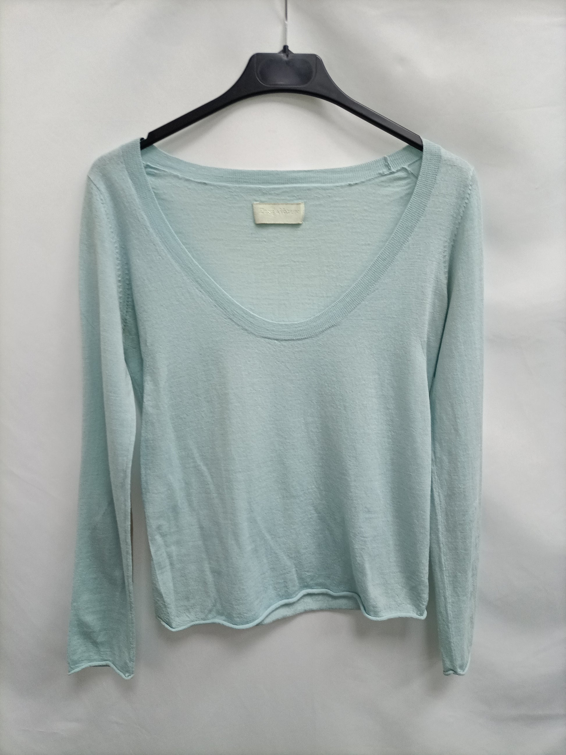 Jersey azul verdoso de punto muy finito. largo 51 cm
