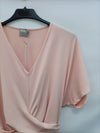 NUEVO CON ETIQUETA. Vestido corto rosa con detalle cruzado por a parte delantera y lazada. Largo 85 cm