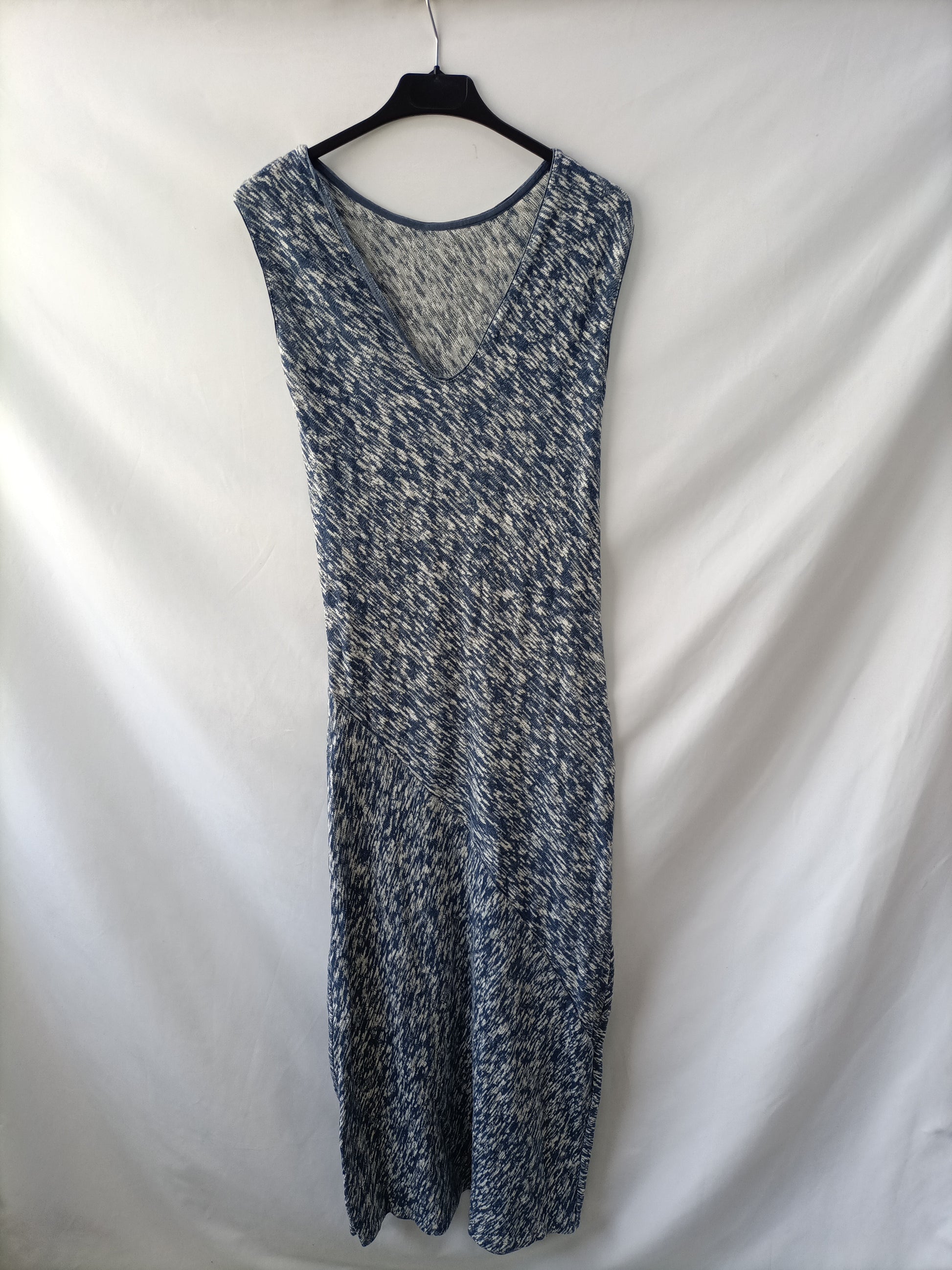 Vestido midi jaspeado azul y blanco. elástico. Largo 134 cm