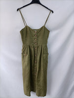 Vestido midi verde Abotonado de tejido tipo lino. No elástico. De sisa a sisa 42 cm largo 118 cm