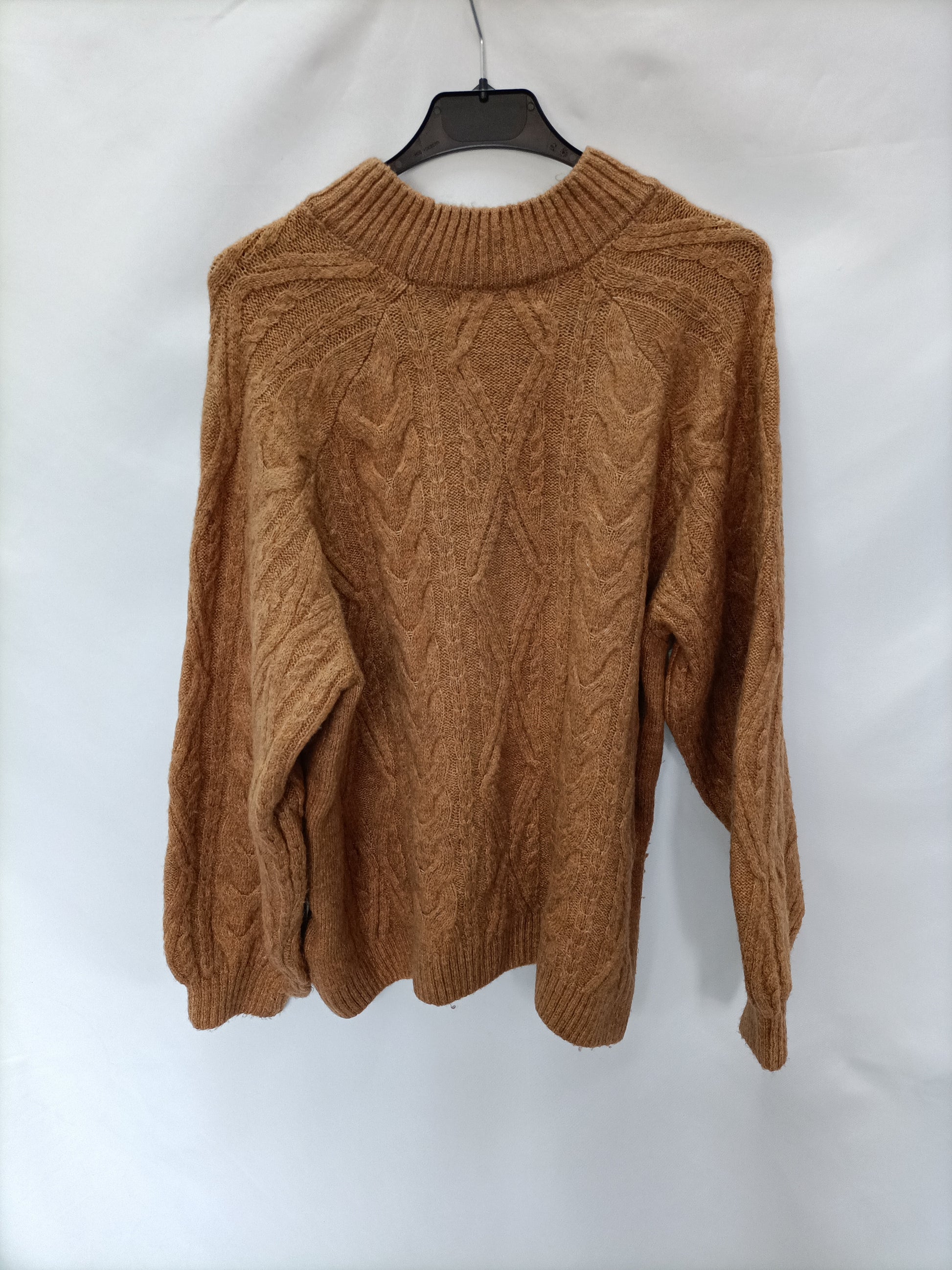 BROWNIE.Jersey de punto Camel con ochos suave. Cuello semiperkins y mangas anchas. Elastico. Largo 60 cm