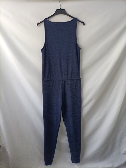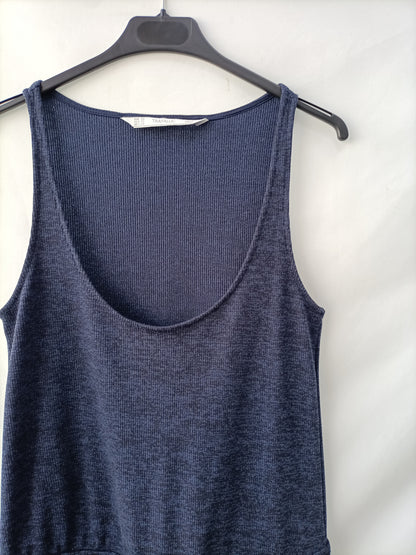 Mono de punto jaspeado en tonos negro y azules. elástico. ajutado Largo 148 cm