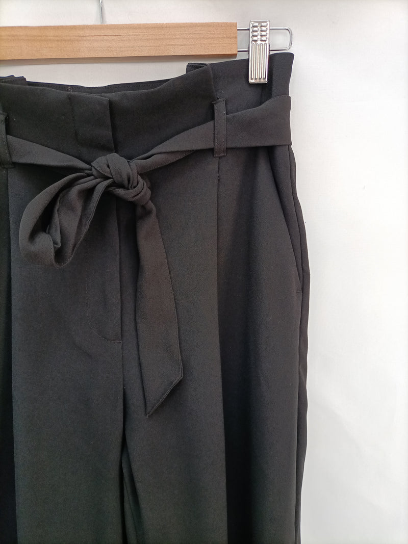 Pantalón negro fluido estilo de vestir con la cintura alta y detalle de lazada. No elastico. cintura 34 cm Largo 98 cm