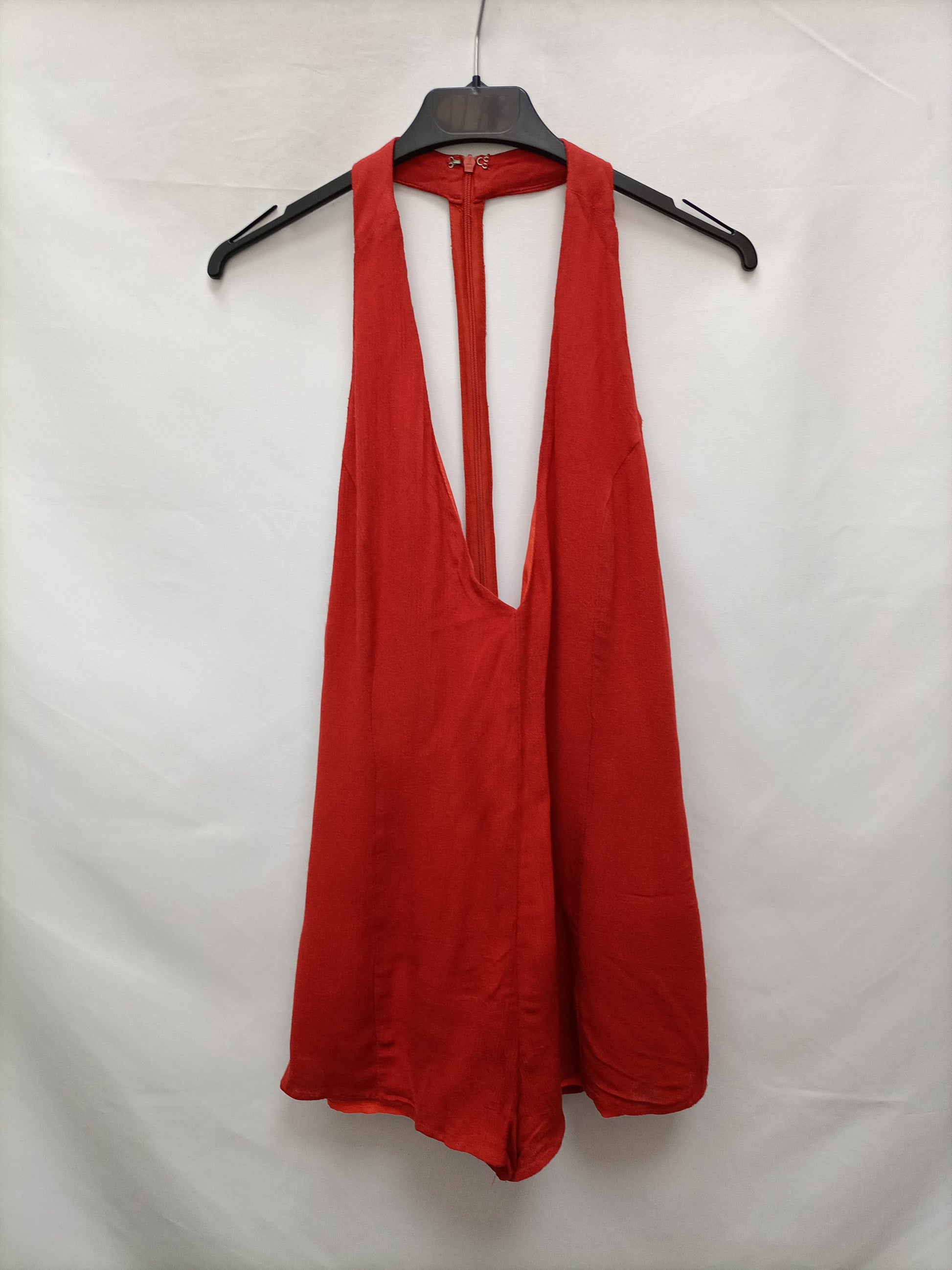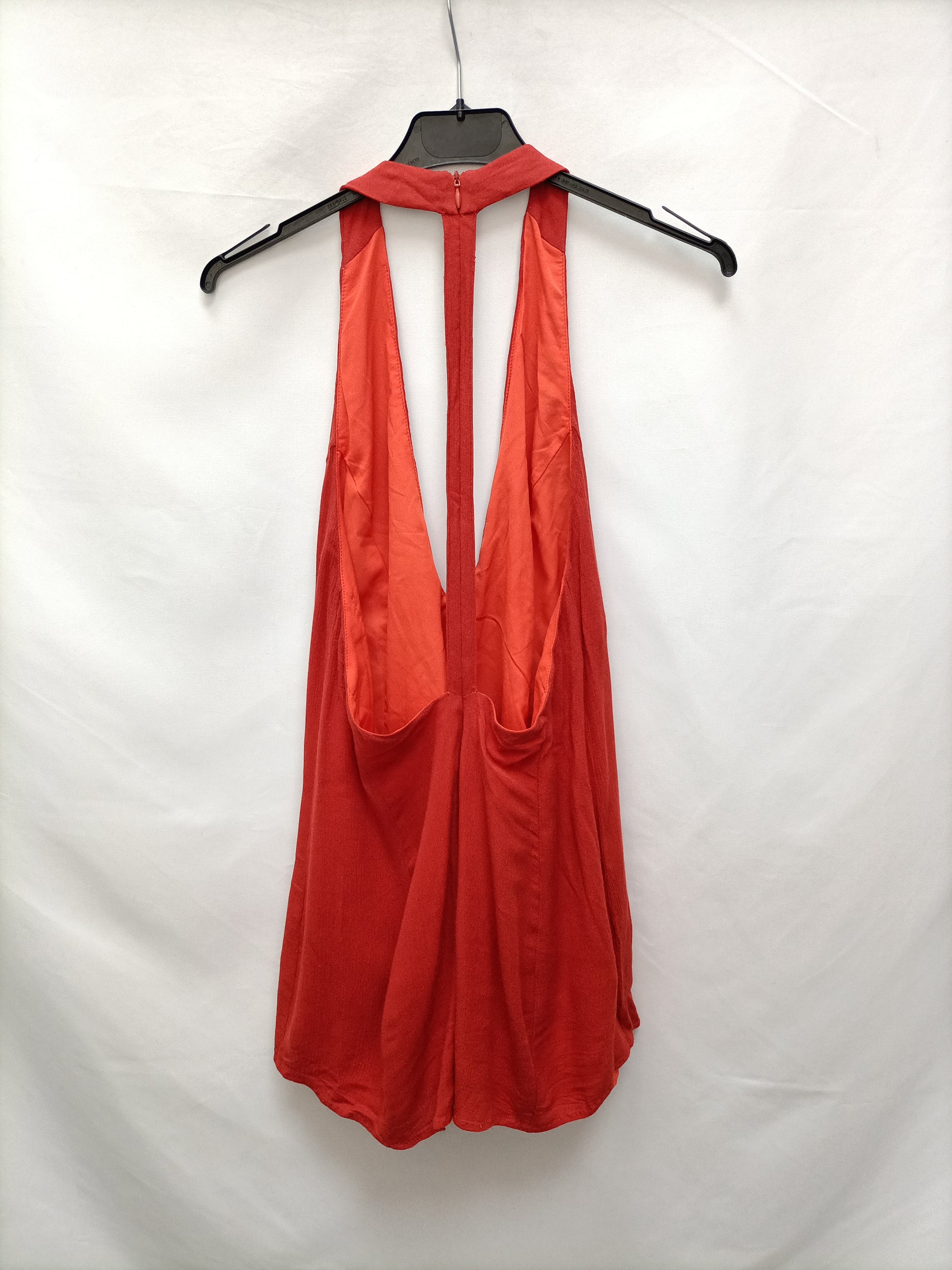 Mono corto color teja con la espalda al al aire con cremallera. No elástico. De sisa sisa 42 cm largo 76 cm