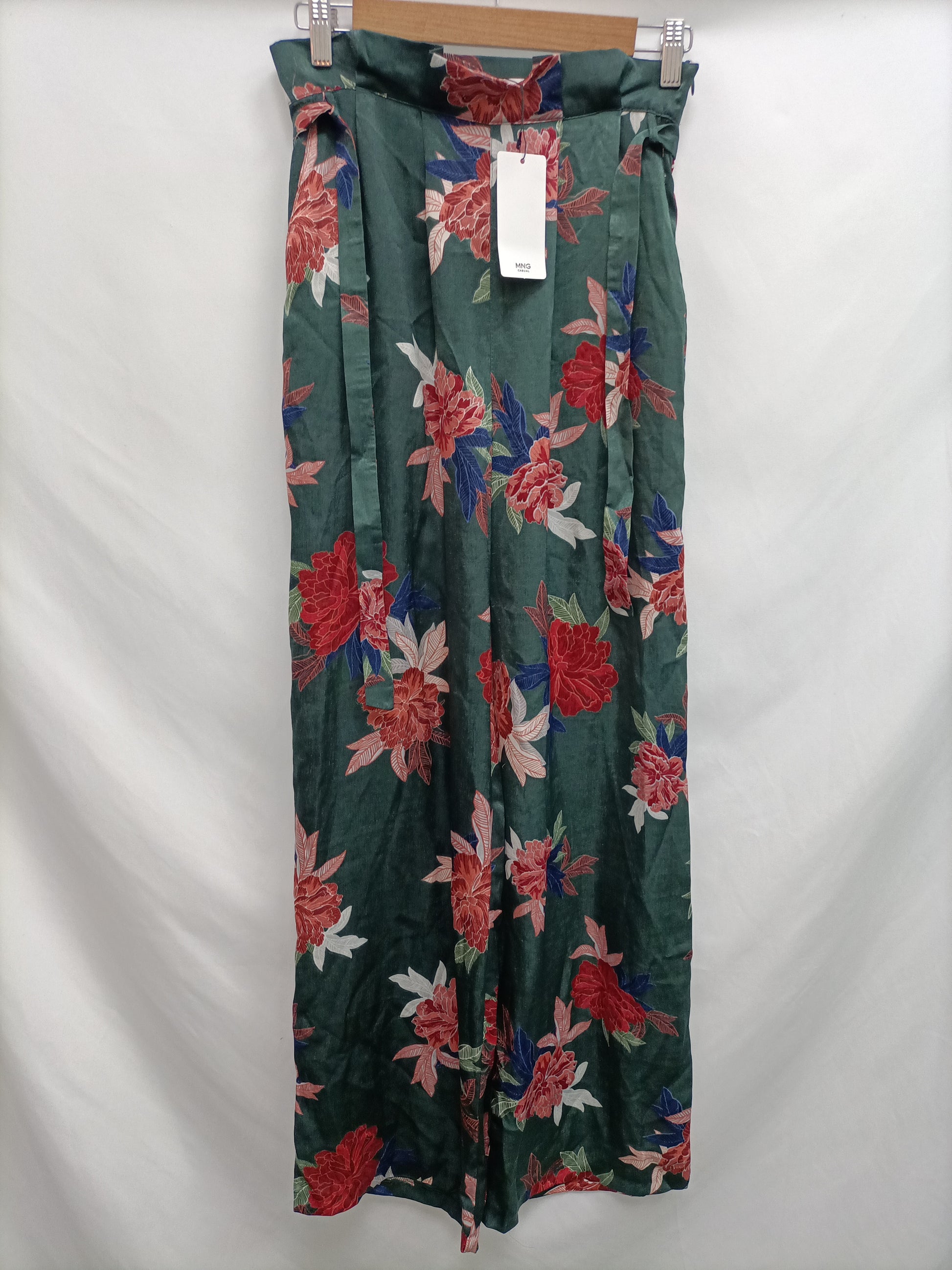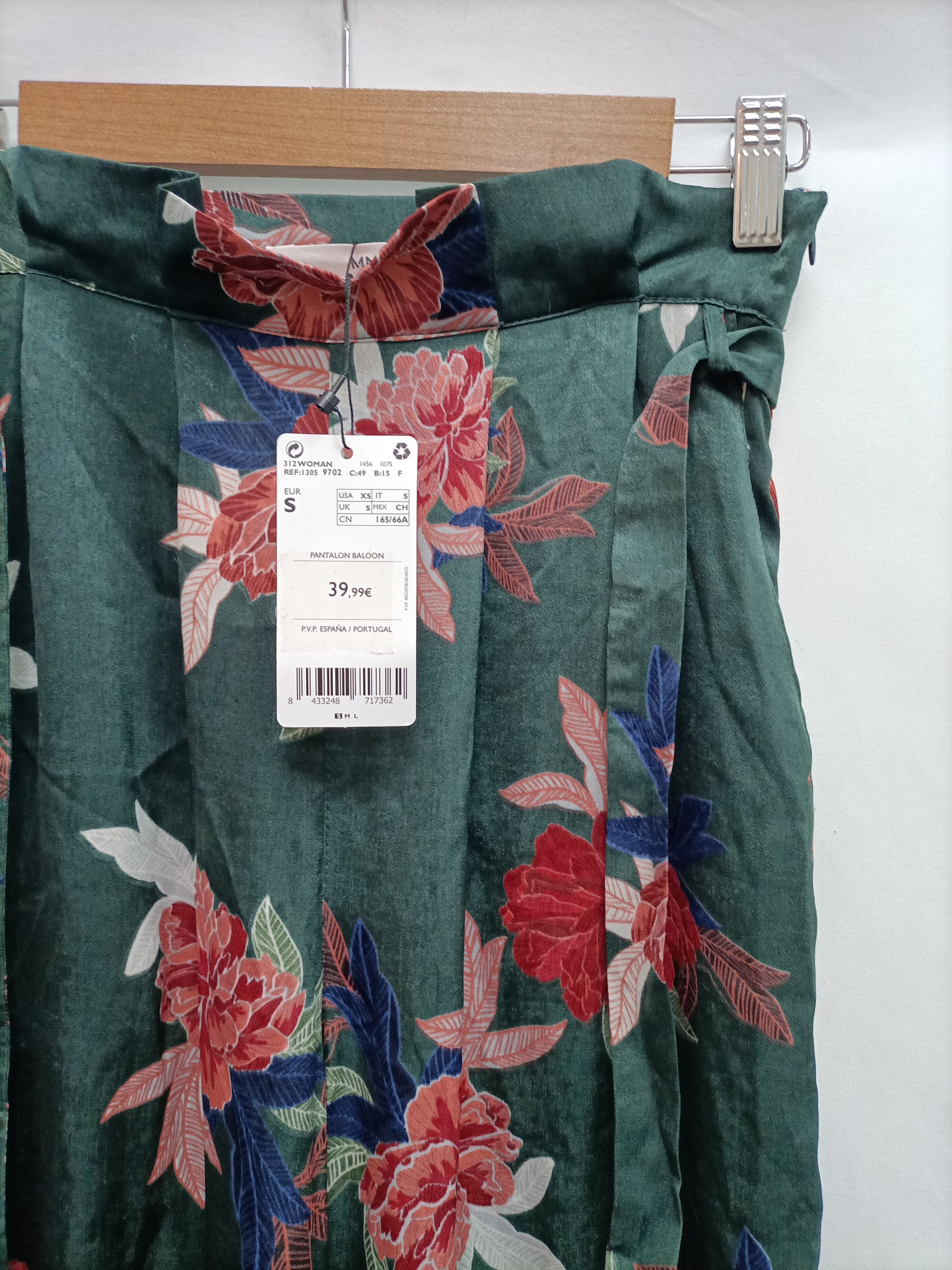 NUEVO CON ETIQUETA. Pantalón Palazzo o verde con flores en tonos rosas. Cintura 34 cm Largo 114 cm