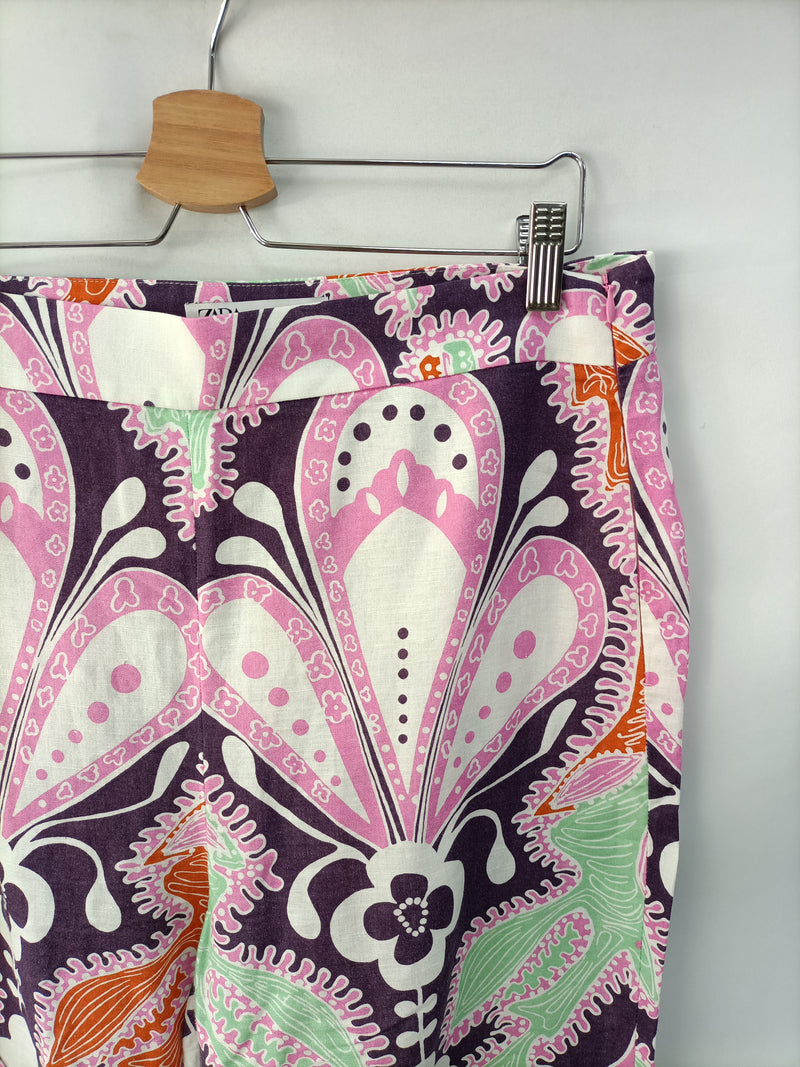 Pantalón de flores estilo Palazzo. Lino y algodón. No elastico. Cintura 42 cm largo 118 cm