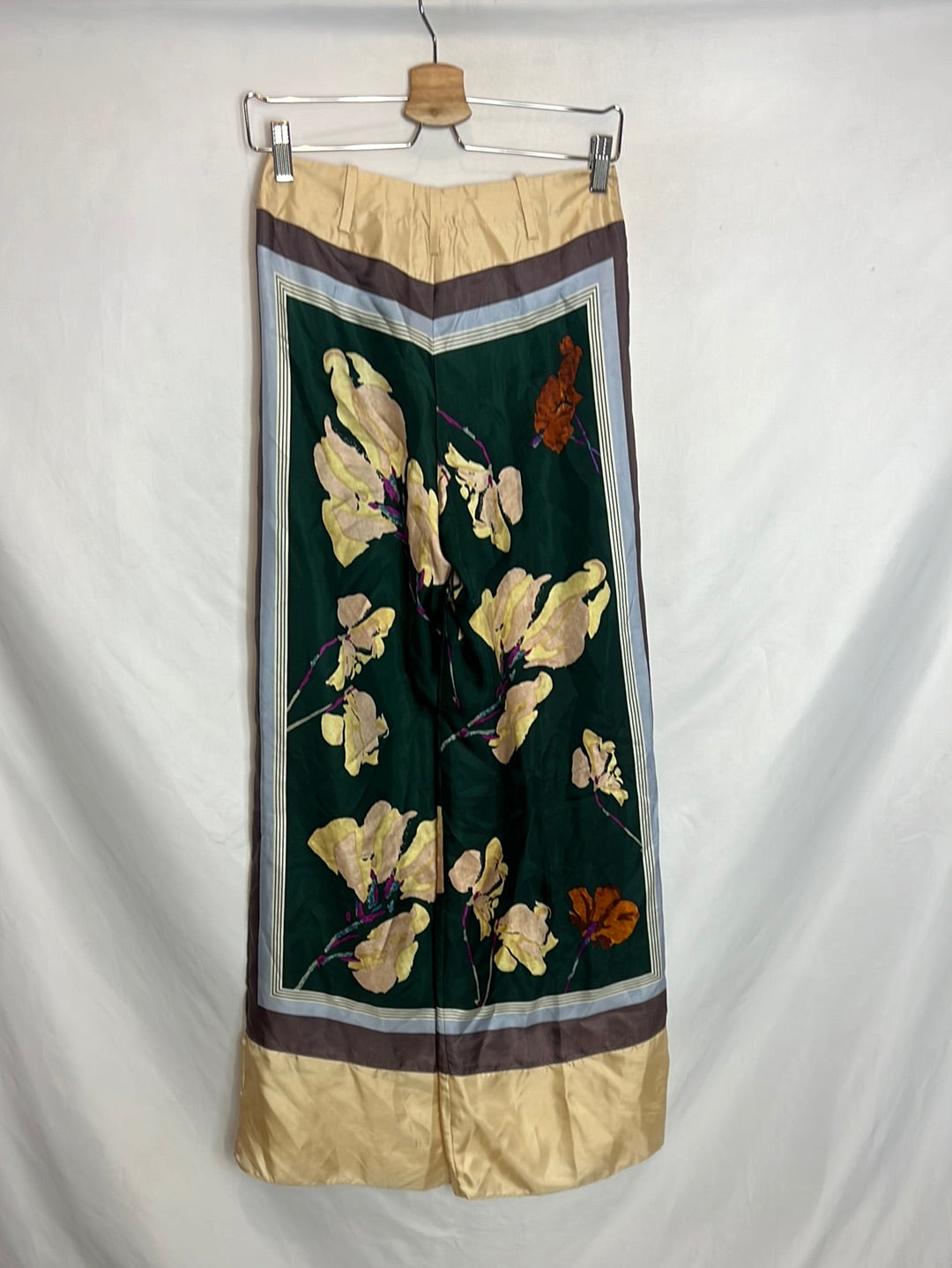 ZARA STUDIO. Pantalón estampado detalle pinzas. Parece seda pero tiene la etiqueta cortada. Cintura 35cm, largo 111cm