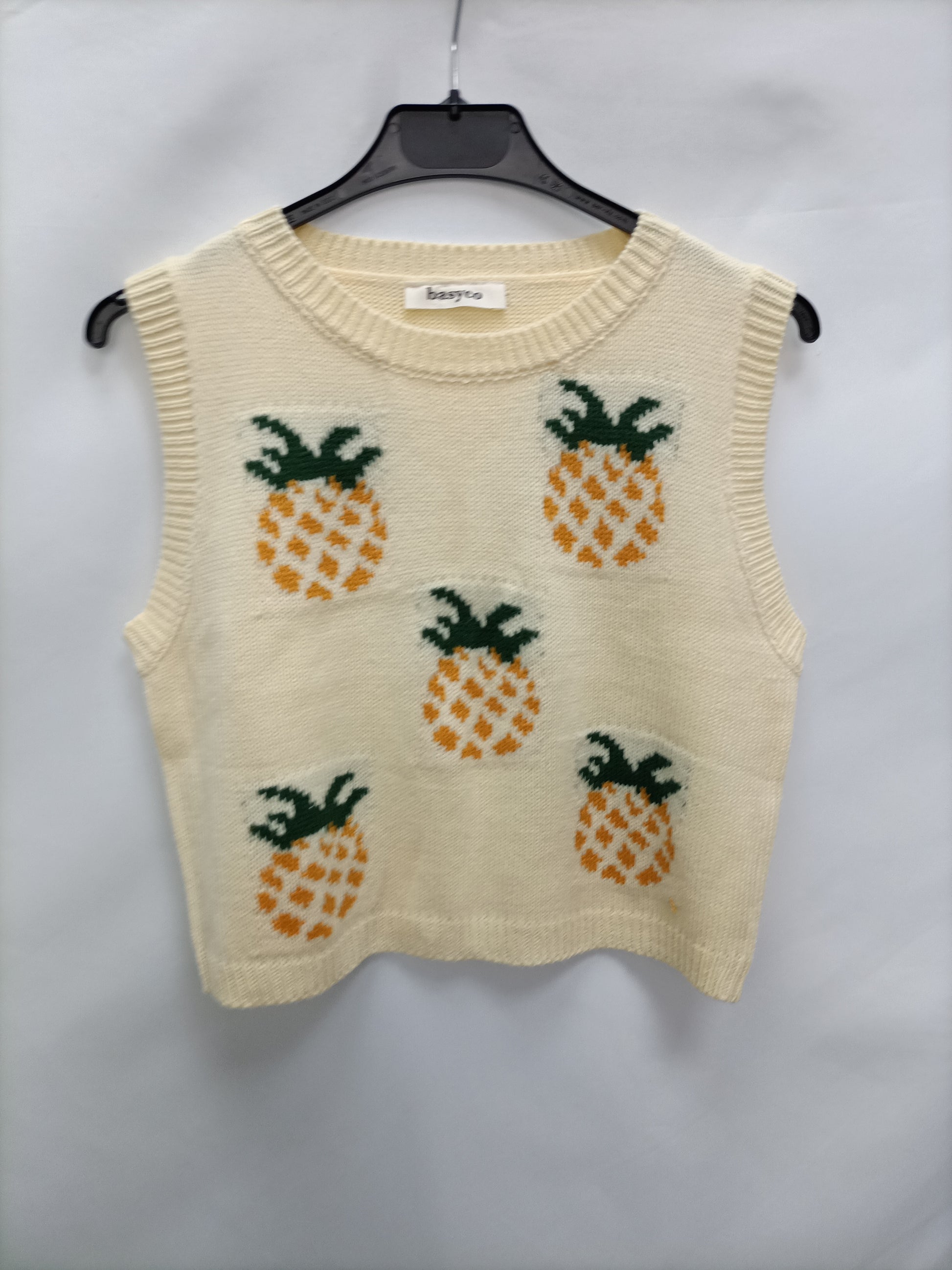 Chaleco de punto amarillo estampado piñas.Cortito. Largo 42 cm