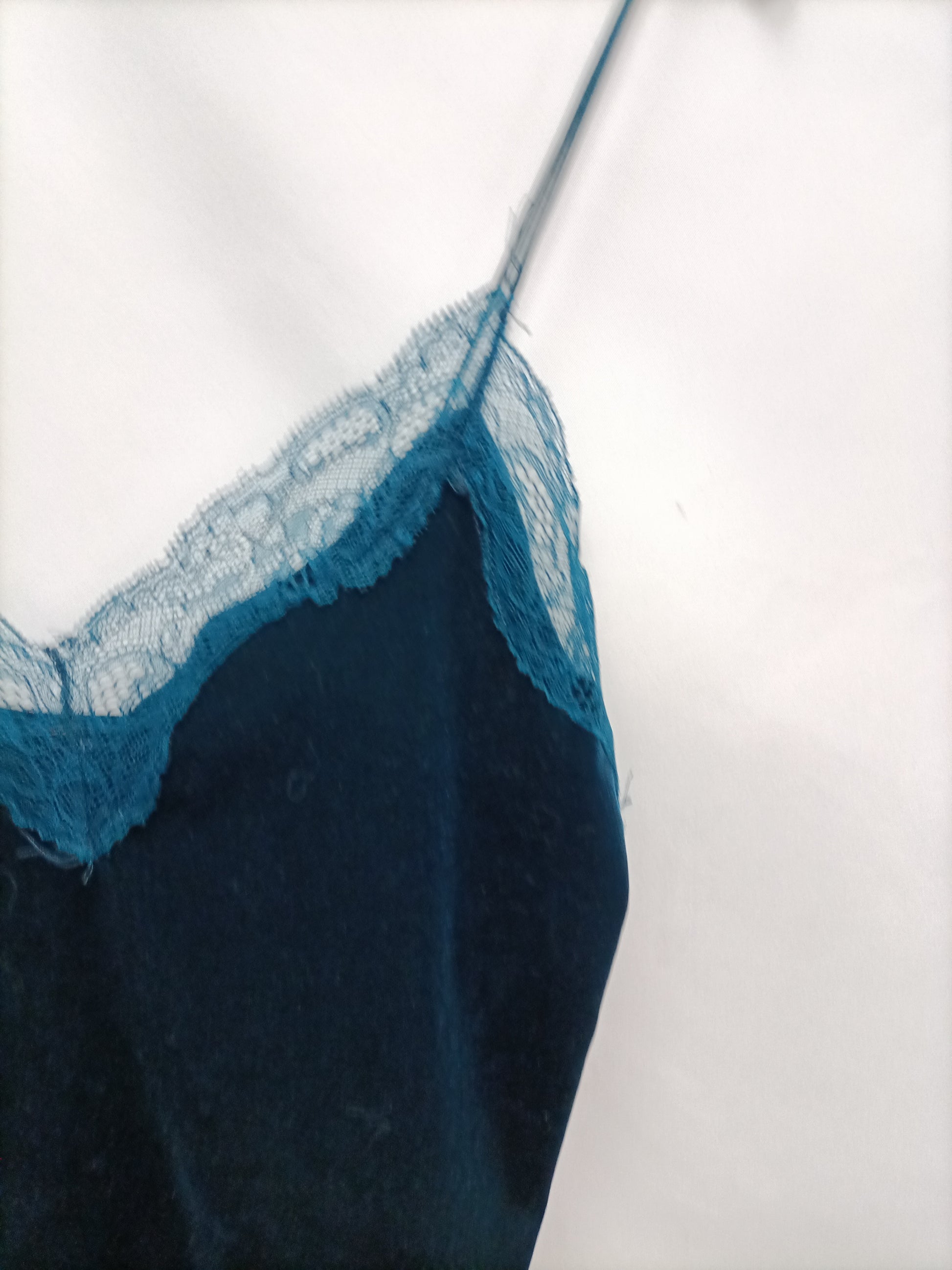 Top azul intenso estilo lencero.Terciopelo. Elastico. Largo 48 cm