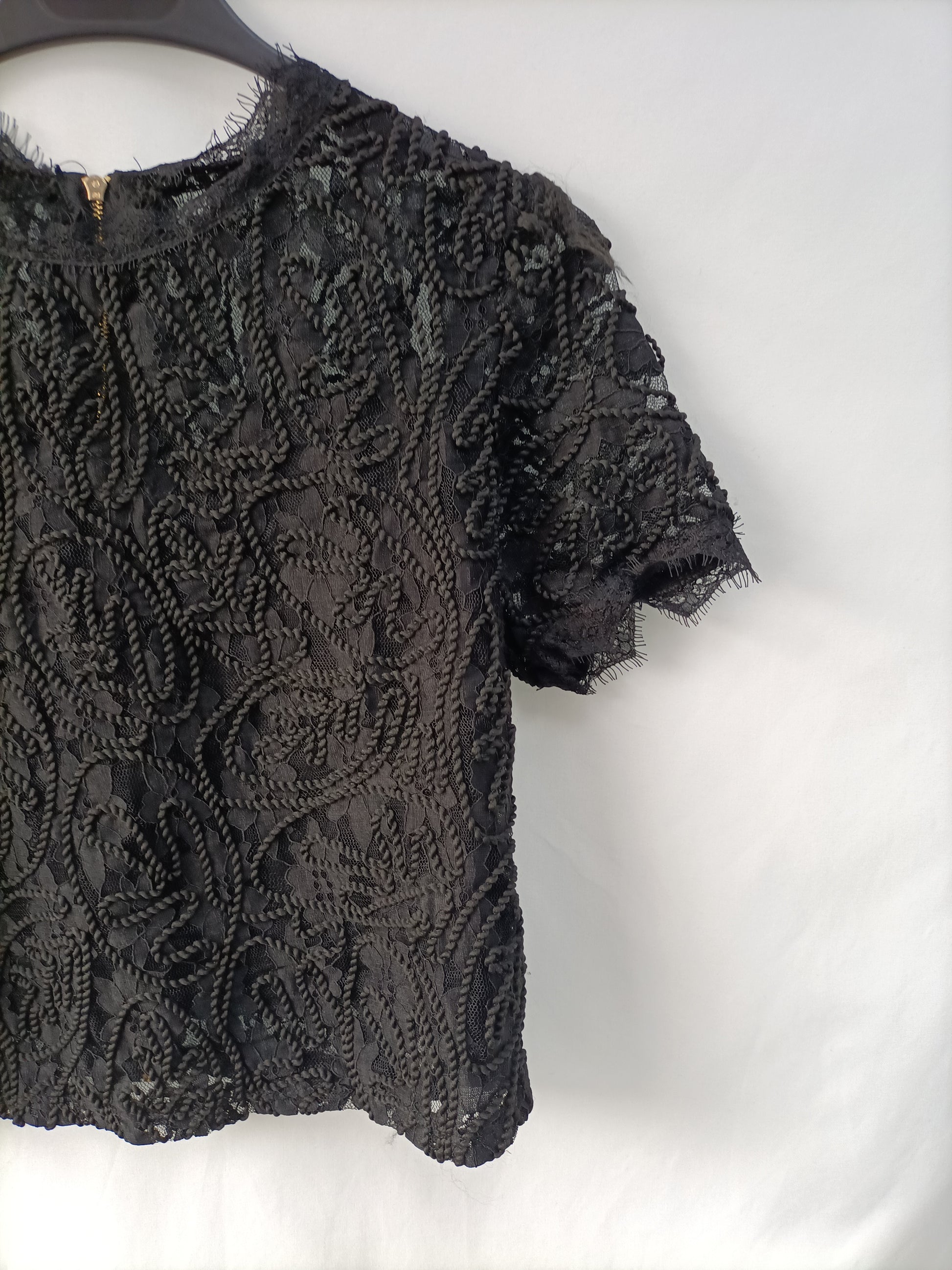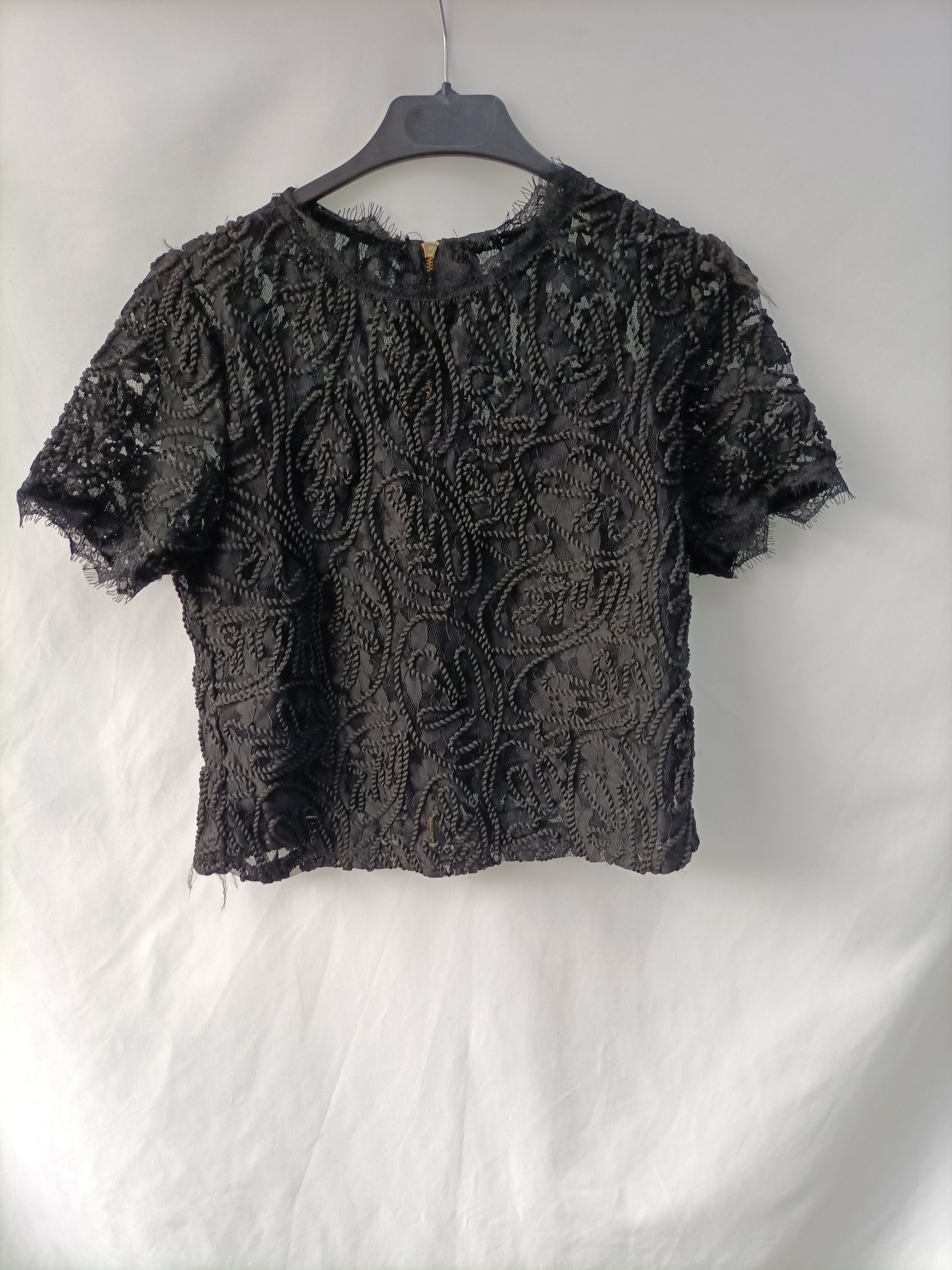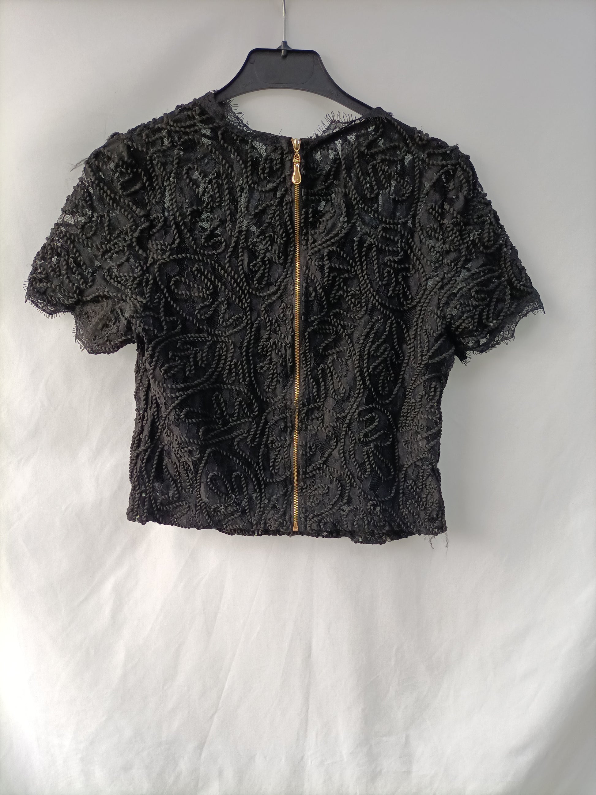 Top corto negro de encaje semitransparente. Elastico. De sisa a sisa 41 cm largo 42 cm