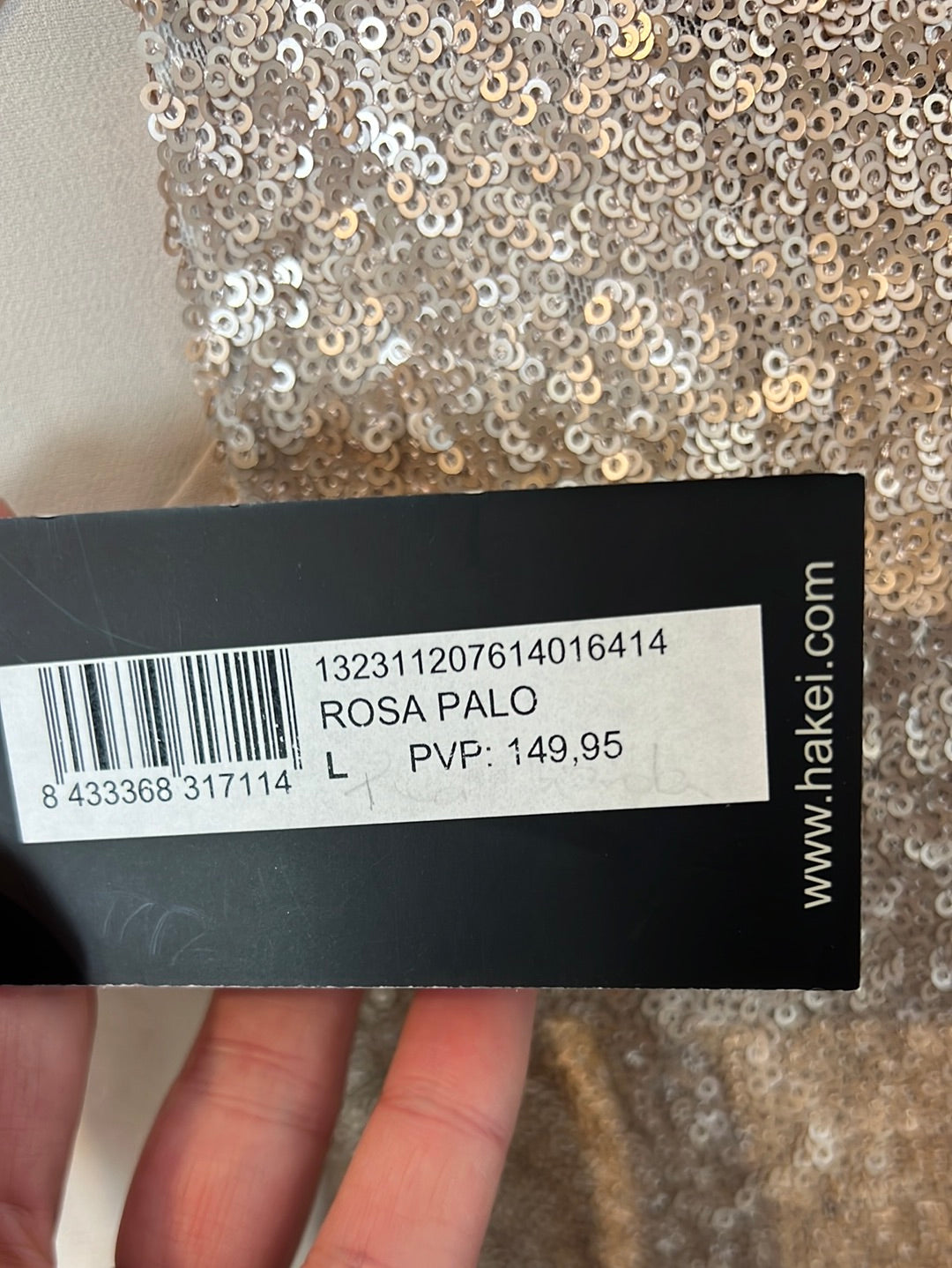 NUEVO CON ETIQUETA. Blazer fluida con lentejuelas en tono beige/rosa. No se abrocha y no es elástica. Hombros 39cm, largo 69cm