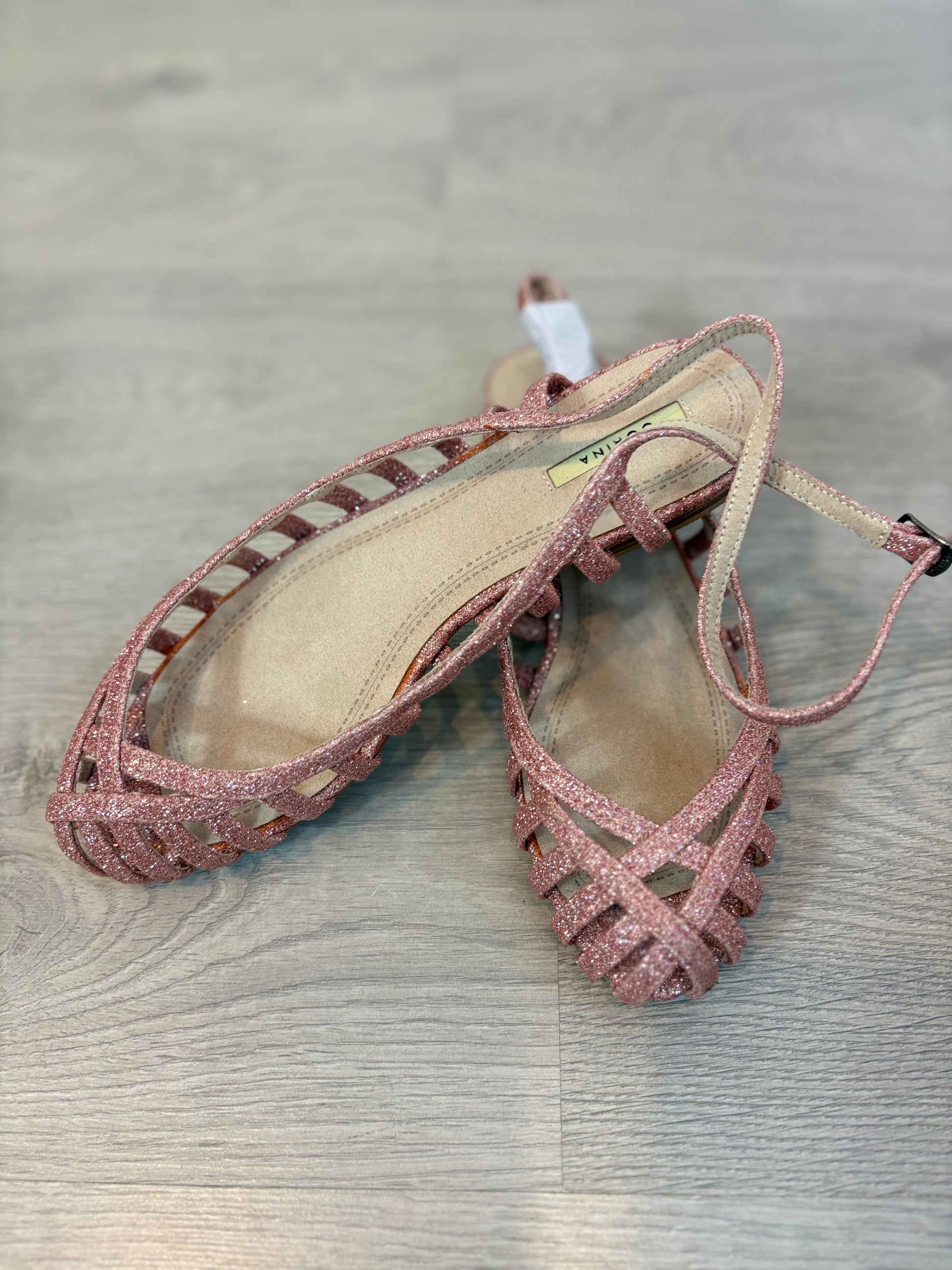 NUEVOS CON ETIQUETA. Sandalia plana rosa purpurina