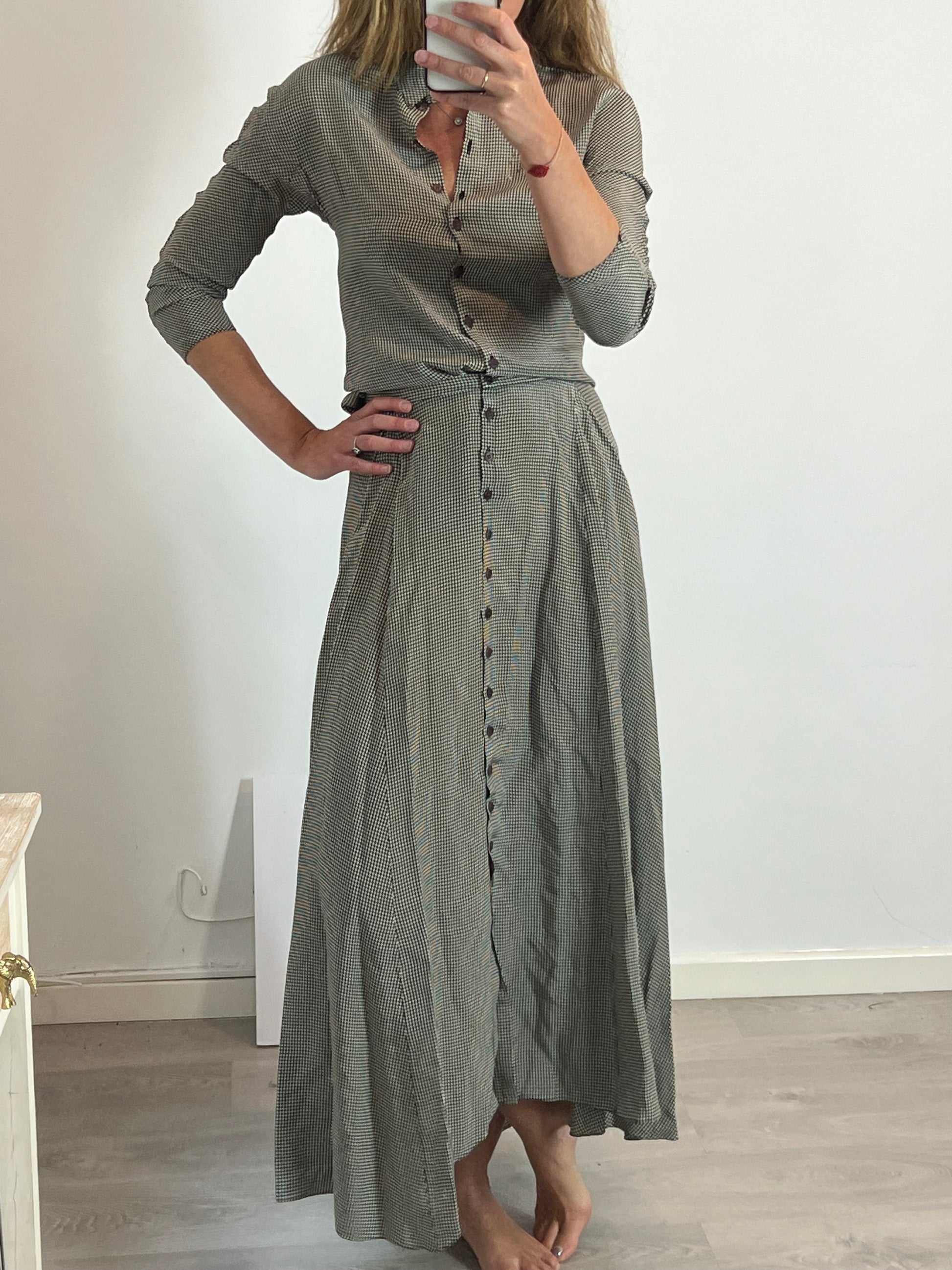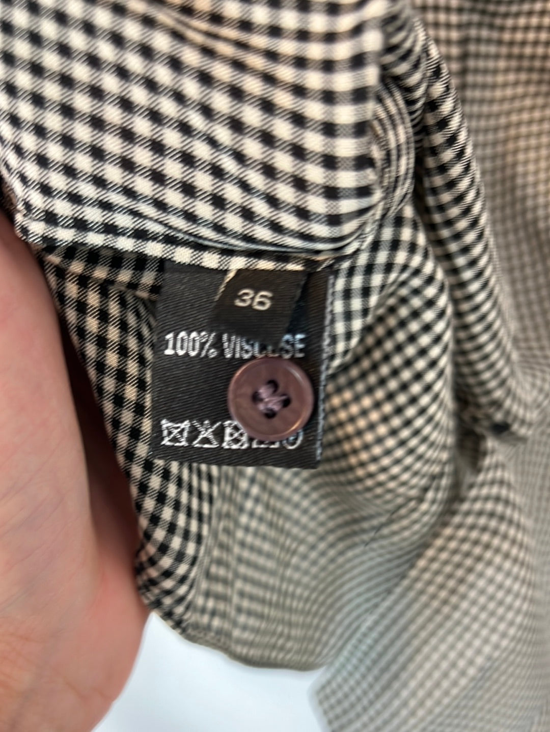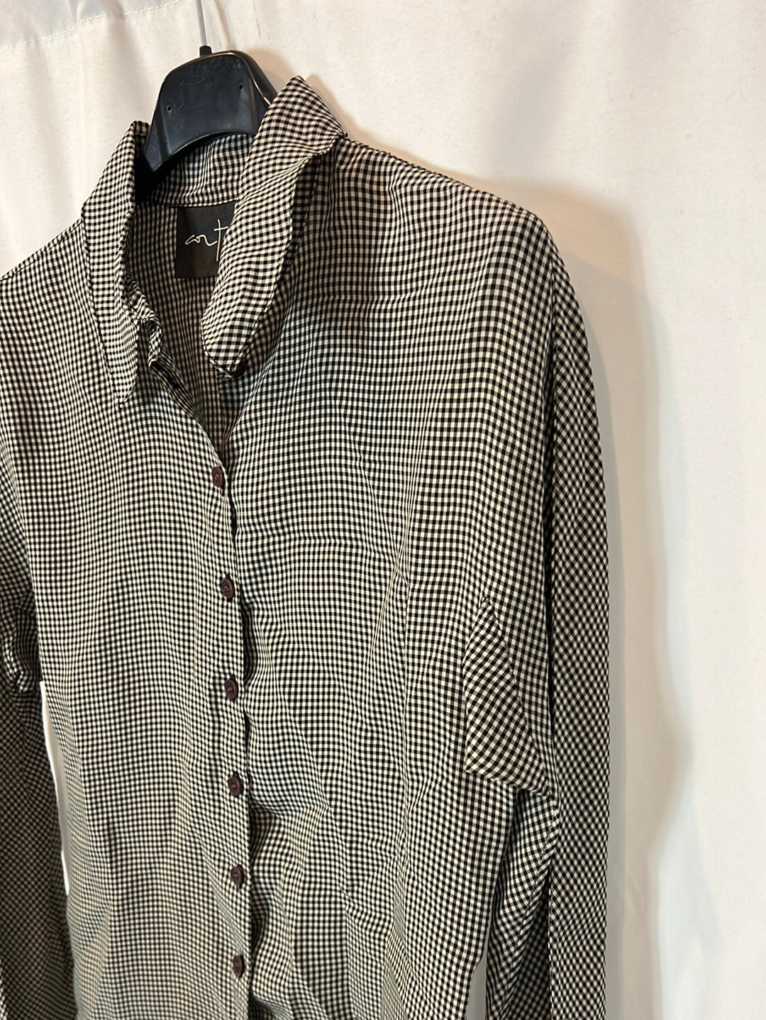 Blusa cuadros mini negros y beiges viscosa. Espalda 43cm, cintura39cm, largo 62cm