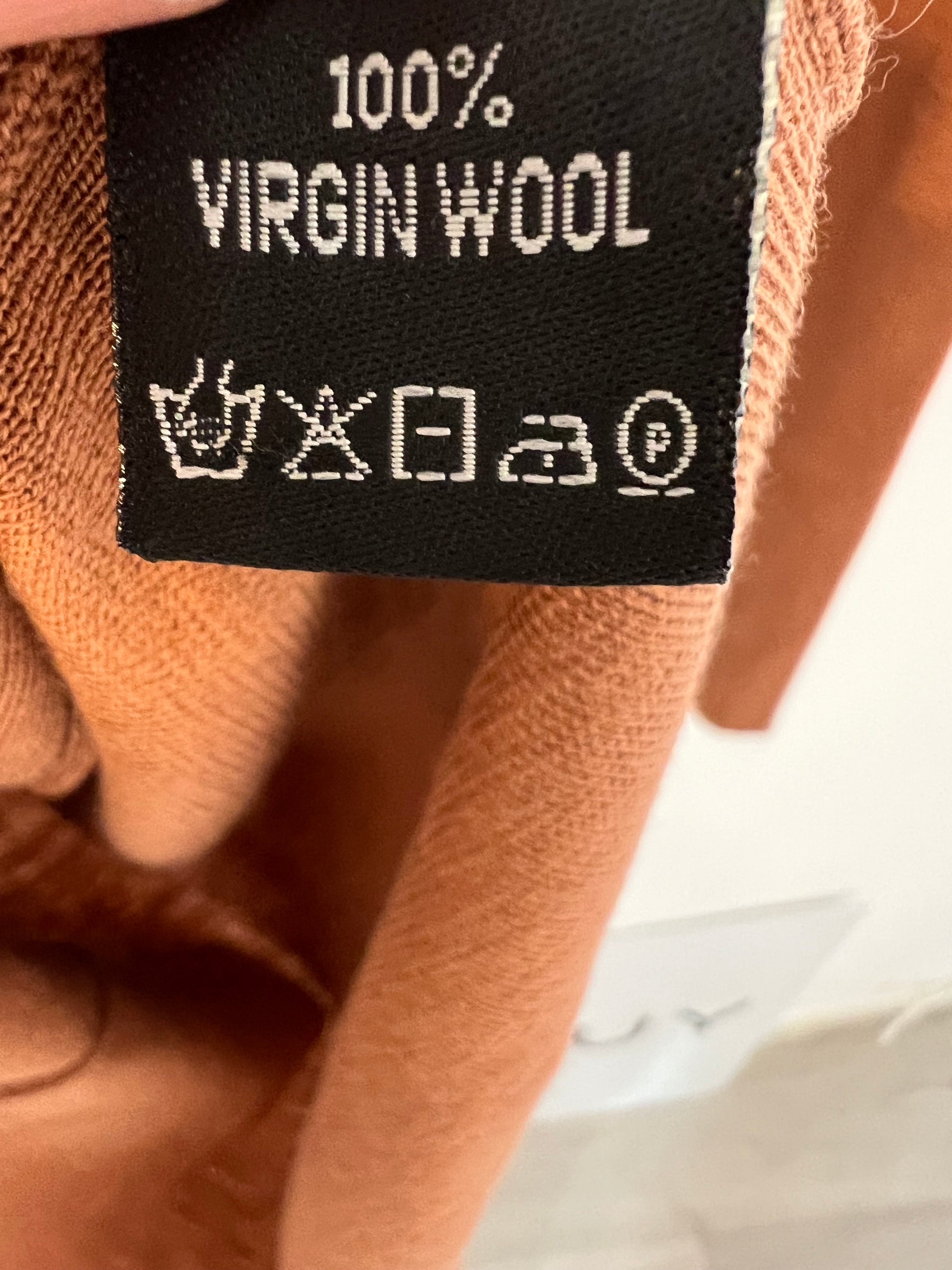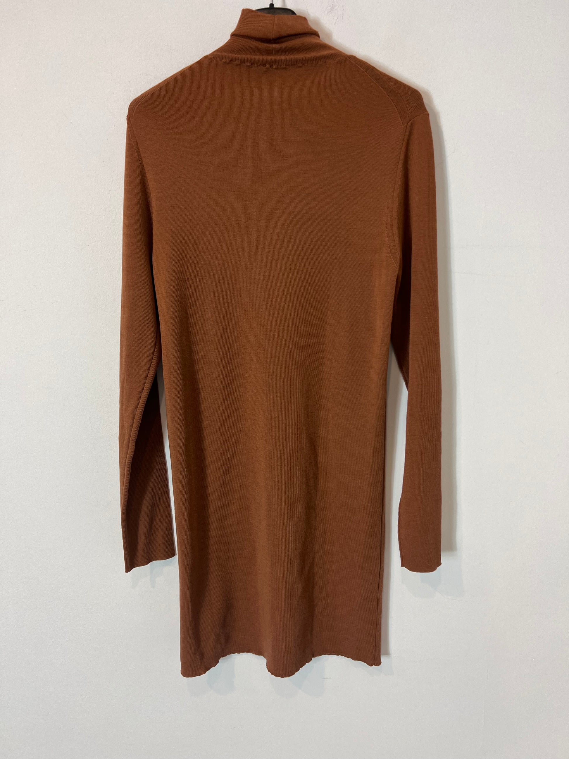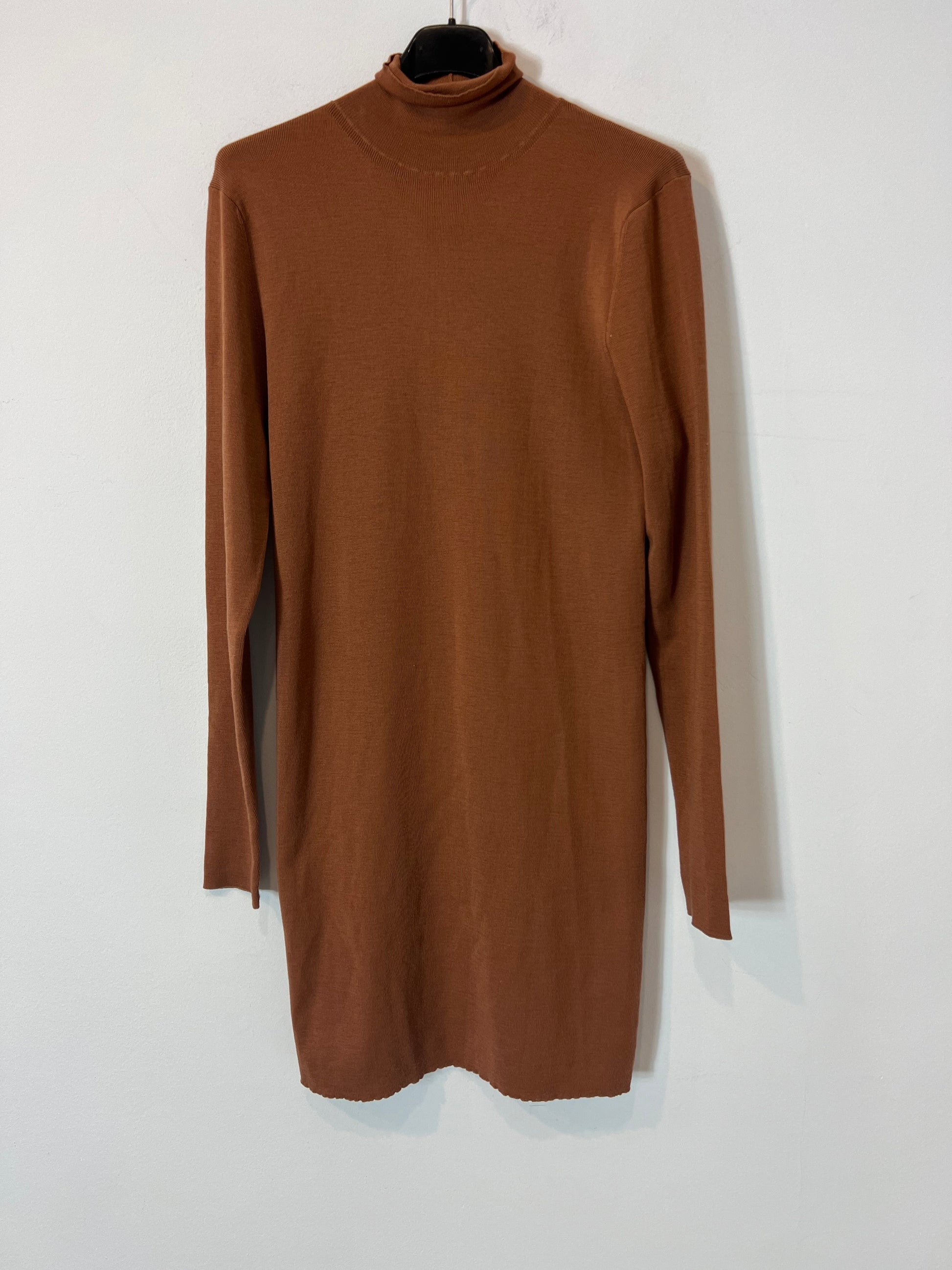 Vestido corto marrón lana elástico. Talla en etiqueta 40 (italian). Largo 86cm