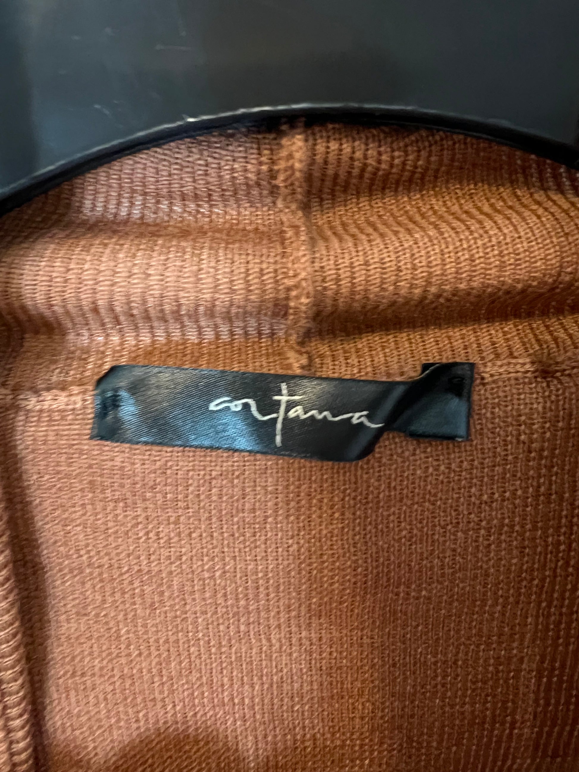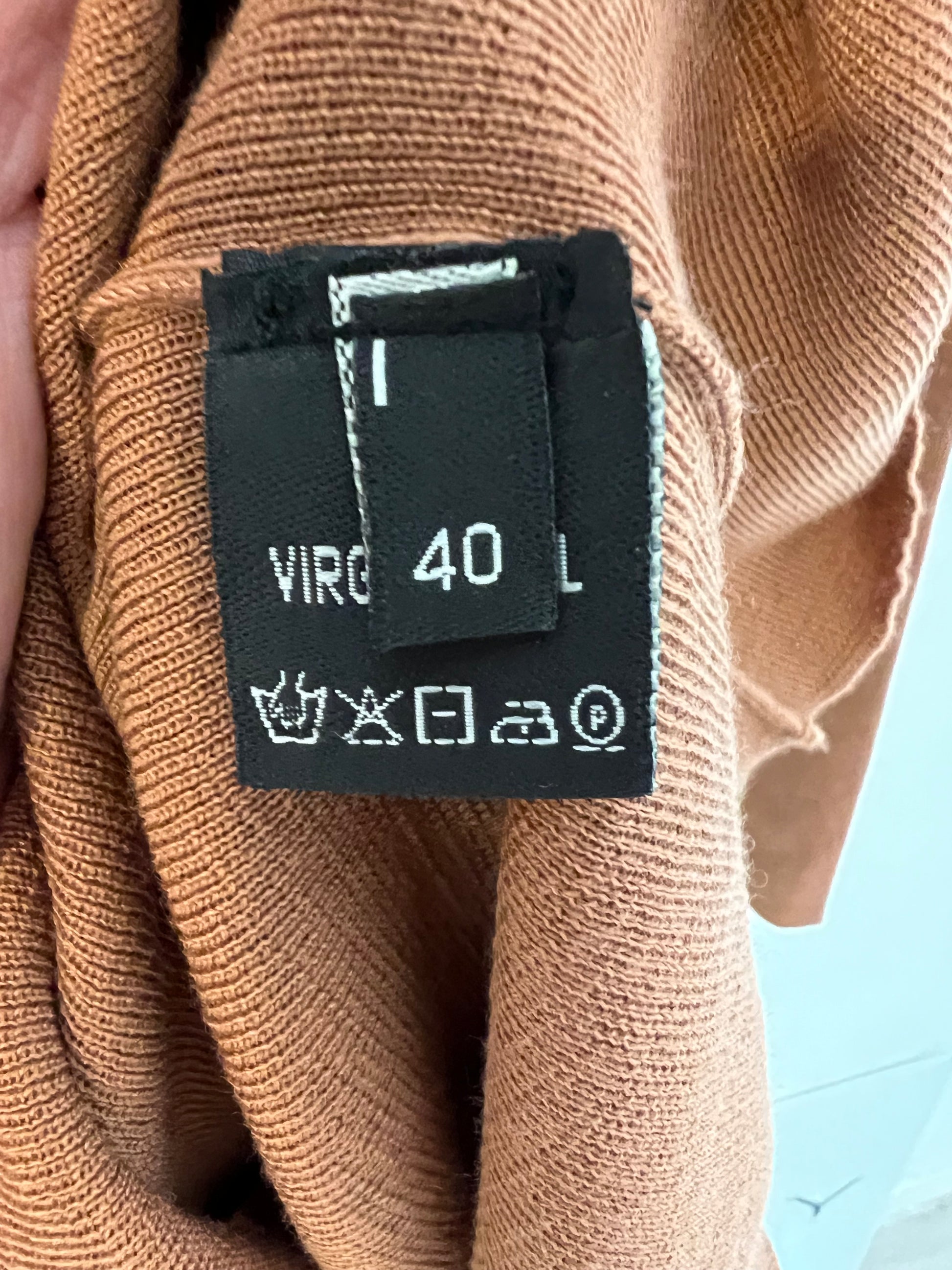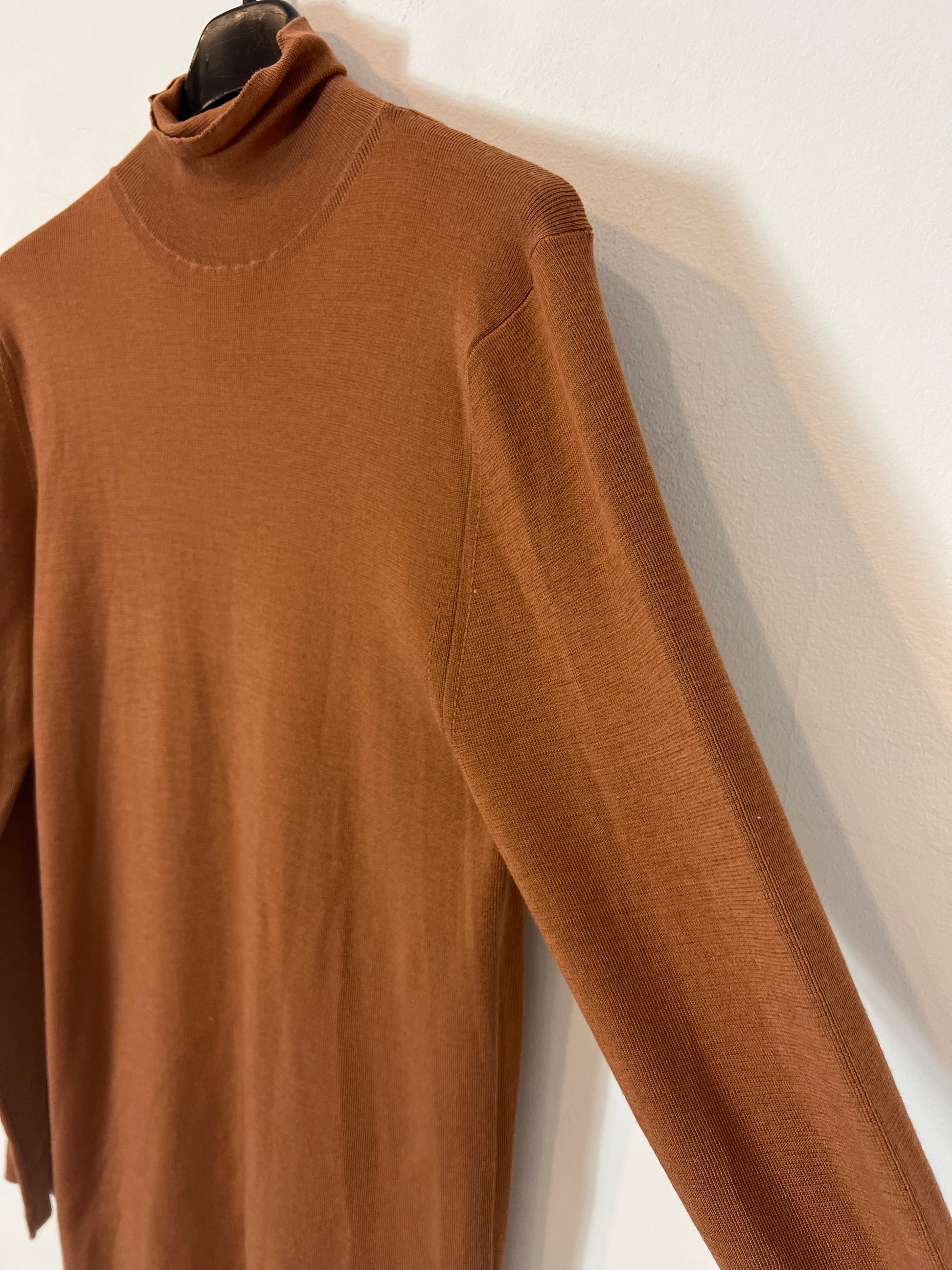 Vestido corto marrón lana elástico. Talla en etiqueta 40 (italian). Largo 86cm