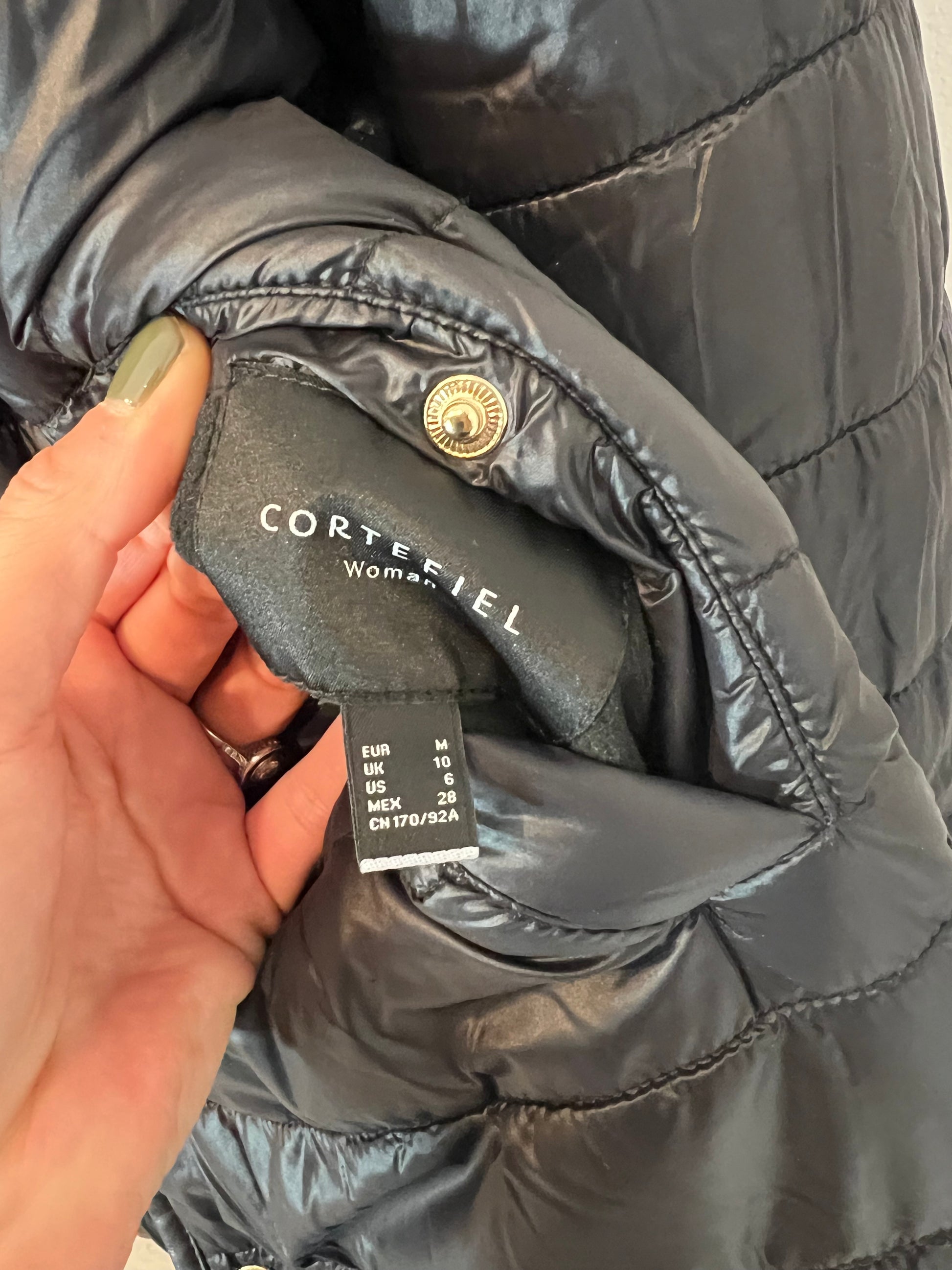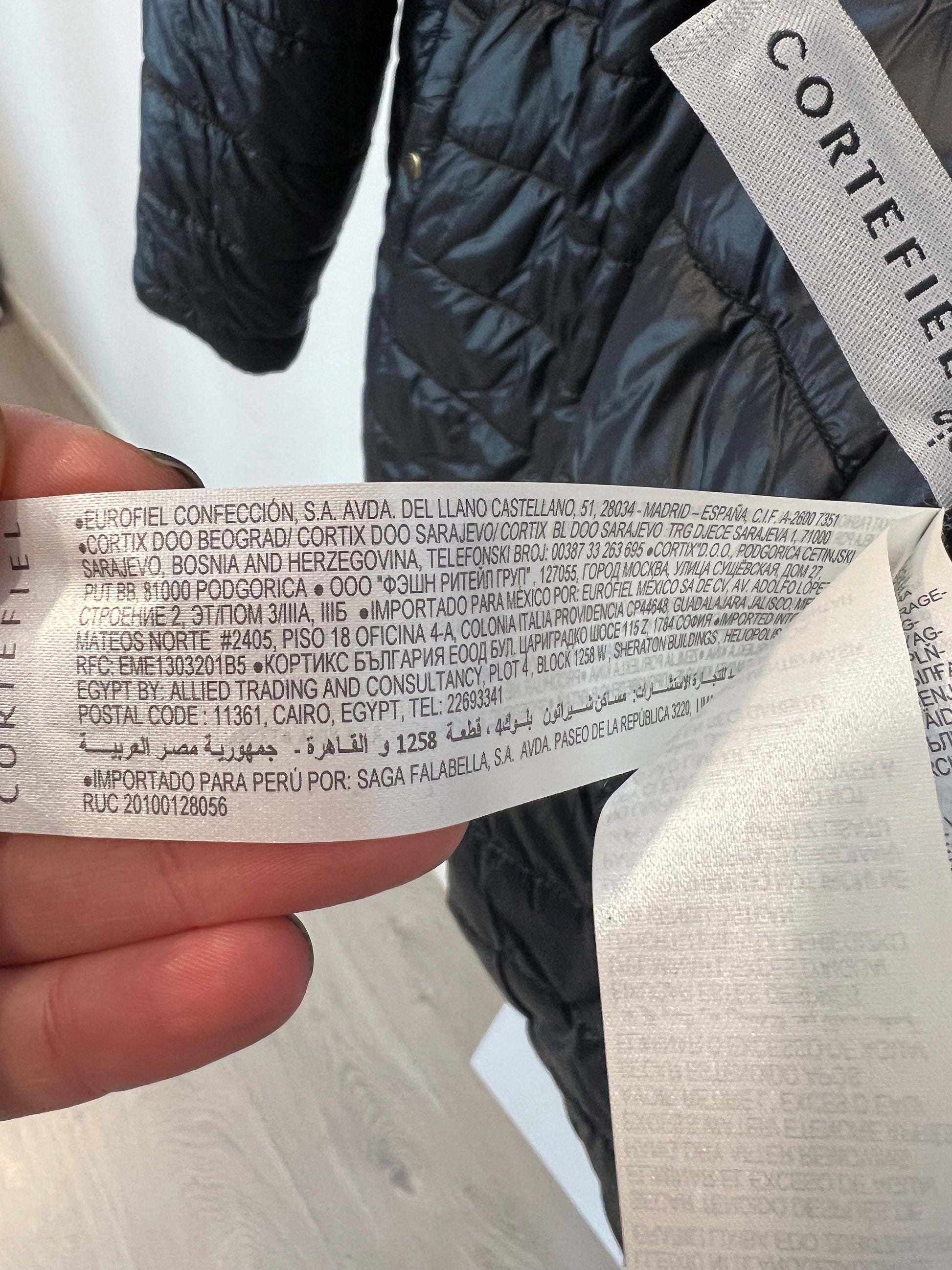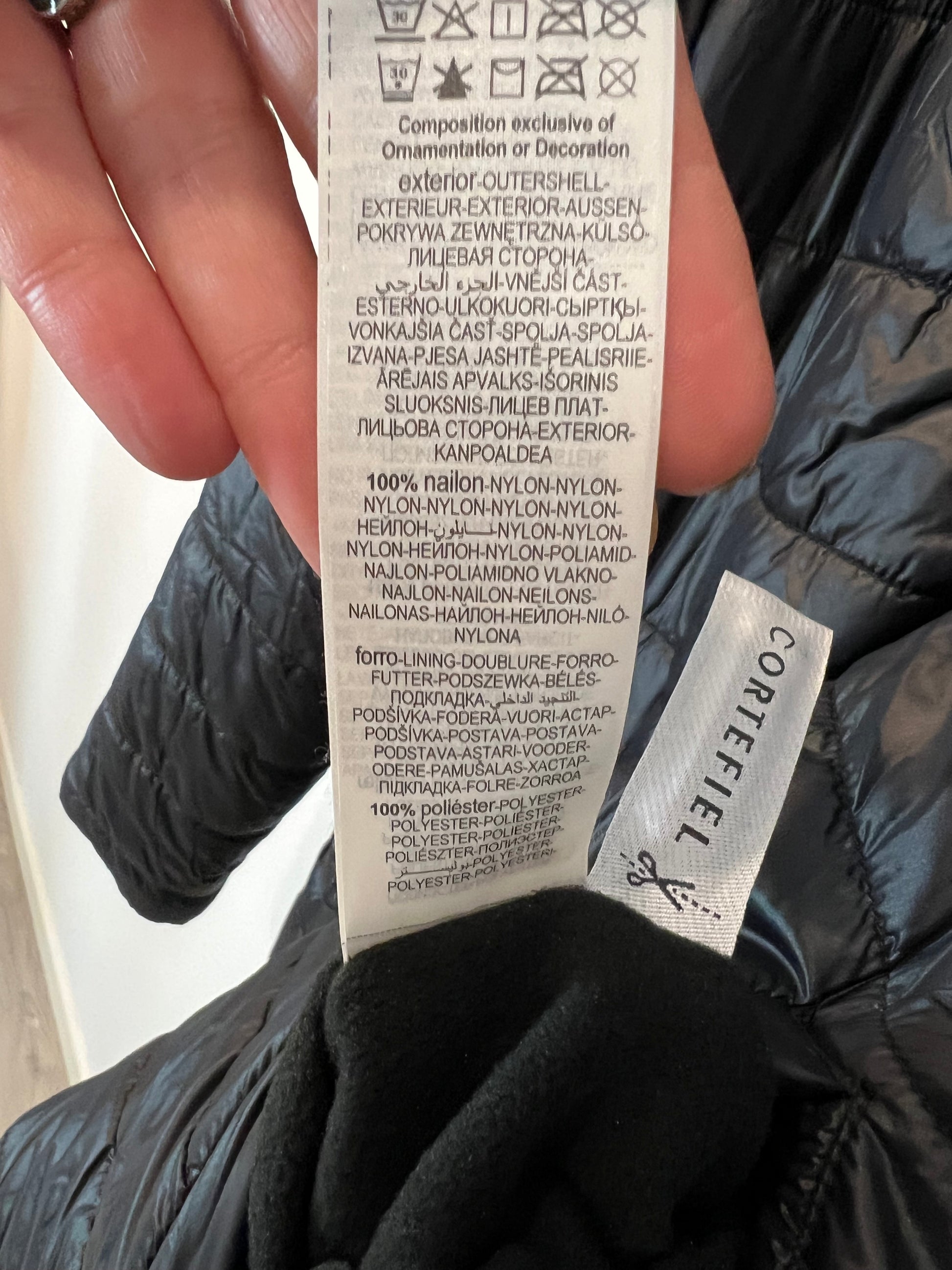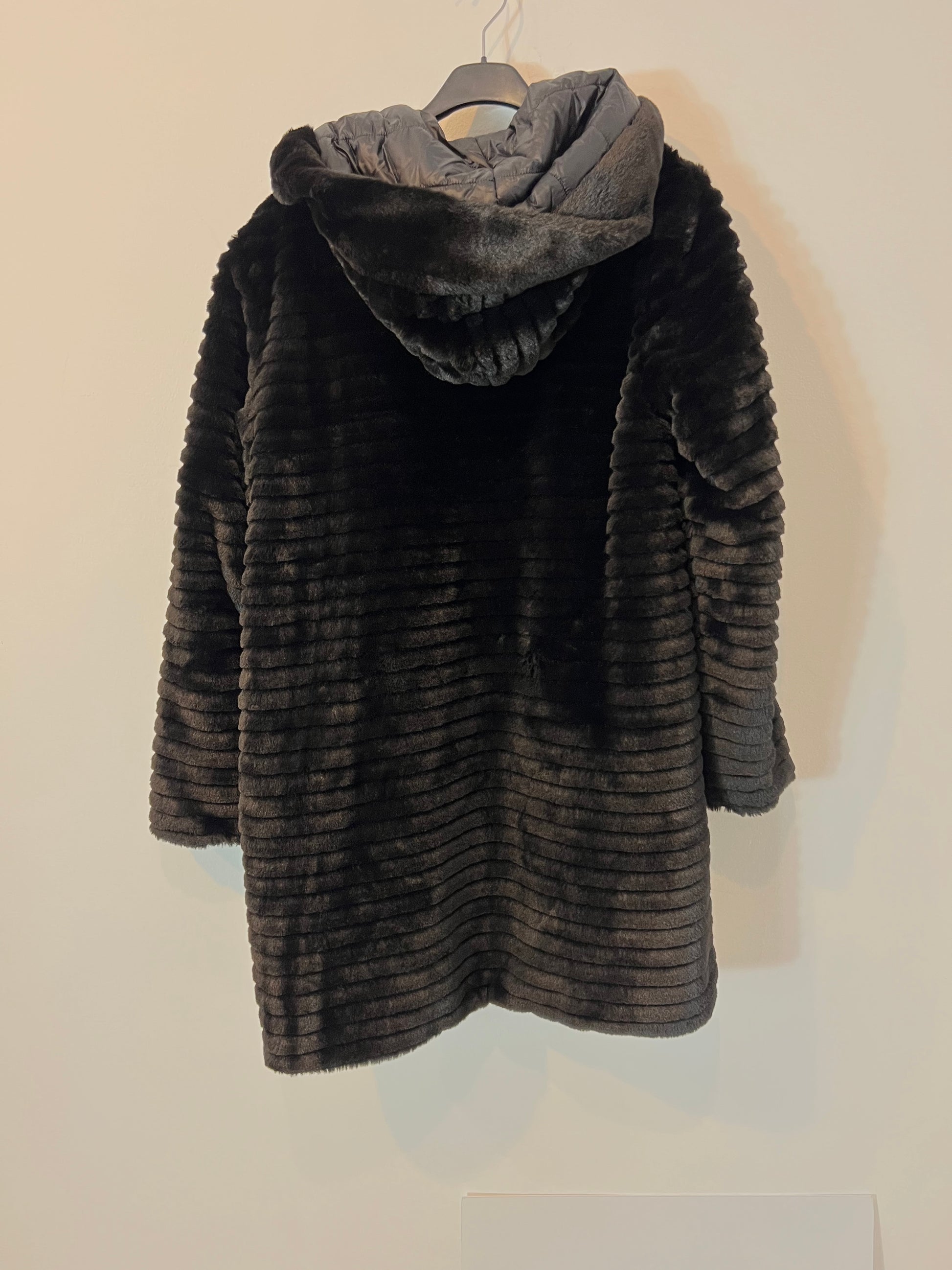 abrigo negro reservable de pelo sintético y plumas.  Largo 86cm
