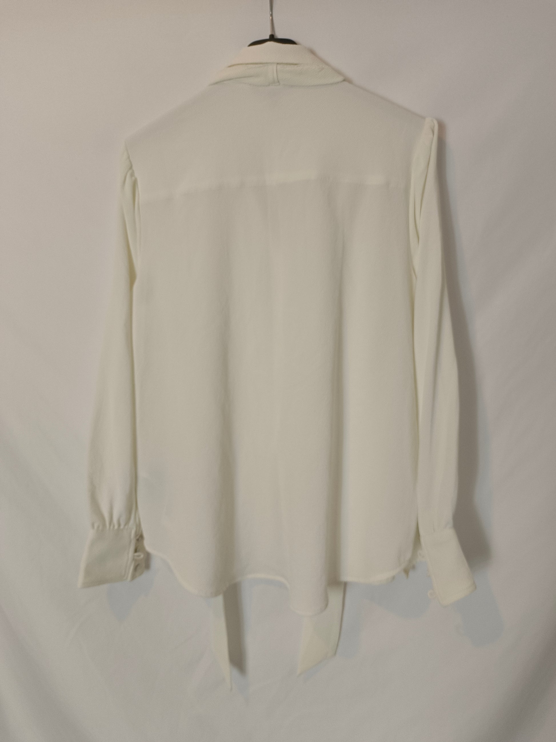 CORTEFIEL. Blusa blanca textura y lazada T.m