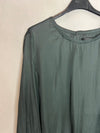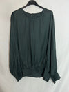 Blusa satinada azul grisáceo fruncidos puños y cintura