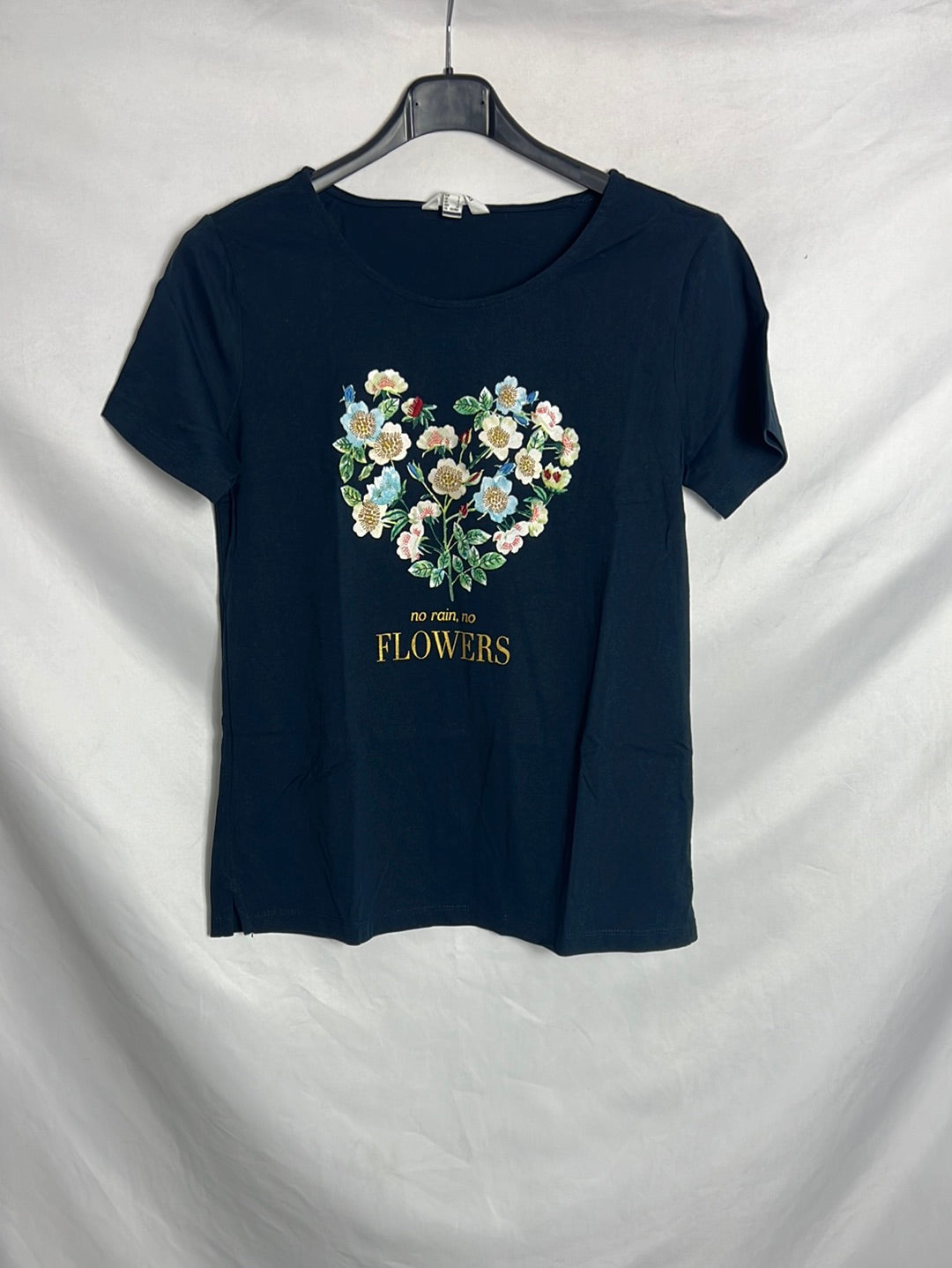 CORTEFIEL. Camiseta azul dibujo flores. T S