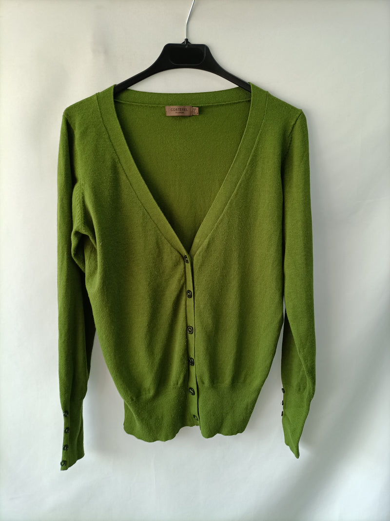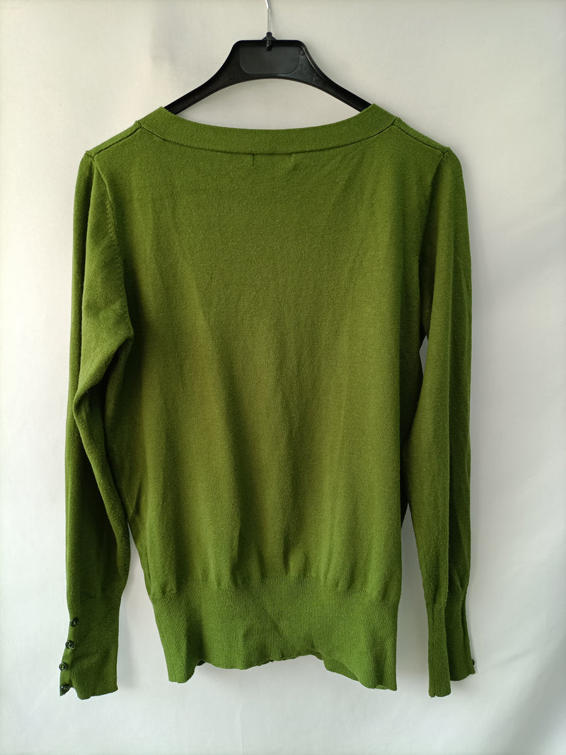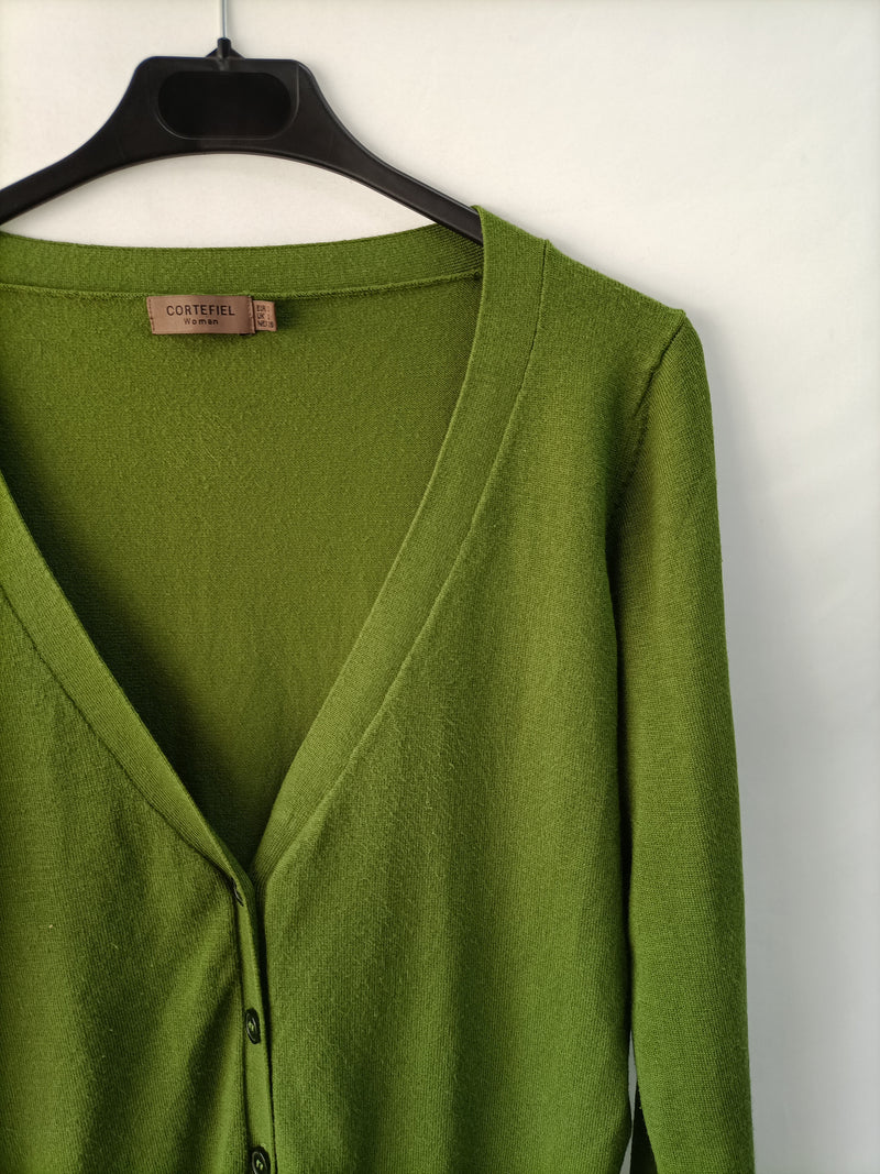 Chaqueta básica de punto verde. Elastica. Largo 59 cm