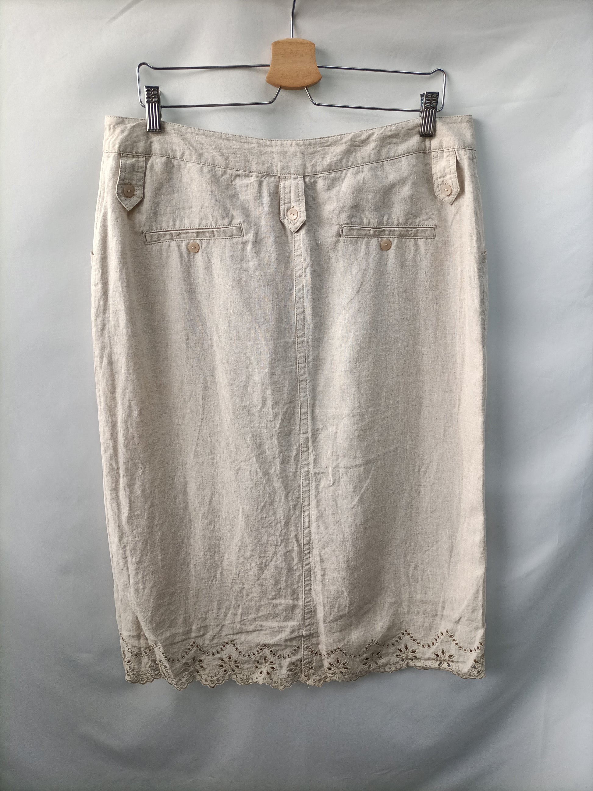 Falda lino con parte de abajo troquelada y abotonada. Cintura 46 cm largo 79 cm