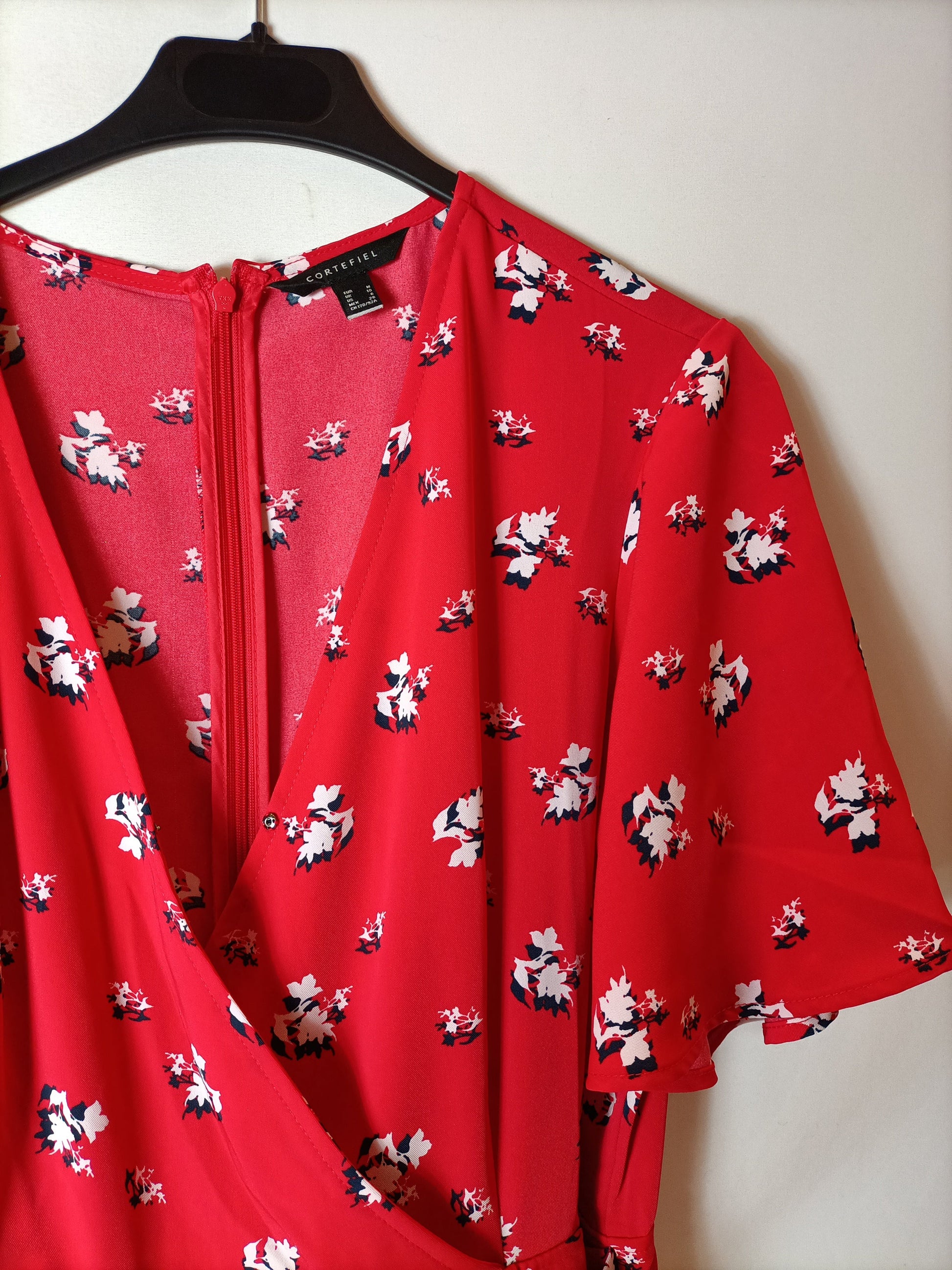 Mono rojo estampado. Cremallera en la espada. Tejido fluido.