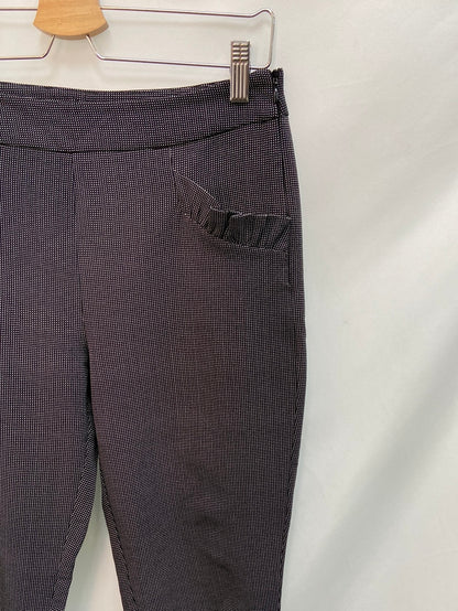 Pantalón negro de vestir con topitos. Se abrocha con cremallera lateral. Semielastico. Largo 97 cm