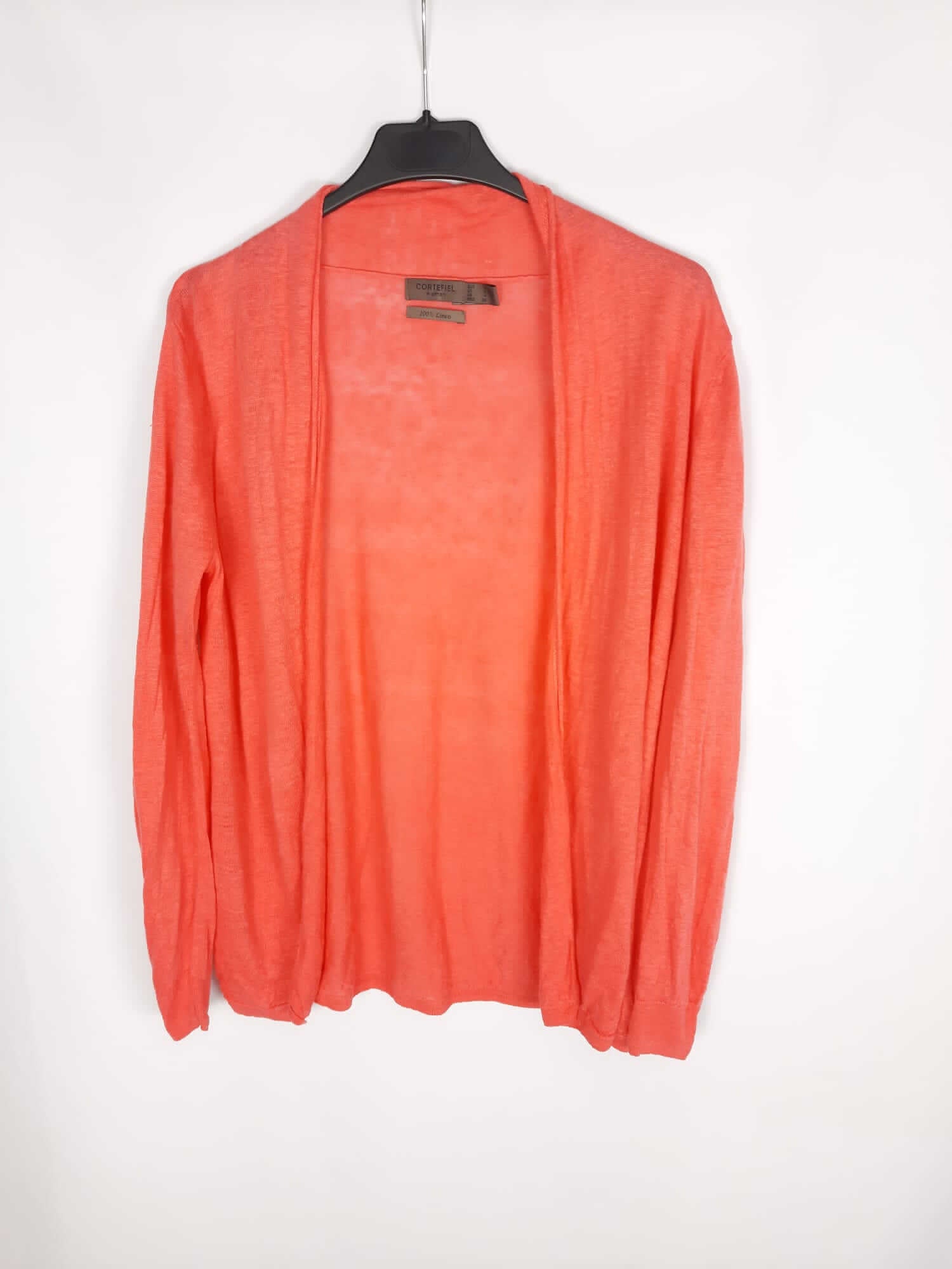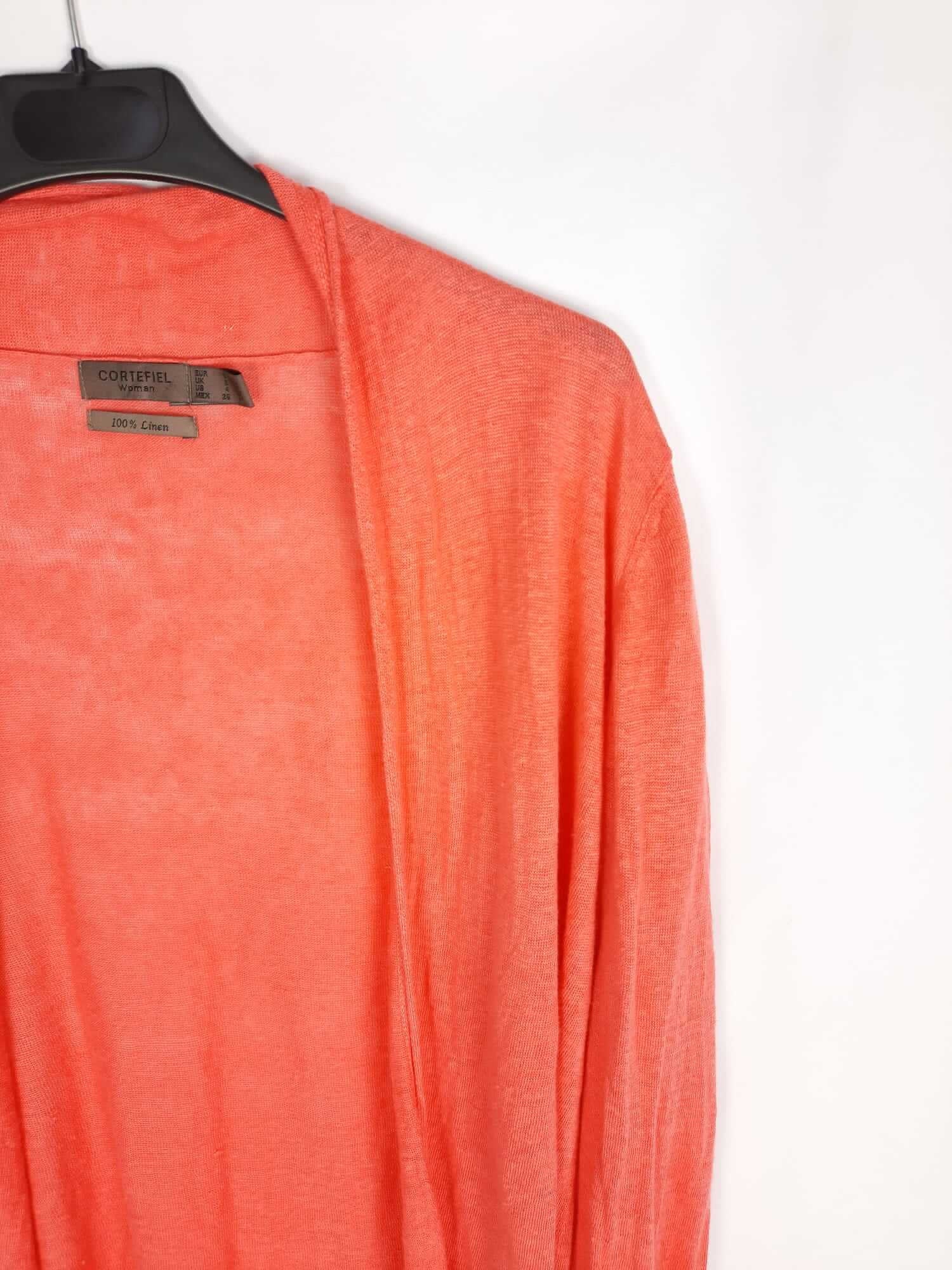 Cortefiel. Rebeca de lino color coral, finita y fluida. Largo 70 cmv