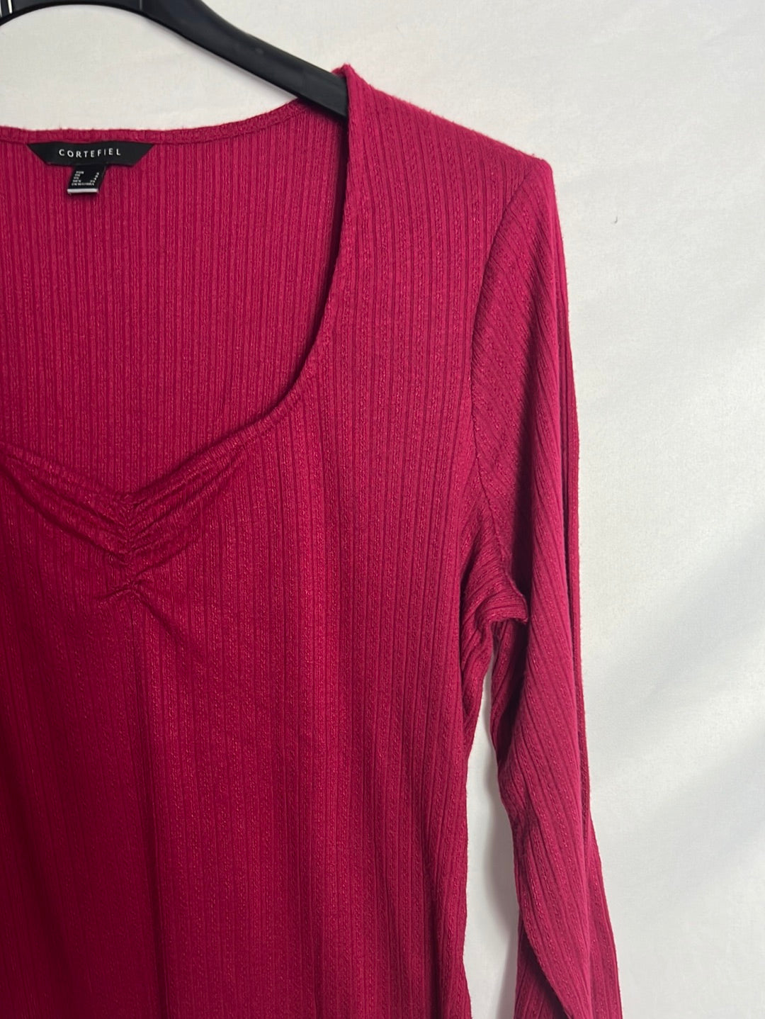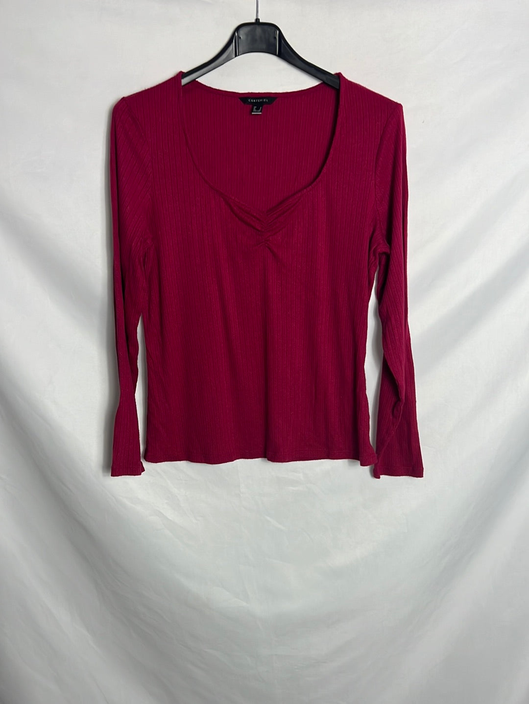 CORTEFIEL. Top manga larga canalé rosa. T S