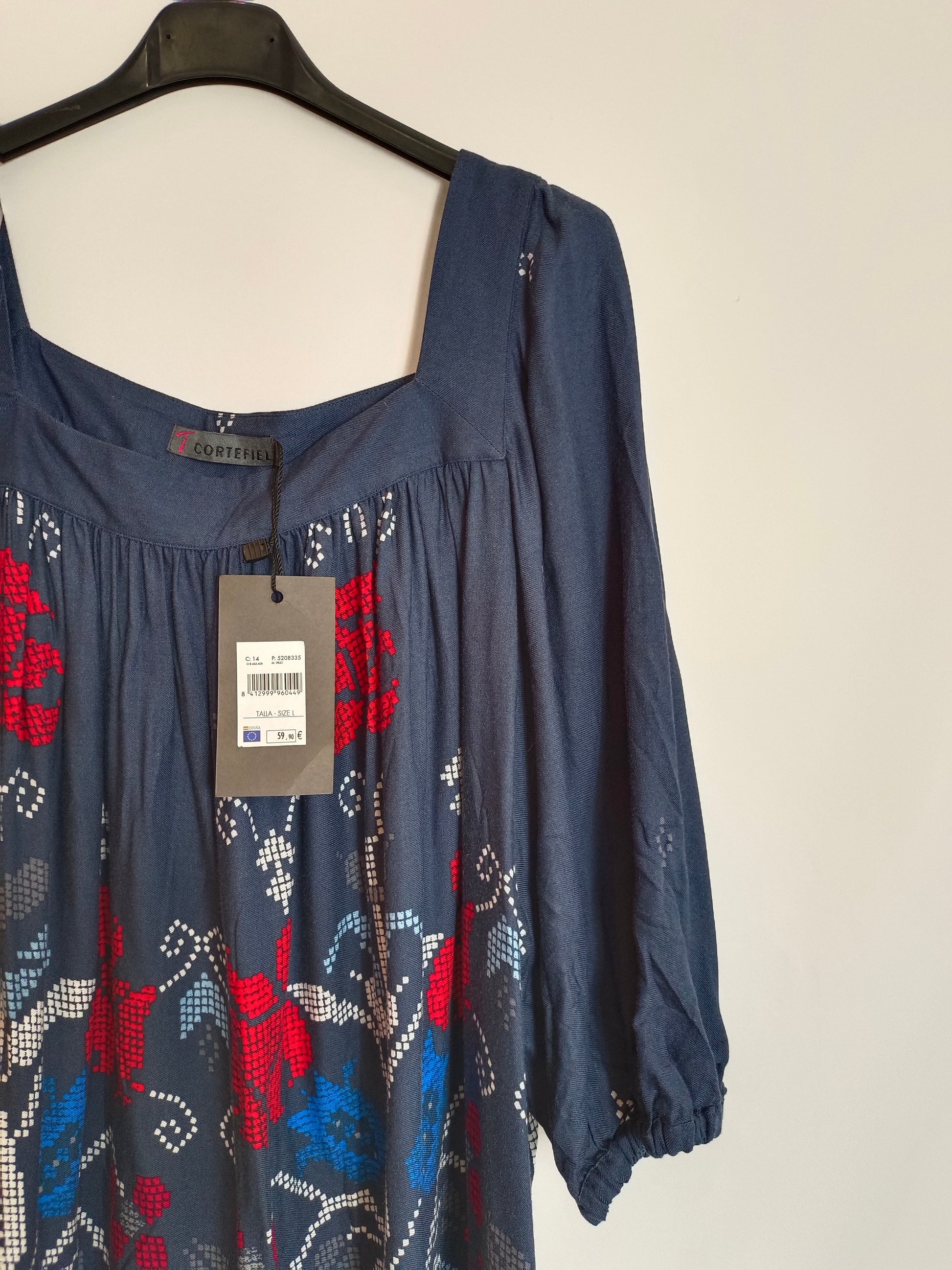 NUEVO CON ETIQUETA. Vestido azul con estampado