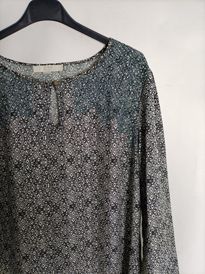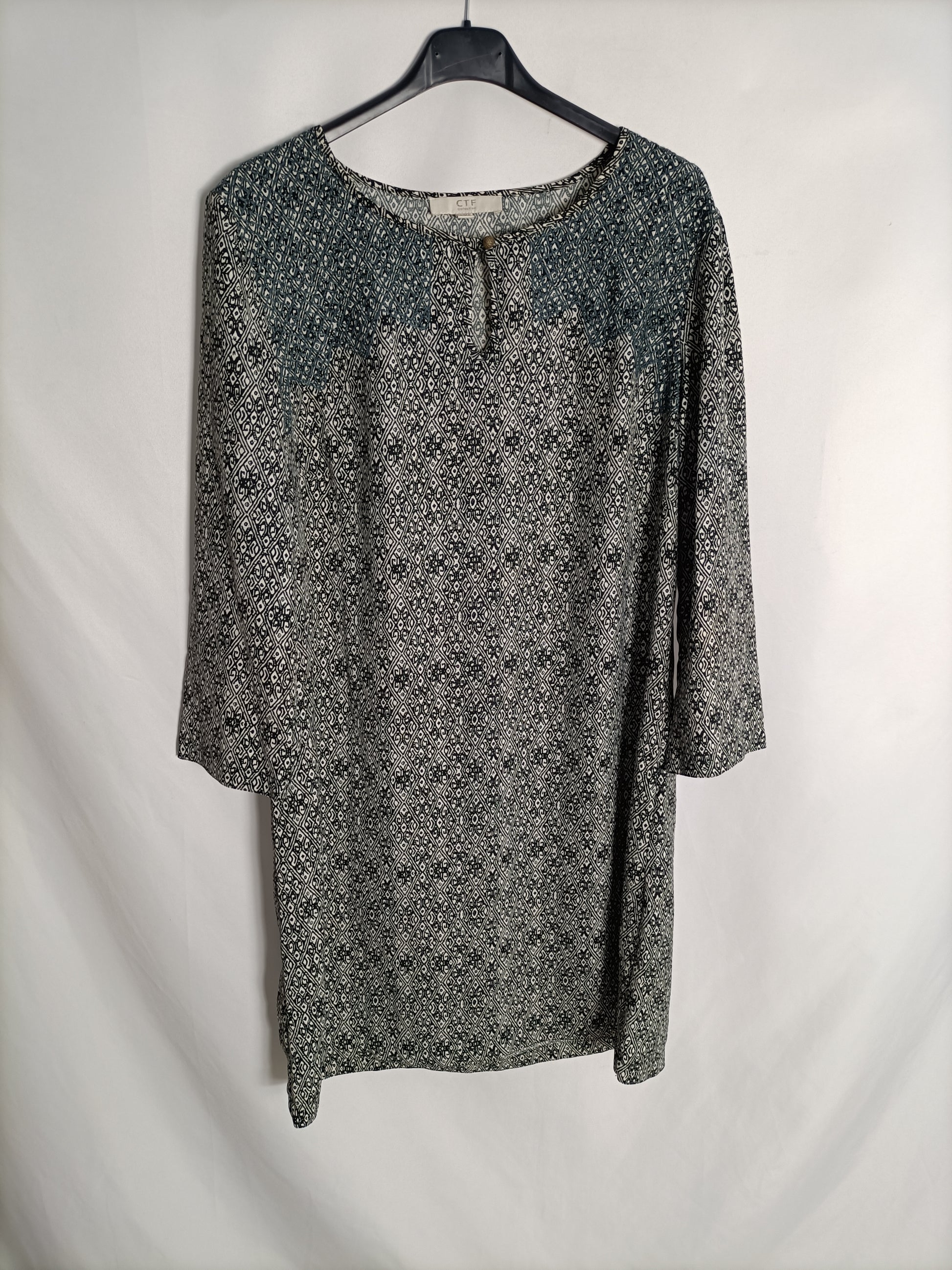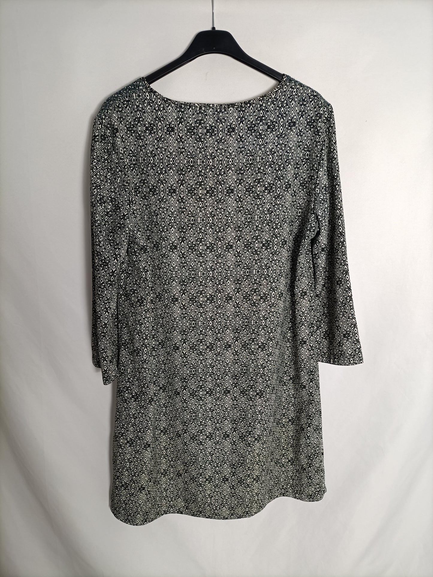 CORTEFIEL. Vestido corto estampado negro y blanco T.l