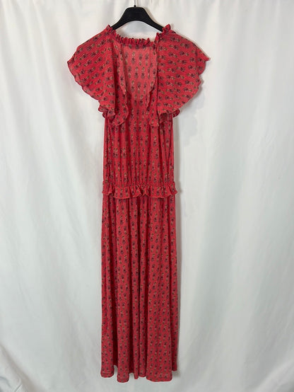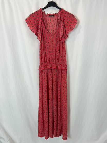 vestido largo plisado rosa con estampado de flores. fluido y elástico. De sisa a sisa 47cm, largo 137cm