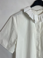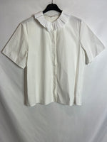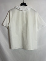100% algodón. Blusa blanca oversized detalle cuello en otro tejido. Largo 66 cm