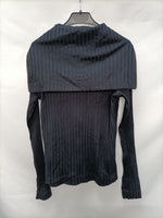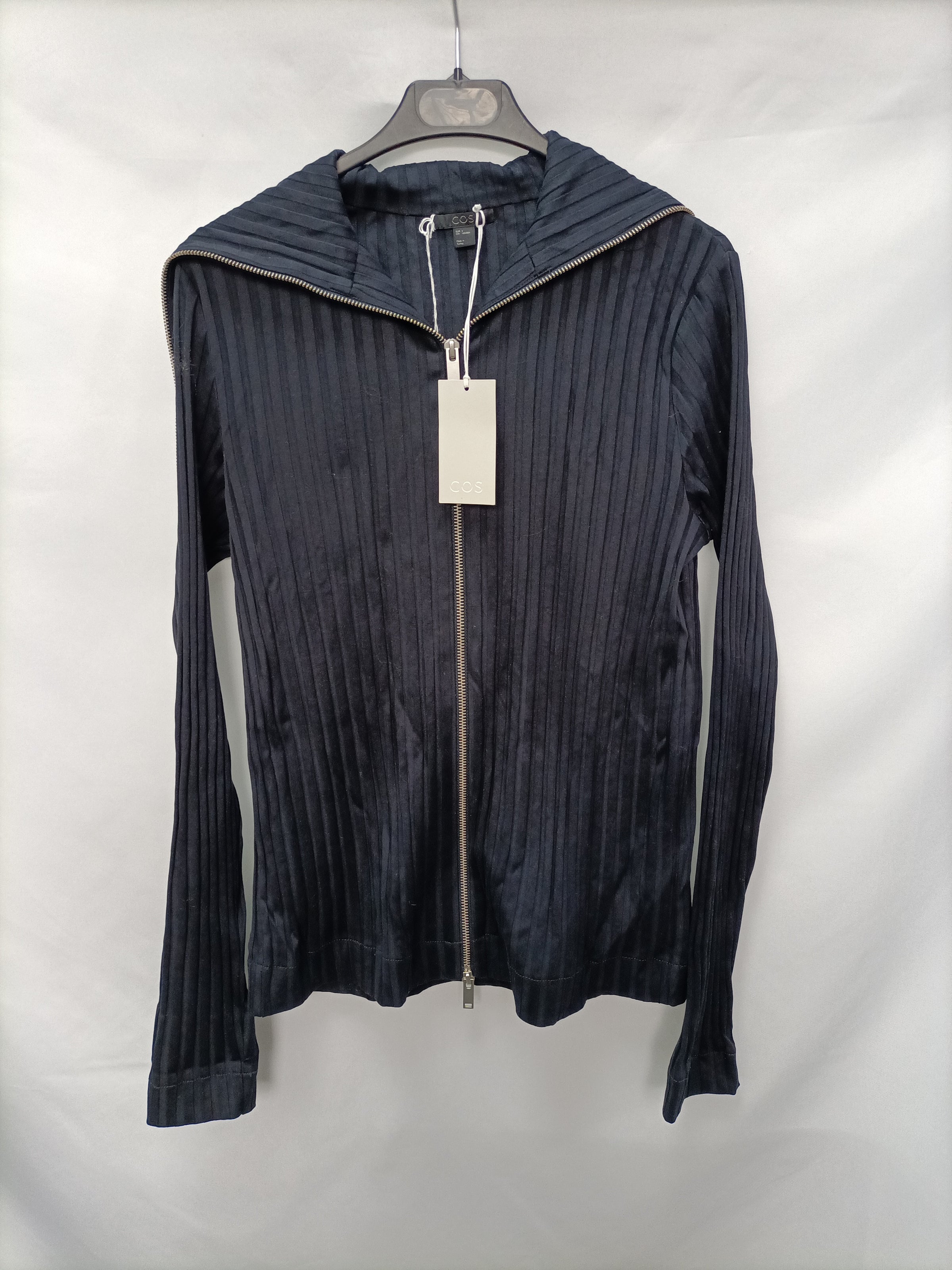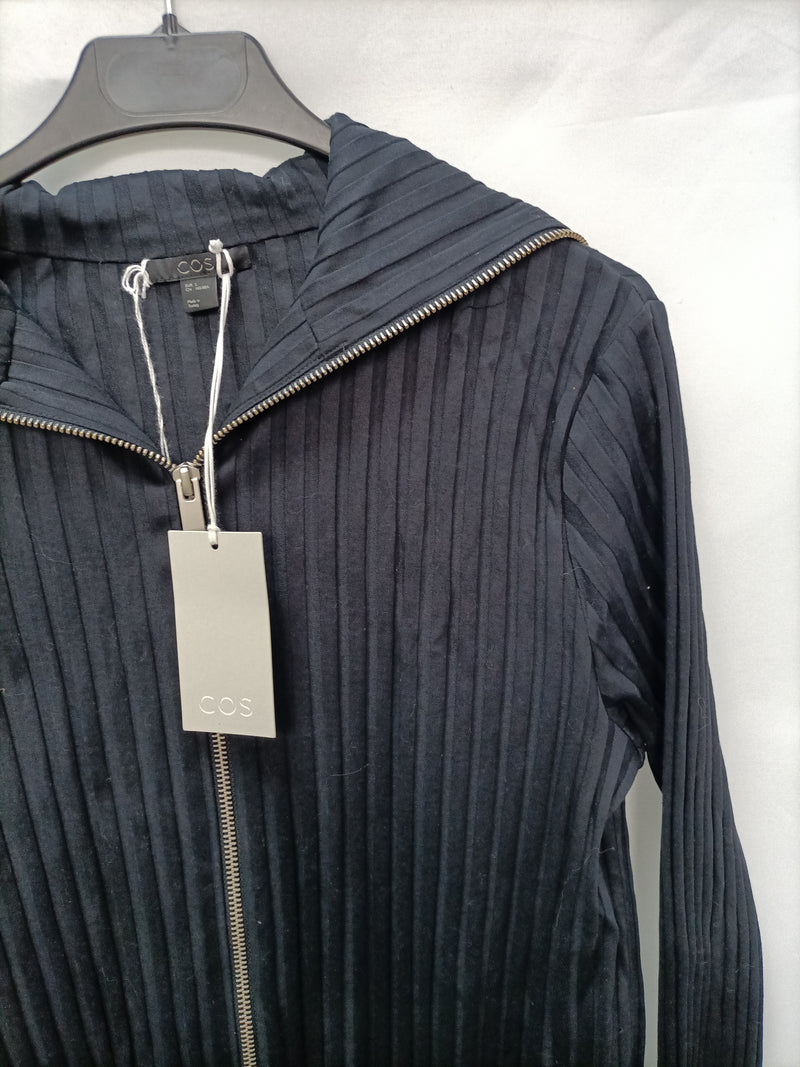 Sudadera azul de canalé con cremallera y cuello alto. NUEVA CON ETIQUETA