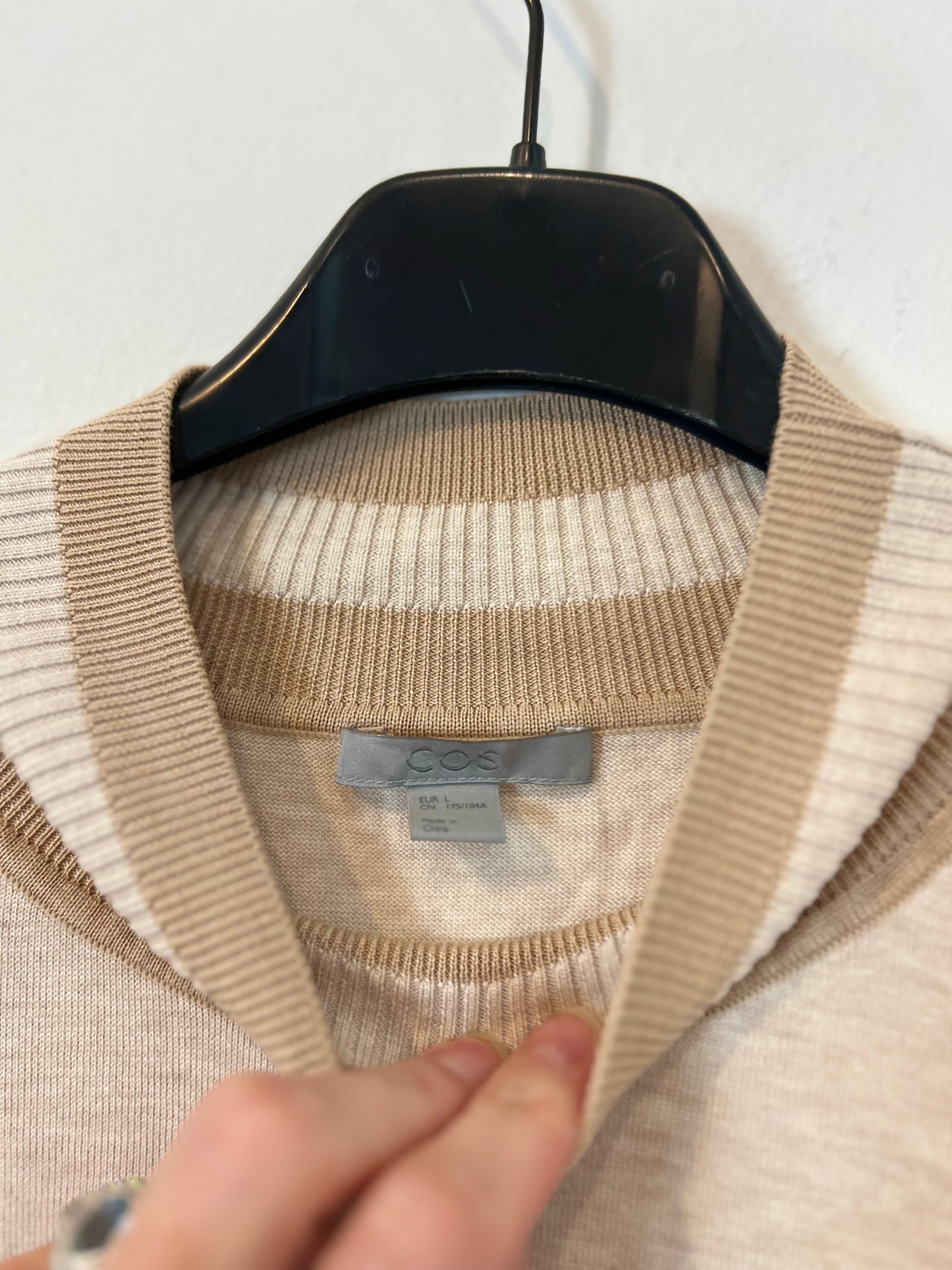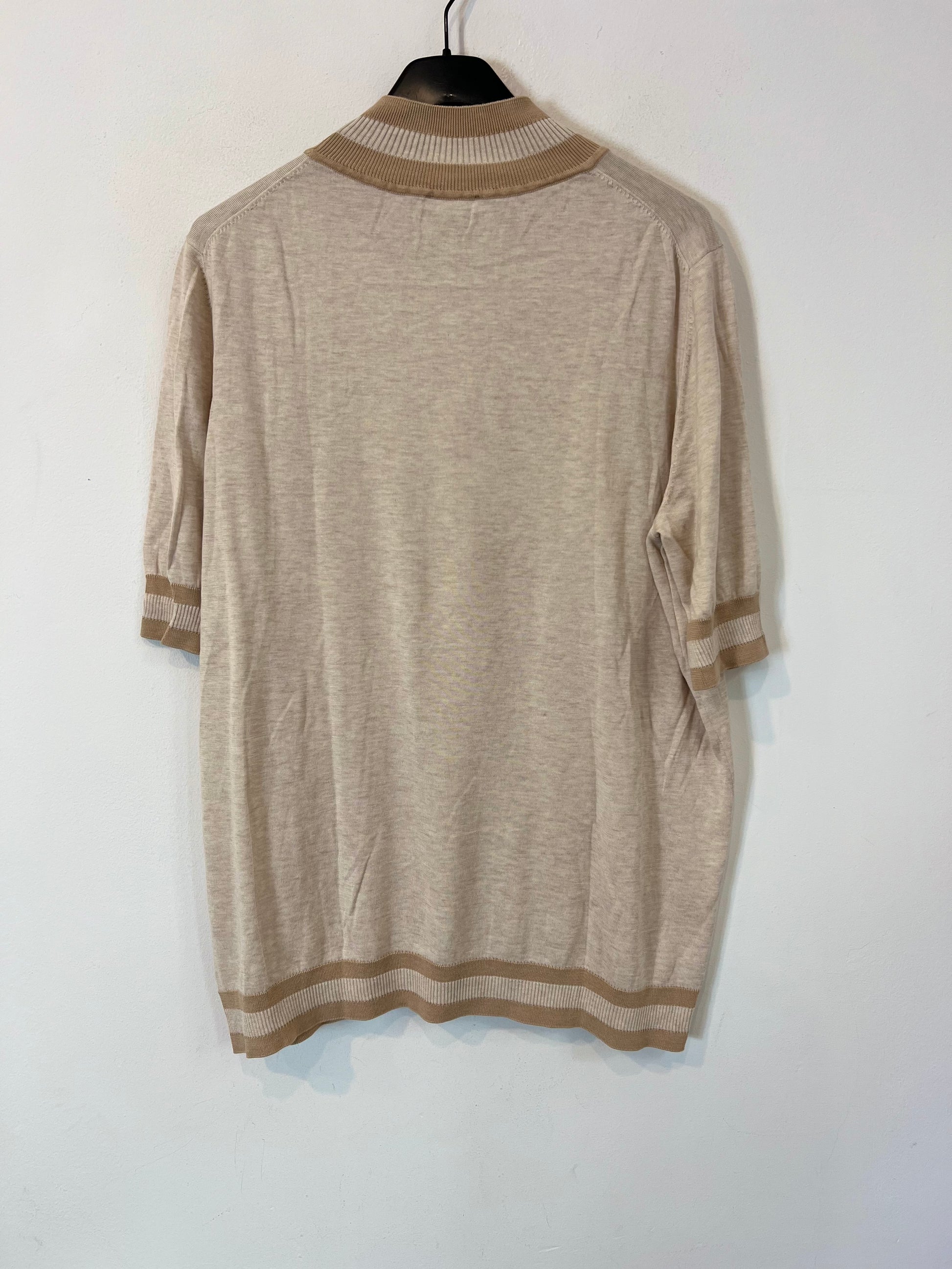 top de punto fluido y elástico detalles tonos oscuros. Cuello perkins. largo 65 cm