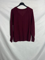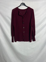 Jersey /cárdigan 100% lana merino lana burdeos calado abotonado. Se puede usar por ambos lados