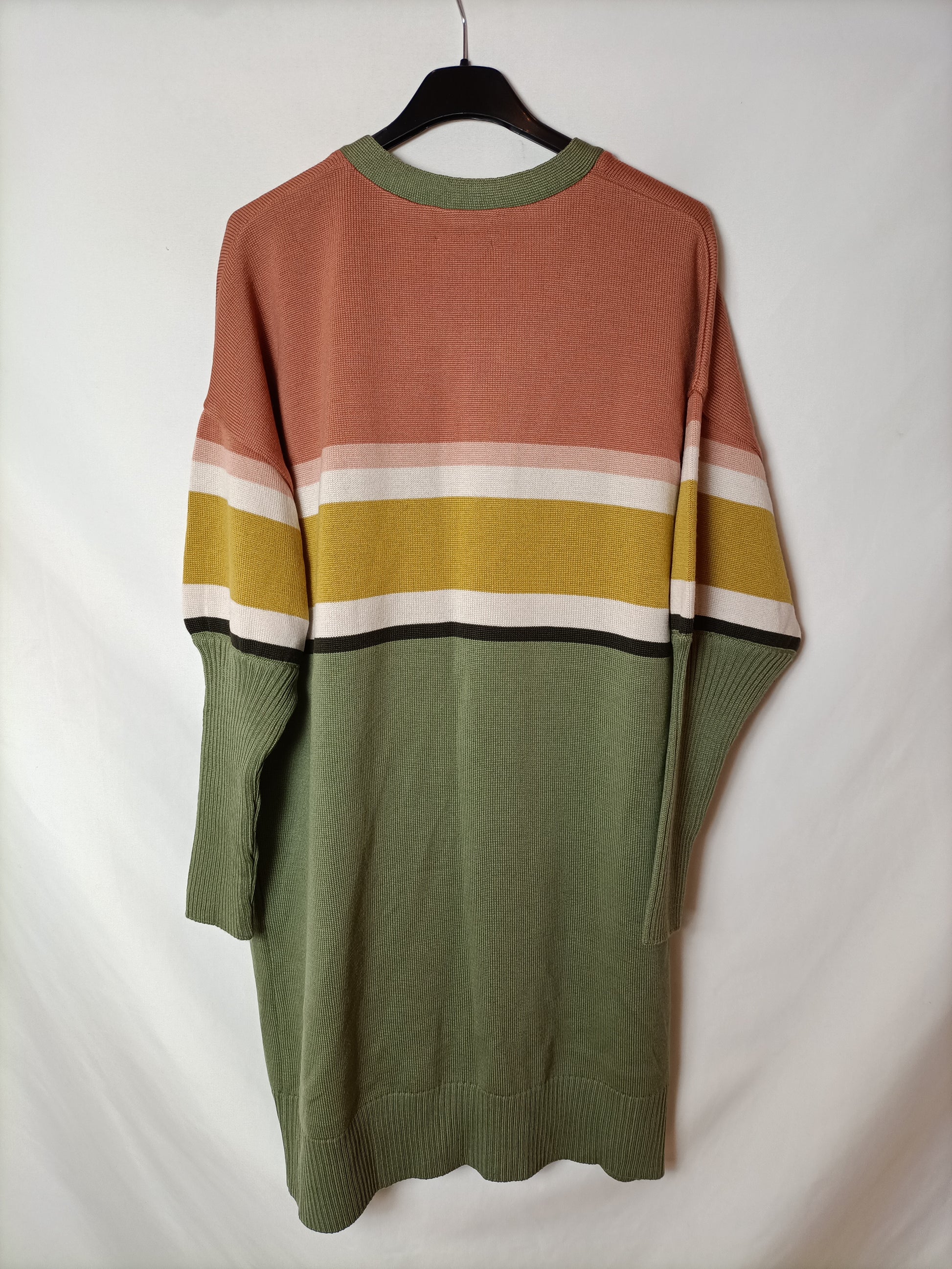 NUEVO CON ETIQUETA. cárdigan de rayas en tono verde. 100%lana