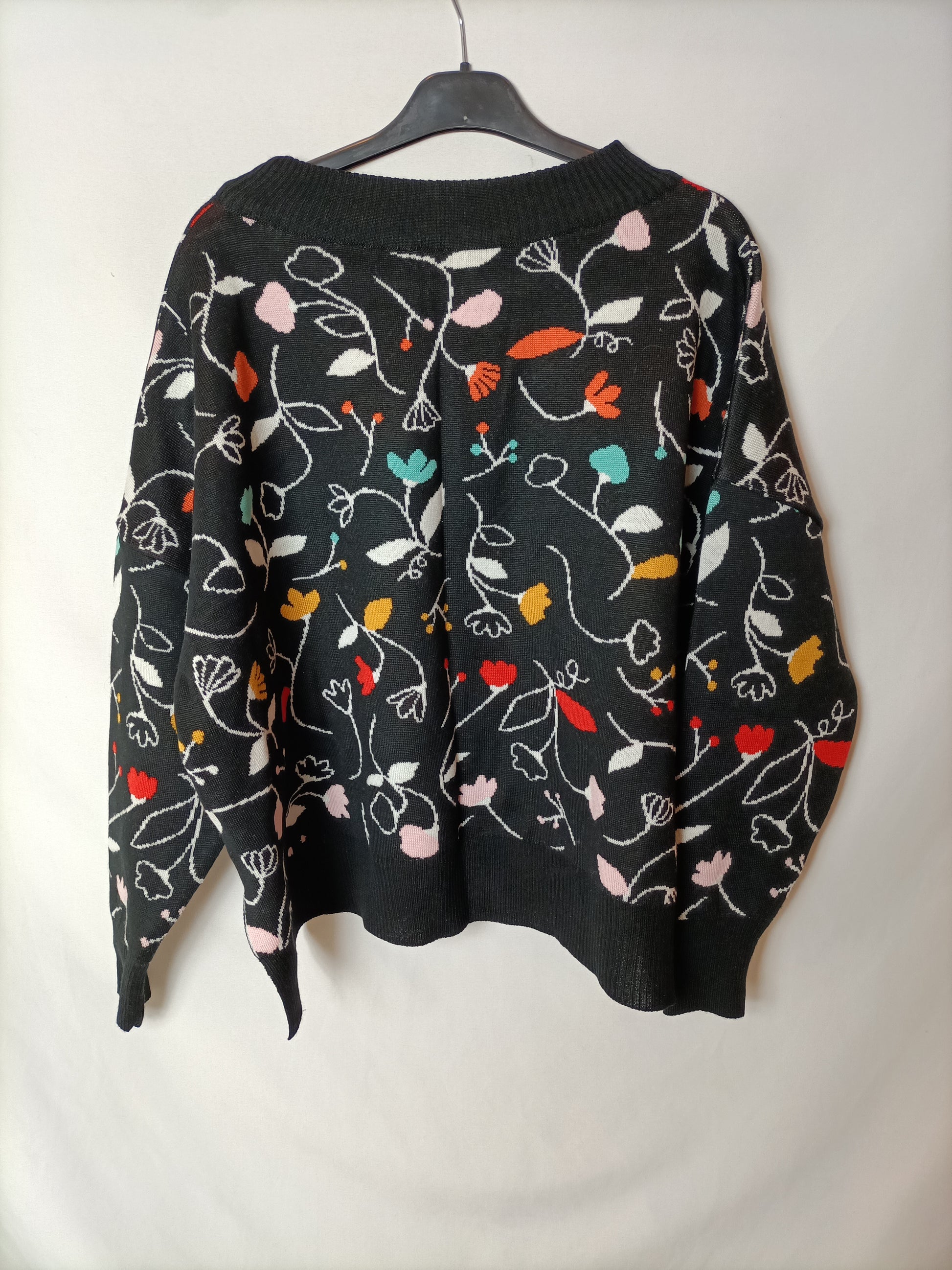 NUEVO CON ETIQUETA. Jersey negro flores. 100%lana