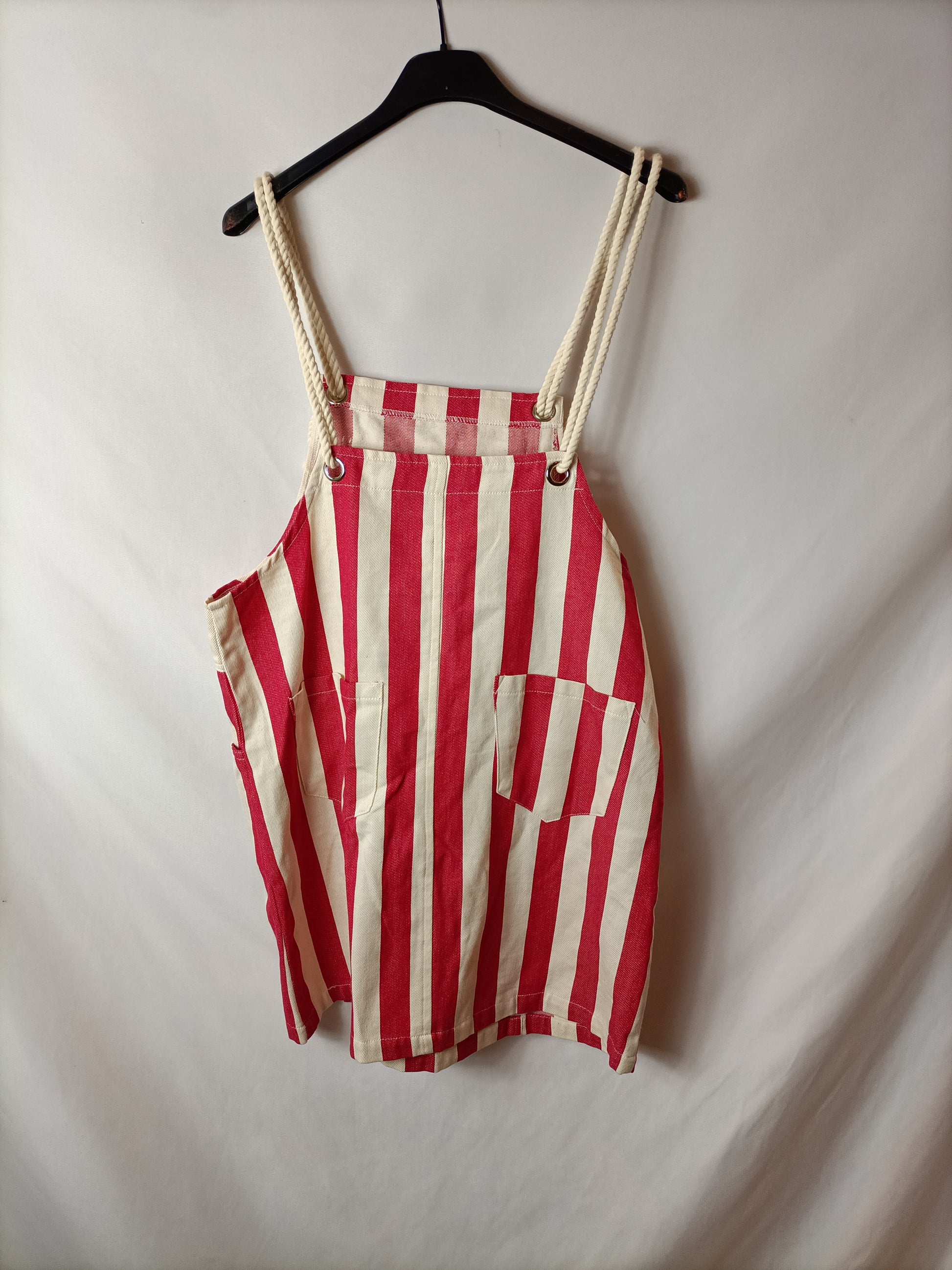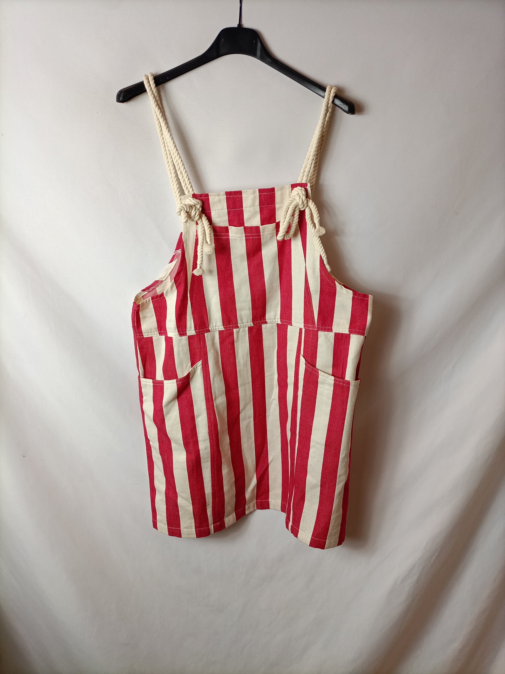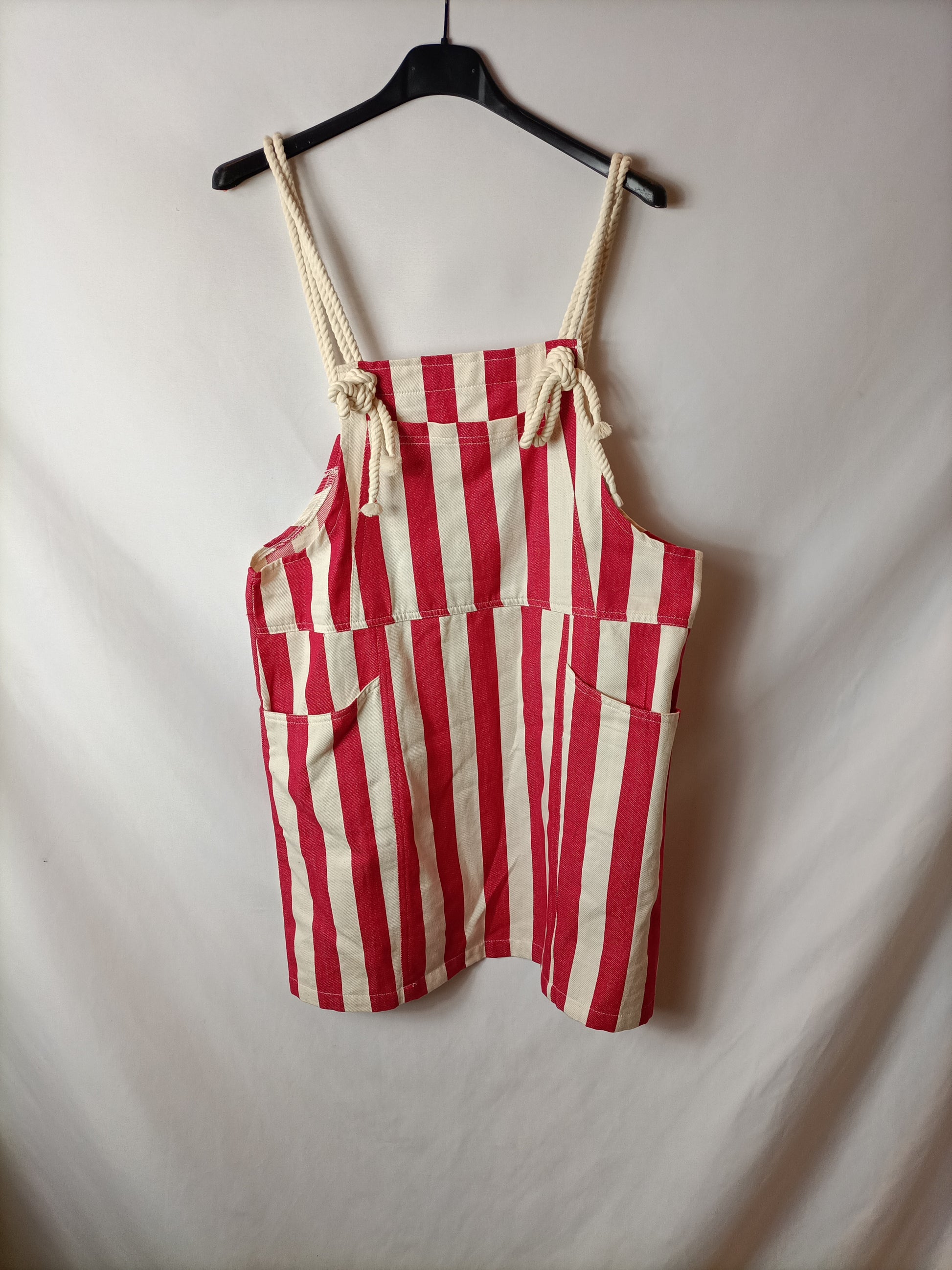 pichi de rayas rojo y beige con tirantes ajustables tipo cuerda. largo 53 cm