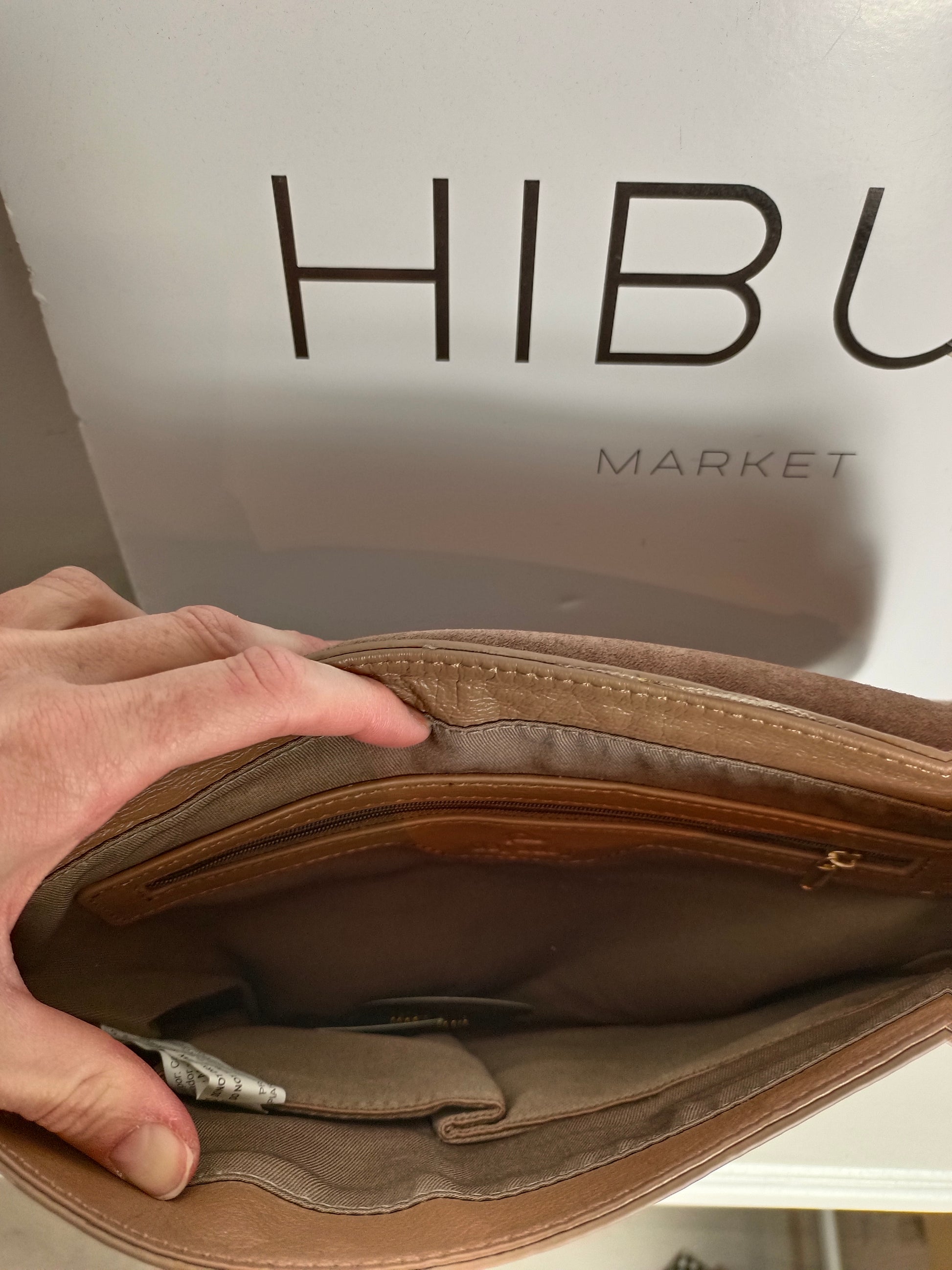 Bolso estilo cartera de mano marrón de piel. Tara: alguna marquita